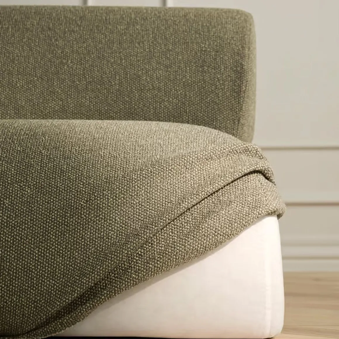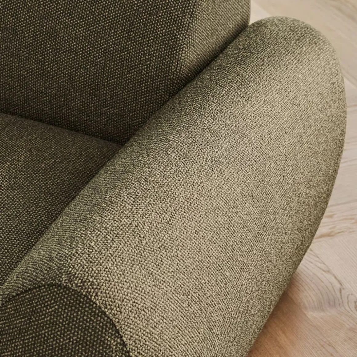 Matériaux : Chêne huilé massif certifié FSC™, tissu Monza bouclé & texture (28 % polyacrylique, 24 % coton, 20 % viscose, 16 % laine, 12 % polyester)