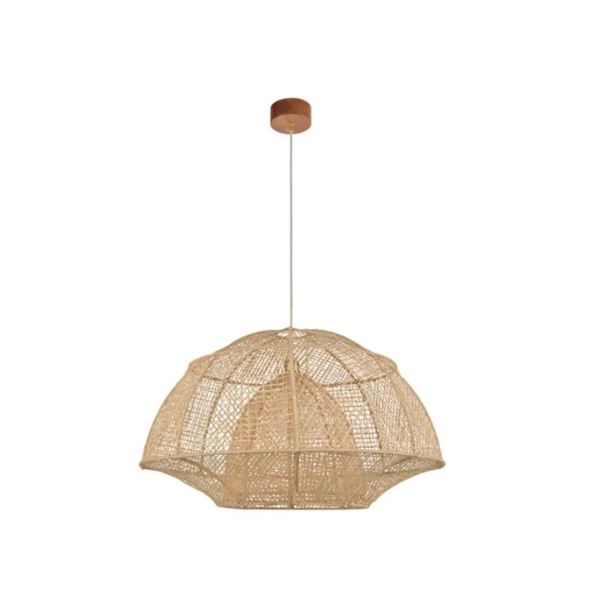 Odyssée est une suspension en forme de dôme et en raphia naturel tressé à la main. Équipée d’un cordon textile, d’une cup en laiton et d’un pavillon en bois adaptable DCL.