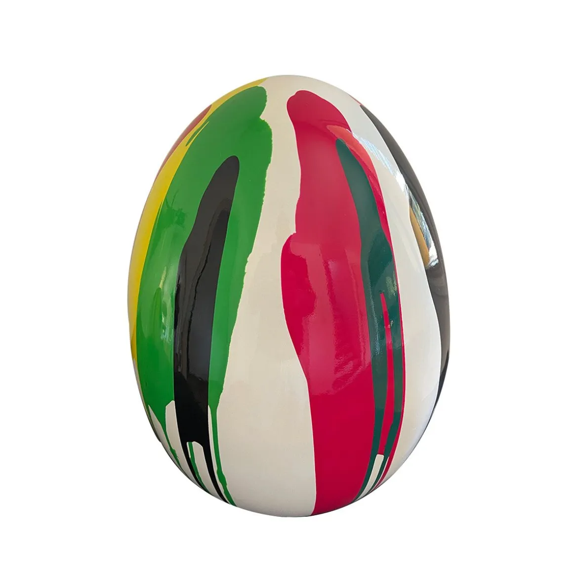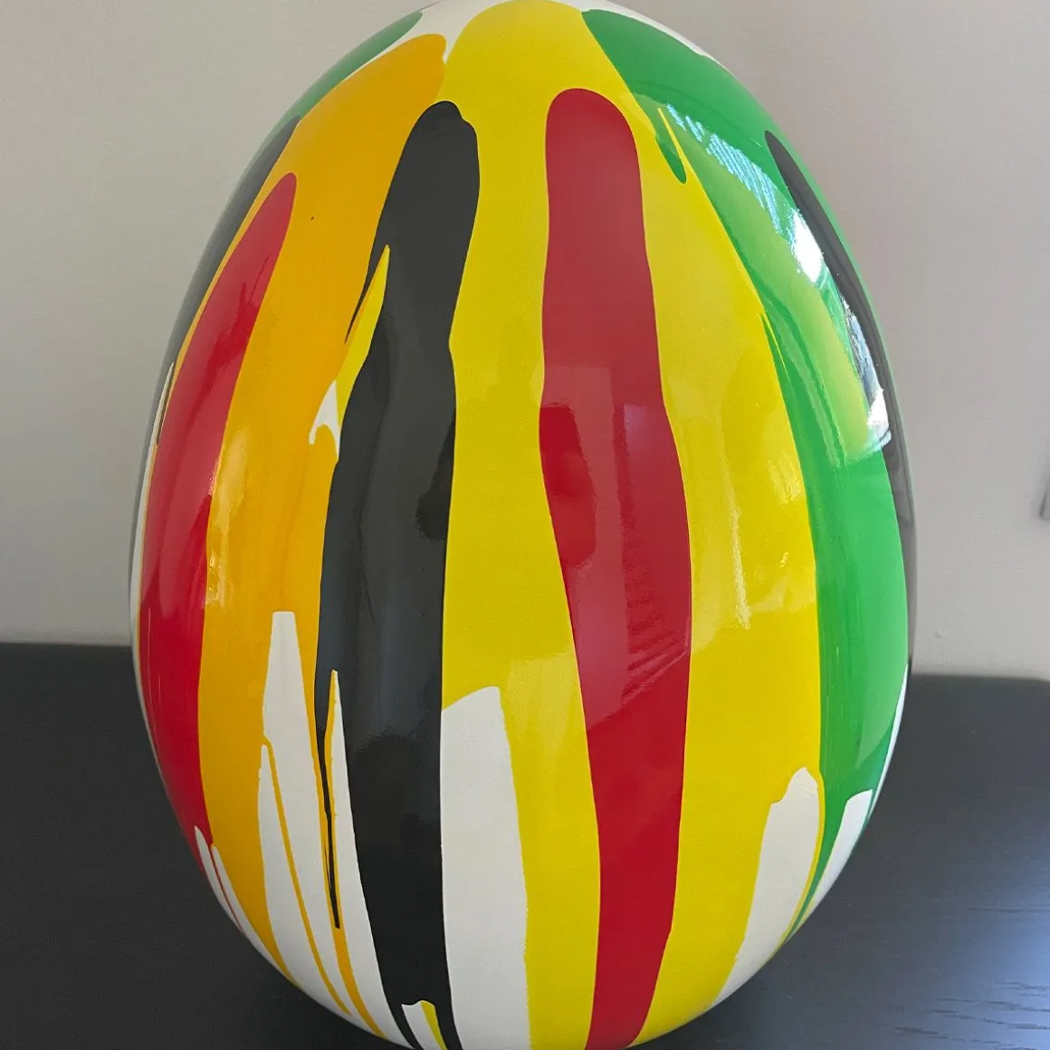 L’Œuf Artypopart est une création contemporaine forte, valorisée par l’authenticité du geste. Chaque exemplaire est une pièce unique, entièrement peinte au pinceau par l’artiste SJ lui-même, avant d’être verni pour un éclat maximal. Ce travail artisanal, attesté par la signature de l’artiste, confère à la sculpture un statut d’œuvre de collection. De forme ovoïde, la pièce symbolise la renaissance, l’équilibre et le renouveau ; elle est une invitation à l’optimisme et à la douceur dans votre foyer.