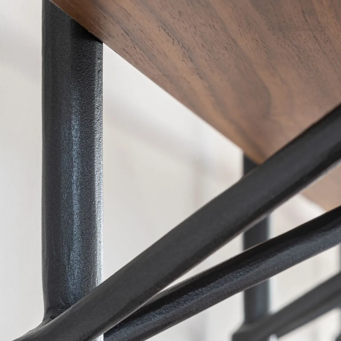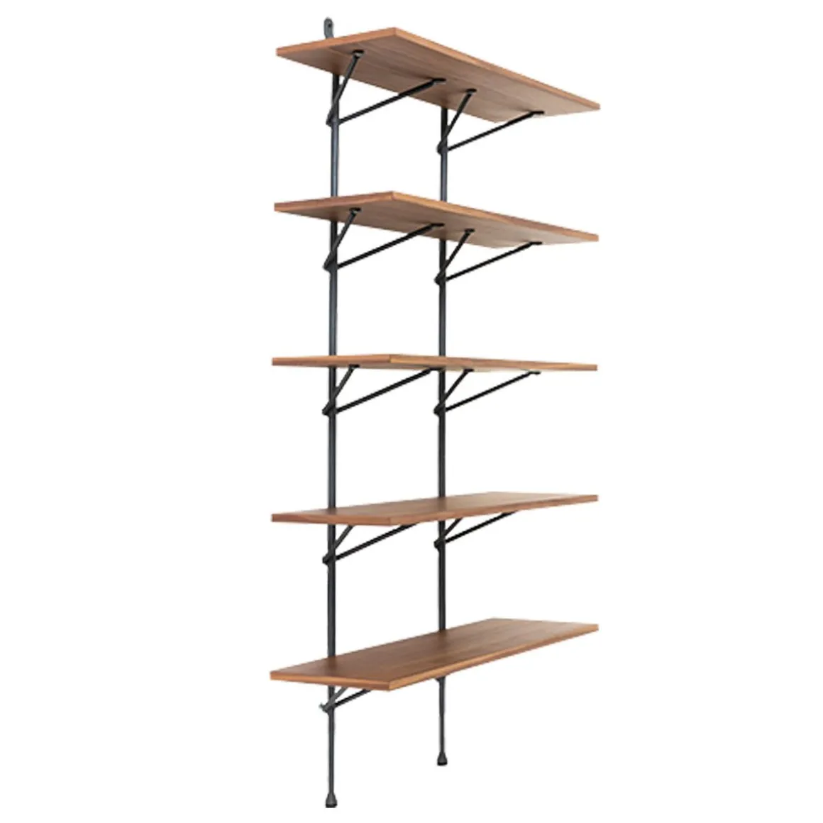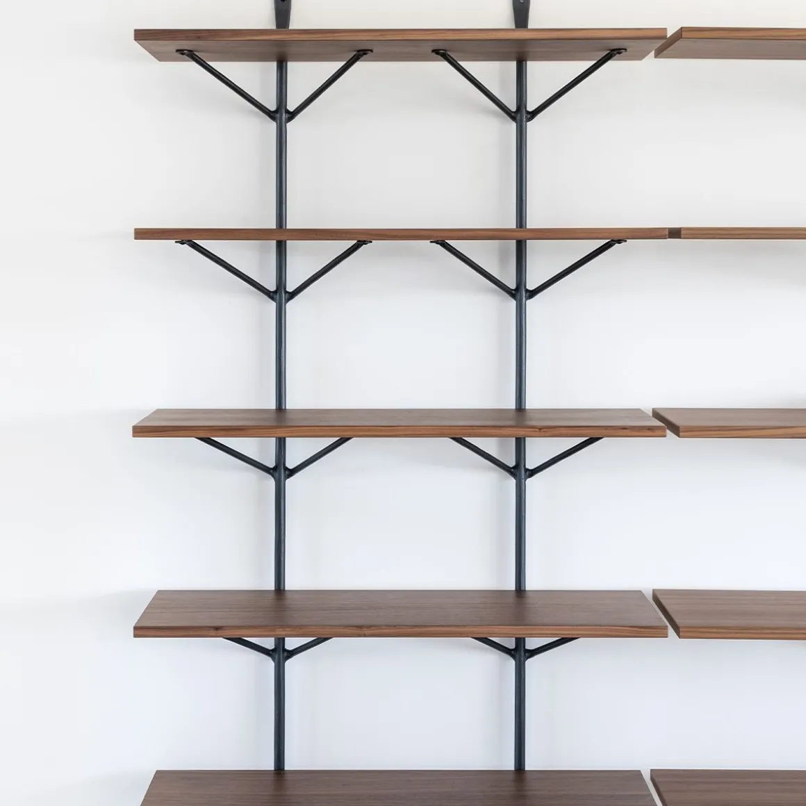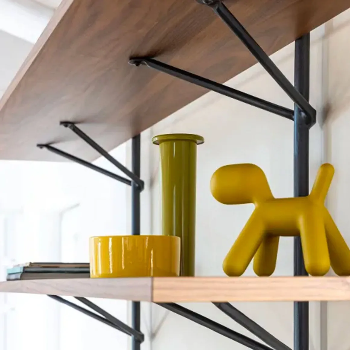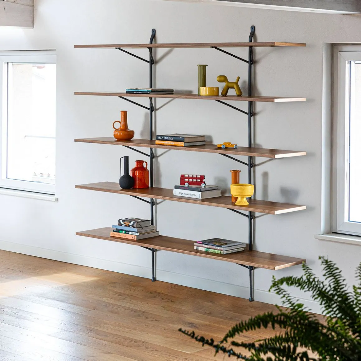 Officina est un système de bibliothèque avec fixation au mur. Montants en fer forgé verni en polyester.
