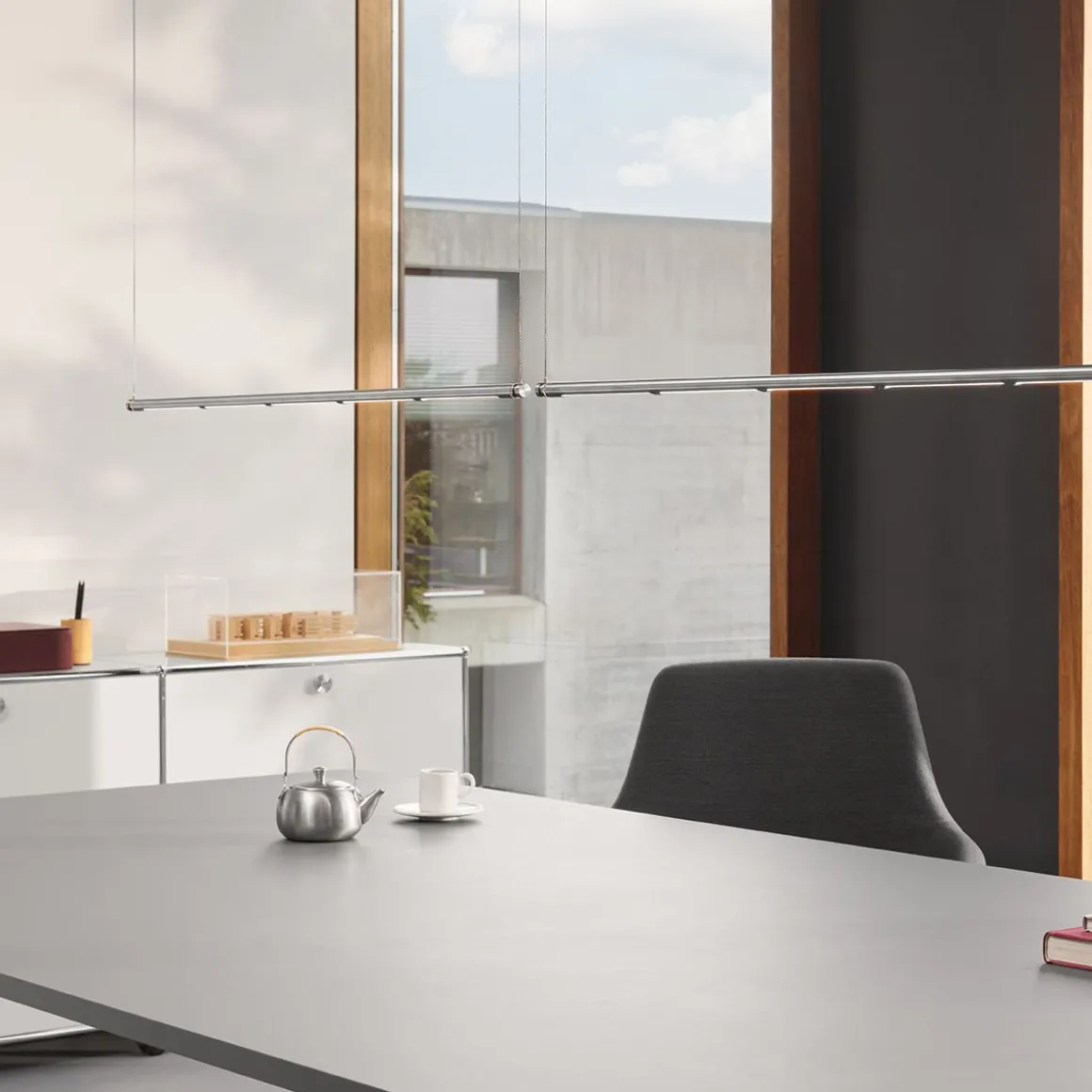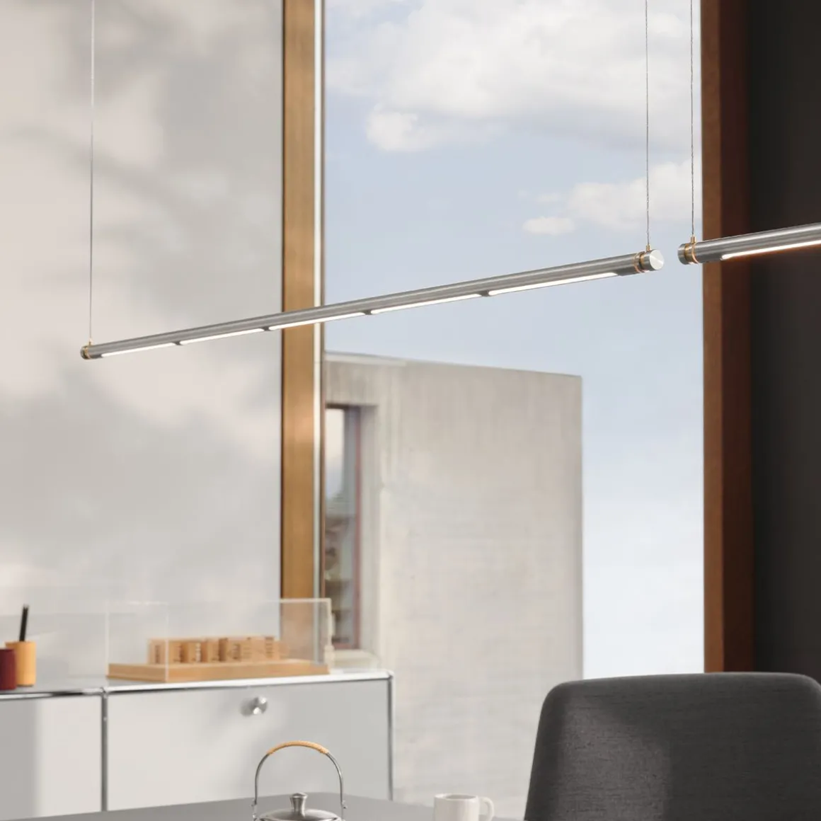La suspension primée Oneline™ de Kasper Friis Kjeldgaard s’inspire des formes épurées des créations de mobilier emblématiques de Poul Kjærholm. Loin de l’ordinaire, cette suspension raffinée est enveloppée de métal réfléchissant et proposée en trois finitions élégantes : acier inoxydable, laiton brossé et acier avec revêtement PVD noir. Le contrôle de l’intensité lumineuse est assuré par la technologie Zigbee, compatible avec les applications de gradation les plus courantes. Veuillez noter qu’un hub est nécessaire pour activer la gradation, par exemple Philips Hue ou IKEA DIRIGERA. Chaque suspension Oneline™ est équipée d’un pilote qui peut être installé au-dessus ou au-dessous du plafond.