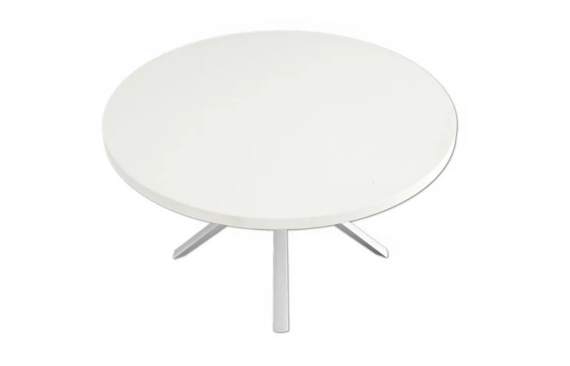Essentielle, versatile, adaptée aux milieux les plus variés, allant de la maison au milieu collectivités, cette table garde ses pieds caractéristiques en aluminium moulé sous pression, qui sont au nombre de trois osur cette version version avec plateau rond.