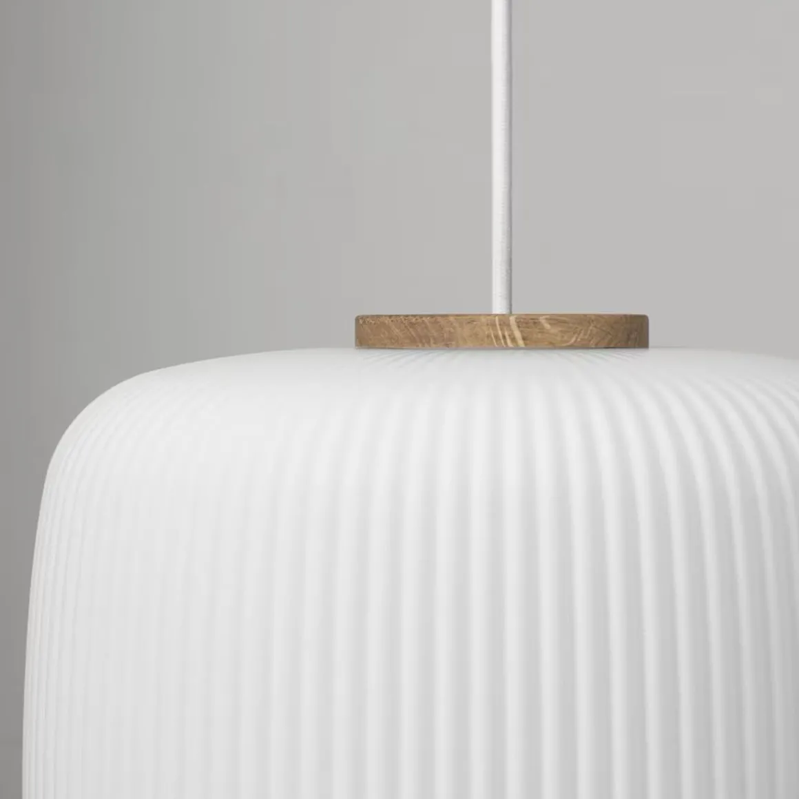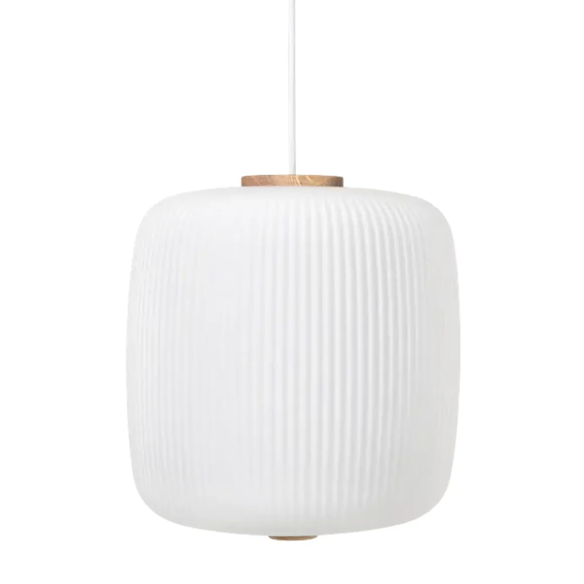 Conçue en 1961 mais jamais mise en production avant aujourd’hui, la suspension Opal EK61 est désormais lancée en verre et en bois. Conçue par le fils du célèbre designer danois Kaare Klint, la suspension sobre et élégante d’Esben Klint a été imaginée à l’origine en plastique plissé. Trop compliquée à produire à l’époque, la conception est restée dans les archives familiales jusqu’à présent. L’itération moderne est réalisée dans une forme elliptique plissée en verre opale soufflé à la bouche. Les détails distinctifs en chêne rappelant les lanternes chinoises traditionnelles sont méticuleusement tournés et affinés à la main pour une expression classique. Disponible en trois tailles, l’EK61 émet une lumière douce et indirecte grâce à sa combinaison minutieuse de matériaux classiques.