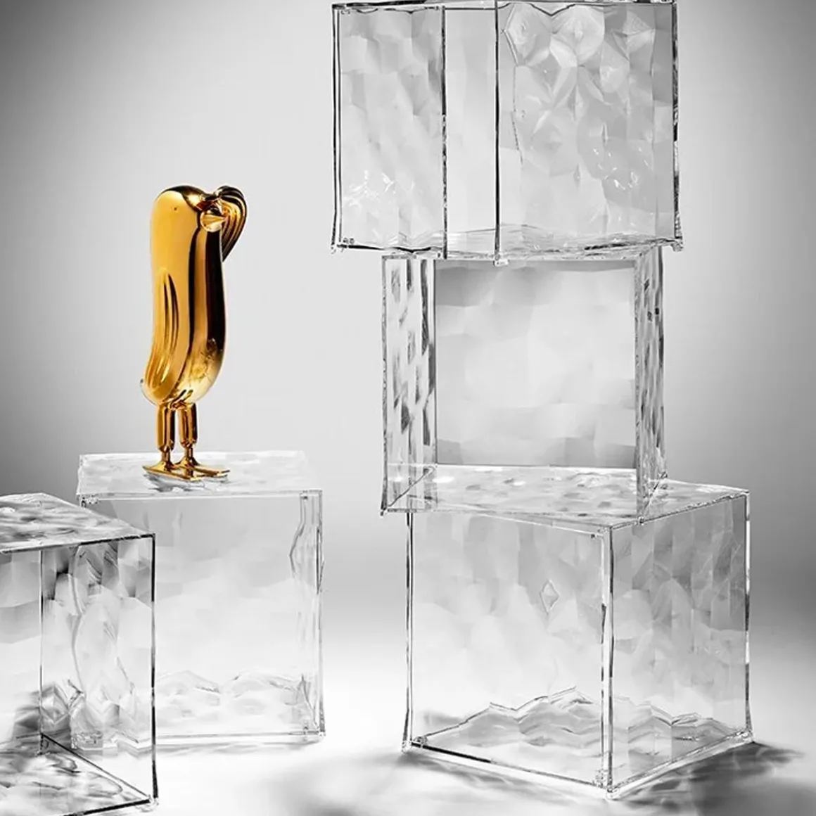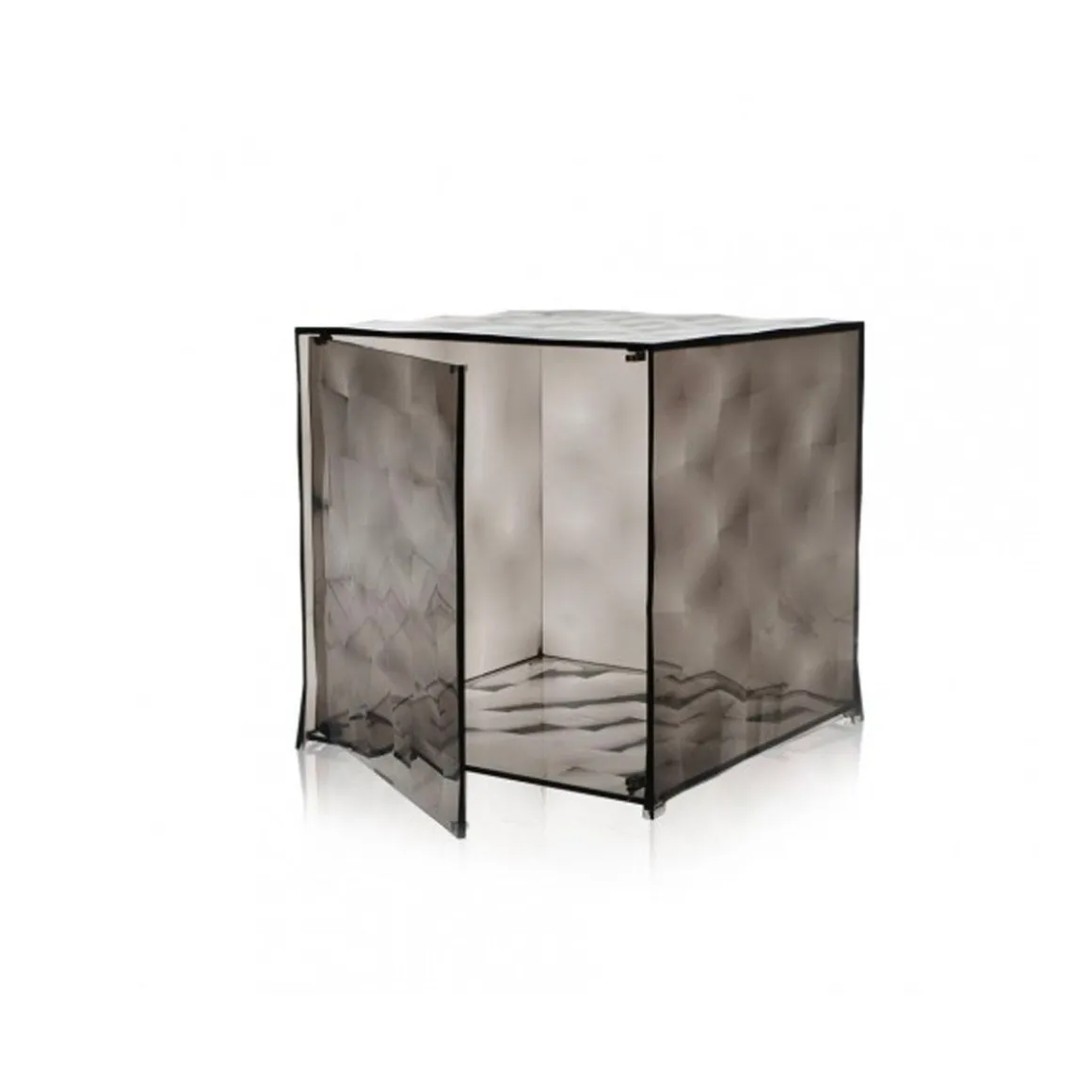 Un objet d’émotion : Optic est un cube à facettes transparent et miroité qui, grâce à un étonnant jeu de couleurs et de reflets, crée une atmosphère spéciale. Optic est un conteneur réalisé en PMMA et disponible en deux versions : avec battant ou ouvert sur un côté. La surface est rehaussée de pyramides à base carrée légèrement en relief qui, grâce à la surface miroitée ou transparente, créent un effet optique surprenant. Optic est un cube de 41 x 41 x 41 cm qui offre de nombreuses combinaisons possible. Vous pouvez placer plusieurs Optic Cube côte à côte, les empiler ou les disposer de façon à créer des compositions linéaires. Selon la quantité et la disposition, ils se prêteront à divers usages et apporteront une touche de charme à votre intérieur.