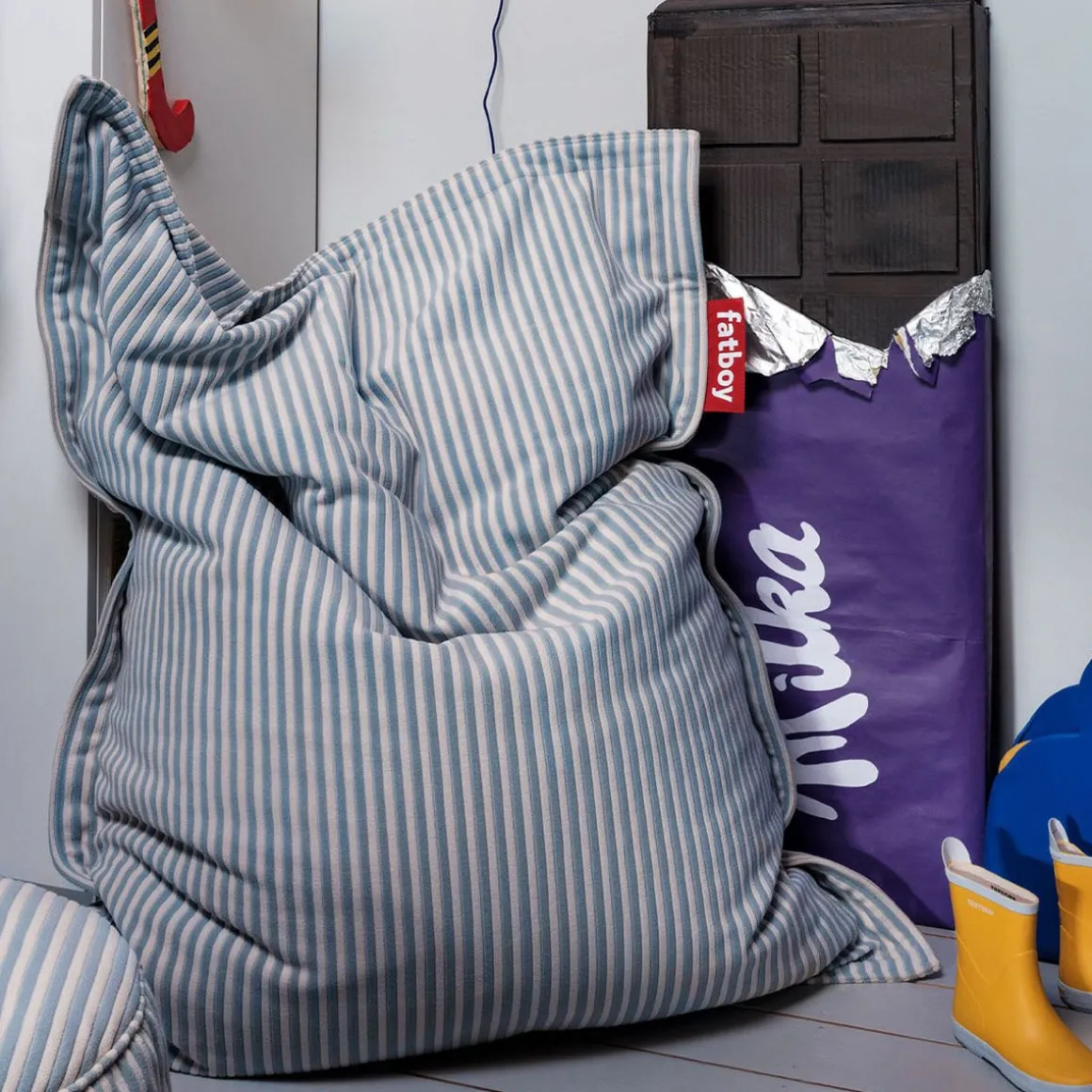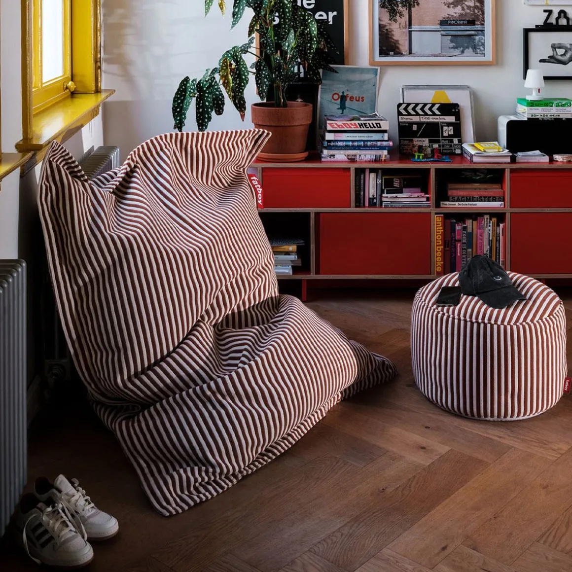 Original Slim Terry de Fatboy. Le pouf Original Slim Terry est tout aussi emblématique et confortable que le pouf Original, mais dans une version légèrement plus petite. Avec sa taille modeste, ce pouf moelleux s’intègre à peu près partout. Et comme son nom l’indique, Fatboy a relooké ce pouf Original Slim avec un aspect et un toucher en tissu éponge doux. Le pouf en éponge rayé est, tout comme les autres poufs Fatboy, rempli de milliers de petites billes qui épousent les contours du corps pour un confort ou une détente ultimes.