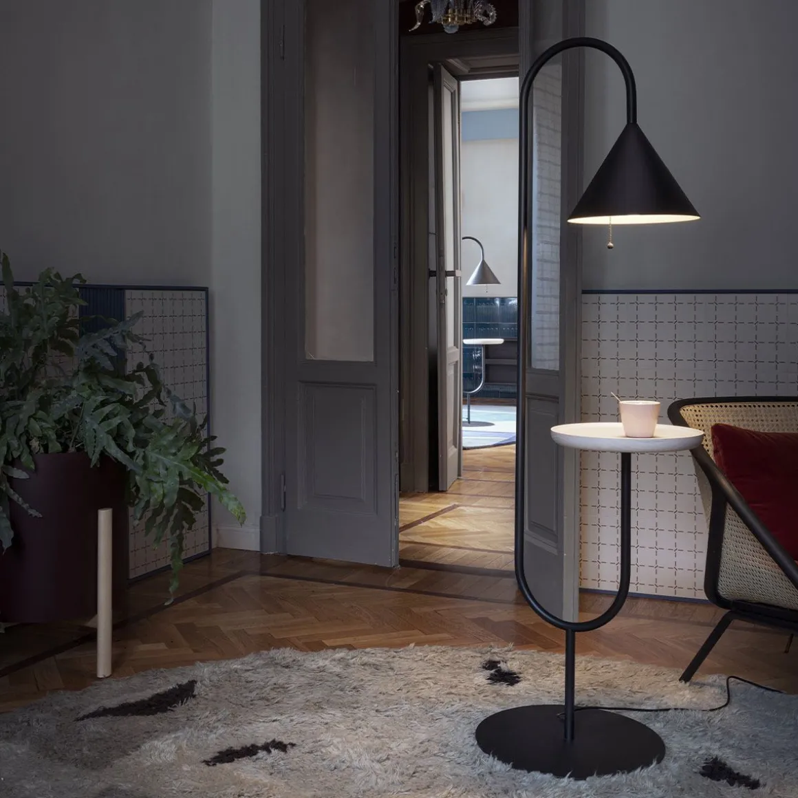 Ozz de Miniforms par Paolo Cappello and Simone Sabatti. Ozz joue sur plusieurs registres. D’une forme qui rappelle un diapason, deux éléments se développent, une lampe et un plateau porte-objets, qui se regardent et dialoguent avec un rythme bien défini : le rythme de la lumière. Éteinte, Ozz fonctionne comme table basse, allumée, elle crée un espace accueillant, où la lumière se serre autour du plateau, en entrant dans l’intimité de la maison. Ozz donne le « la » à votre narration domestique. Ozz apporte une note joyeuse à votre intérieur.