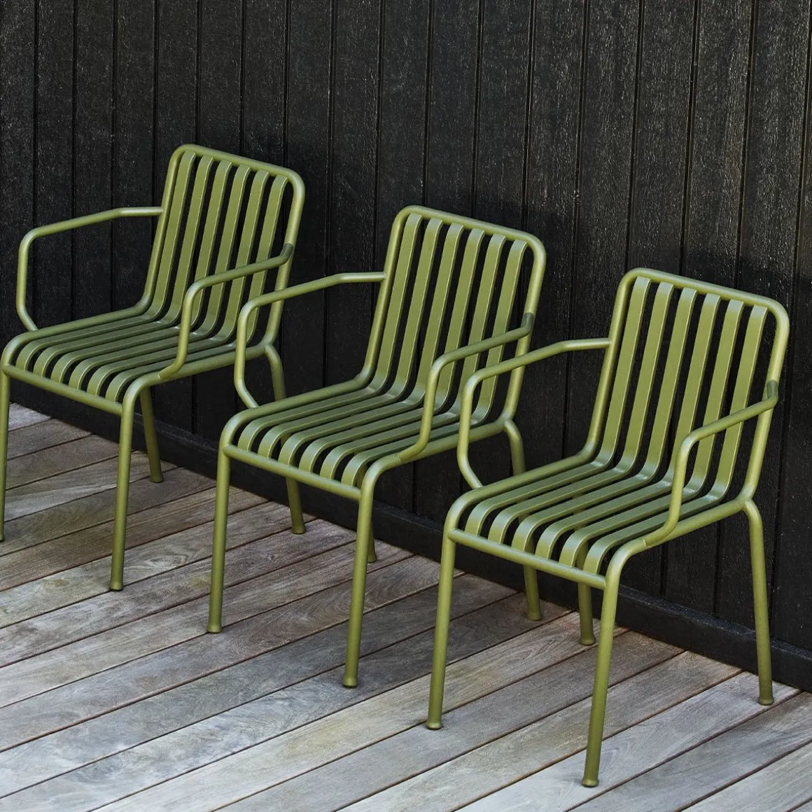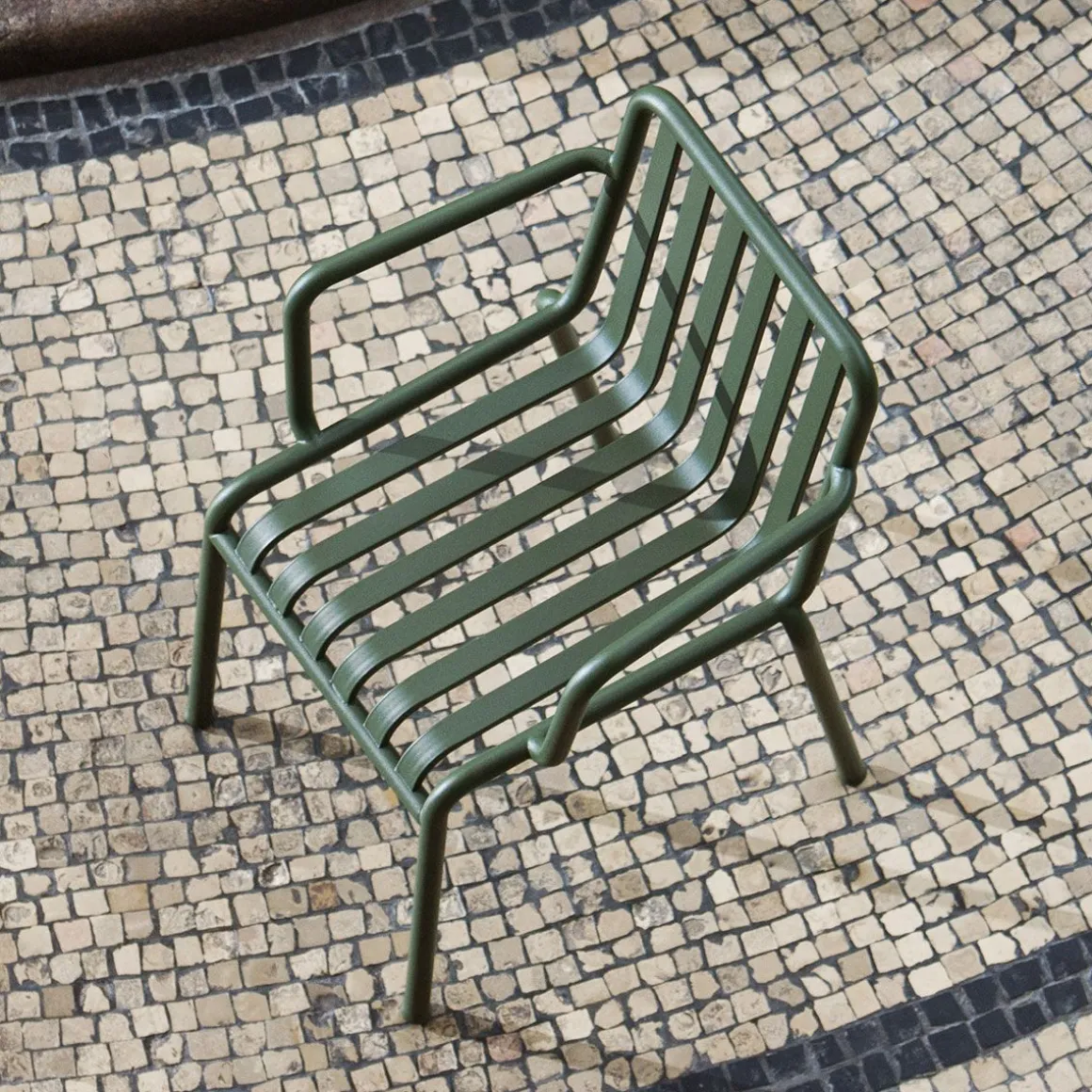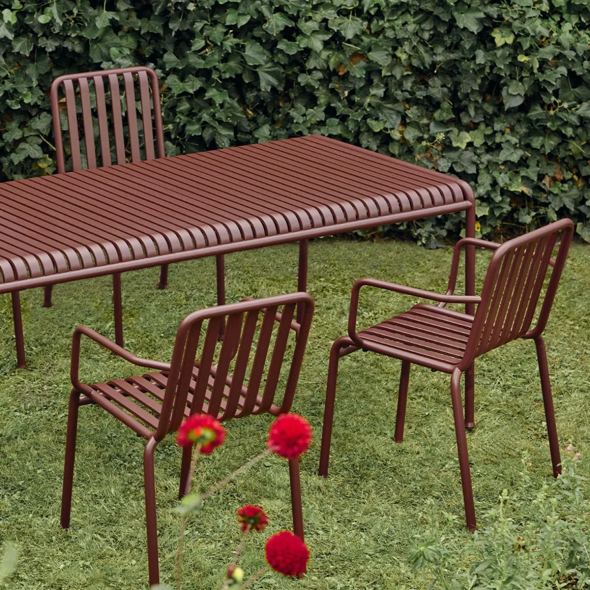 Palissade Armchair de Hay. Palissade est une collection de mobilier d’extérieur conçue par Ronan et Erwan Bouroullec pour HAY. La collection a été conçue pour s’adapter à une grande variété d’environnements: cafés, restaurants, jardins, terrasses et balcons. La conseption permet à un large éventail de typologies avec un langage formel commun. Des tabourets et bancs jusqu’aux chaises et tables, chaises longues et canapés, la collection comprend 13 éléments différents, unis non seulement par leur image graphique, mais aussi par leurs caractéristiques communes: ils sont forts sans être encombrant, élégant sans être fragile.