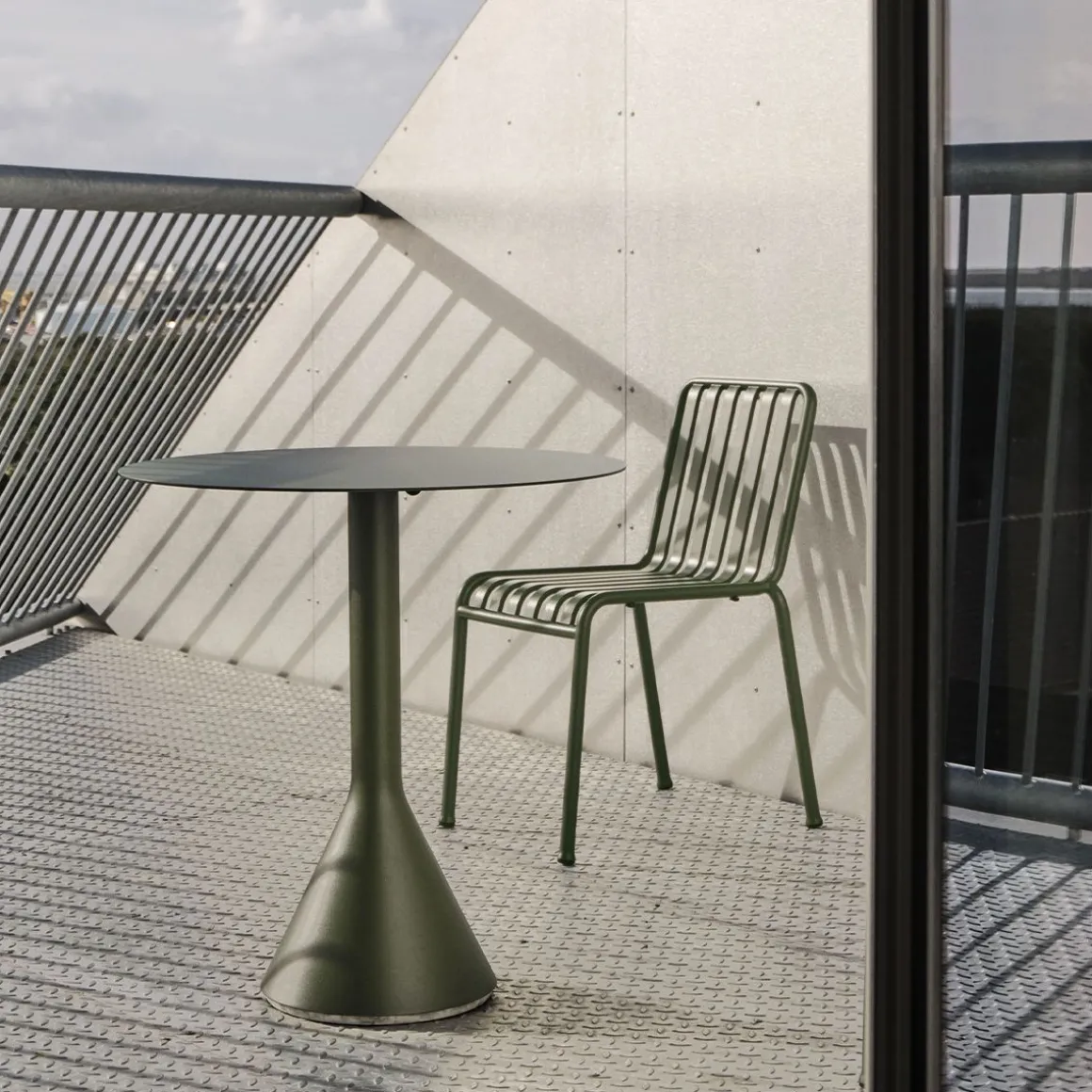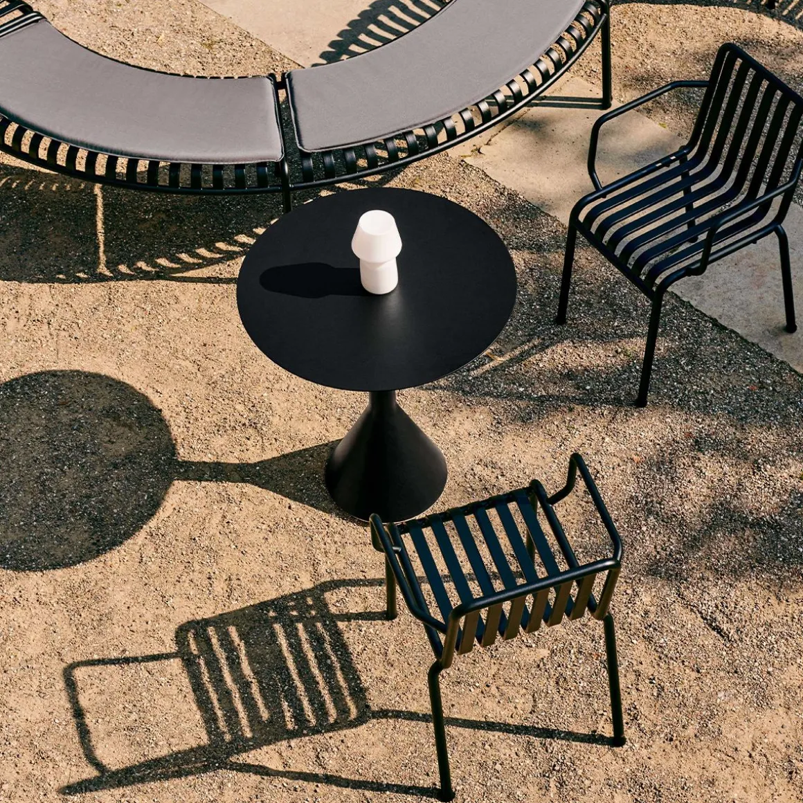 Palissade Cone Table de Hay de Ronan et Erwan Bouroullec. Le duo de designers français Ronan et Erwan Bouroullec se sont associés à HAY pour créer la Cone Table. Sa base solide et son plateau en acier ultrafin partagent le même graphisme que le reste de la série, permettant à la table d’être forte sans être encombrante et élégante sans être fragile. La série comprend différentes tailles avec des plateaux ronds et carrés; Tous dotés d’une base en béton stabilisant. Conçu spécifiquement pour une utilisation en extérieur, l’acier à revêtement en poudre est doté d’un apprêt extérieur protecteur pour une durabilité et une résilience optimales.