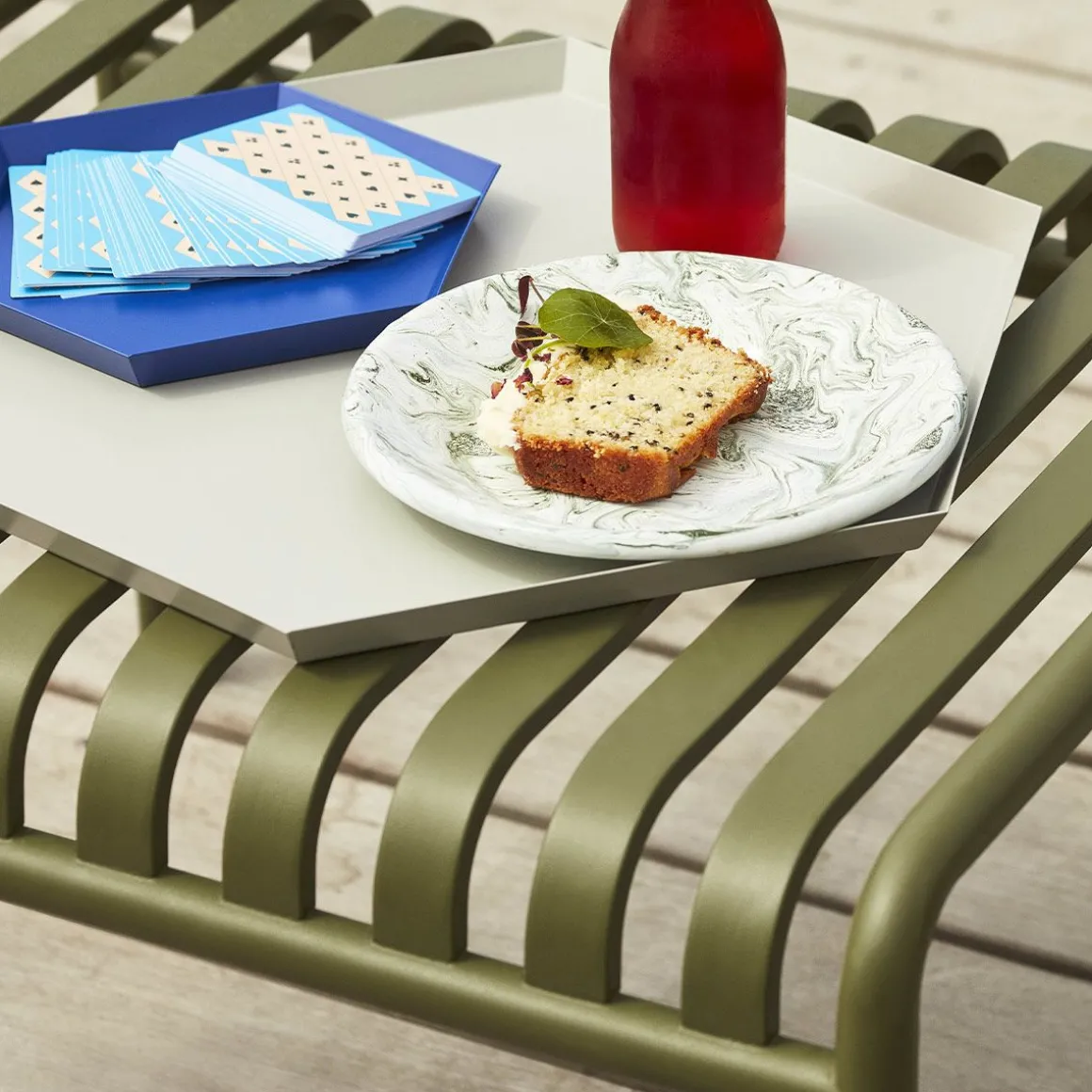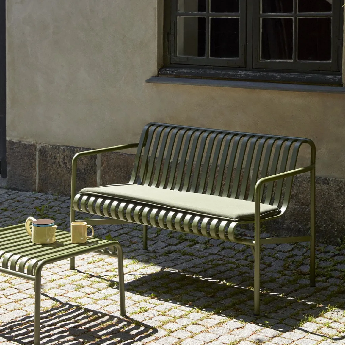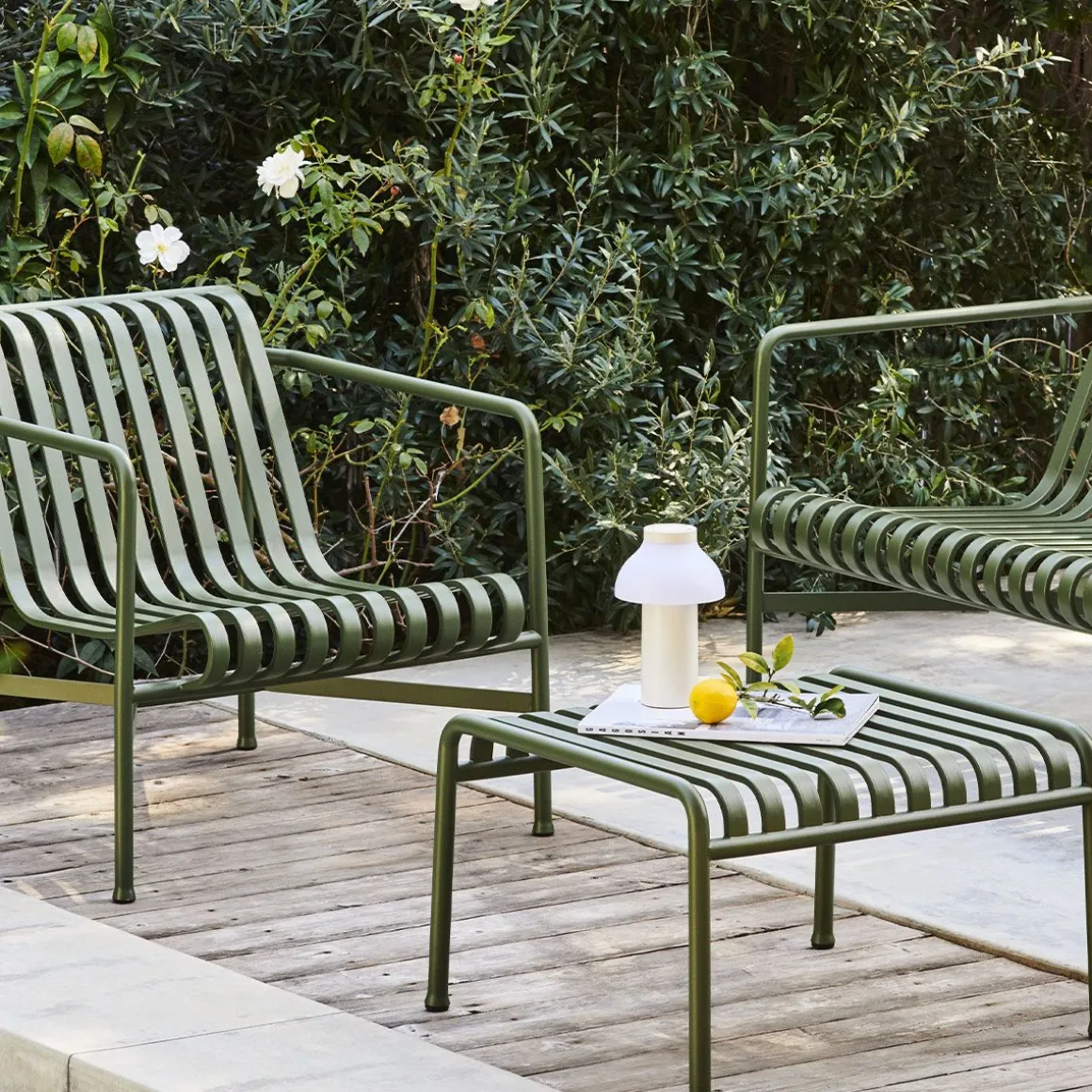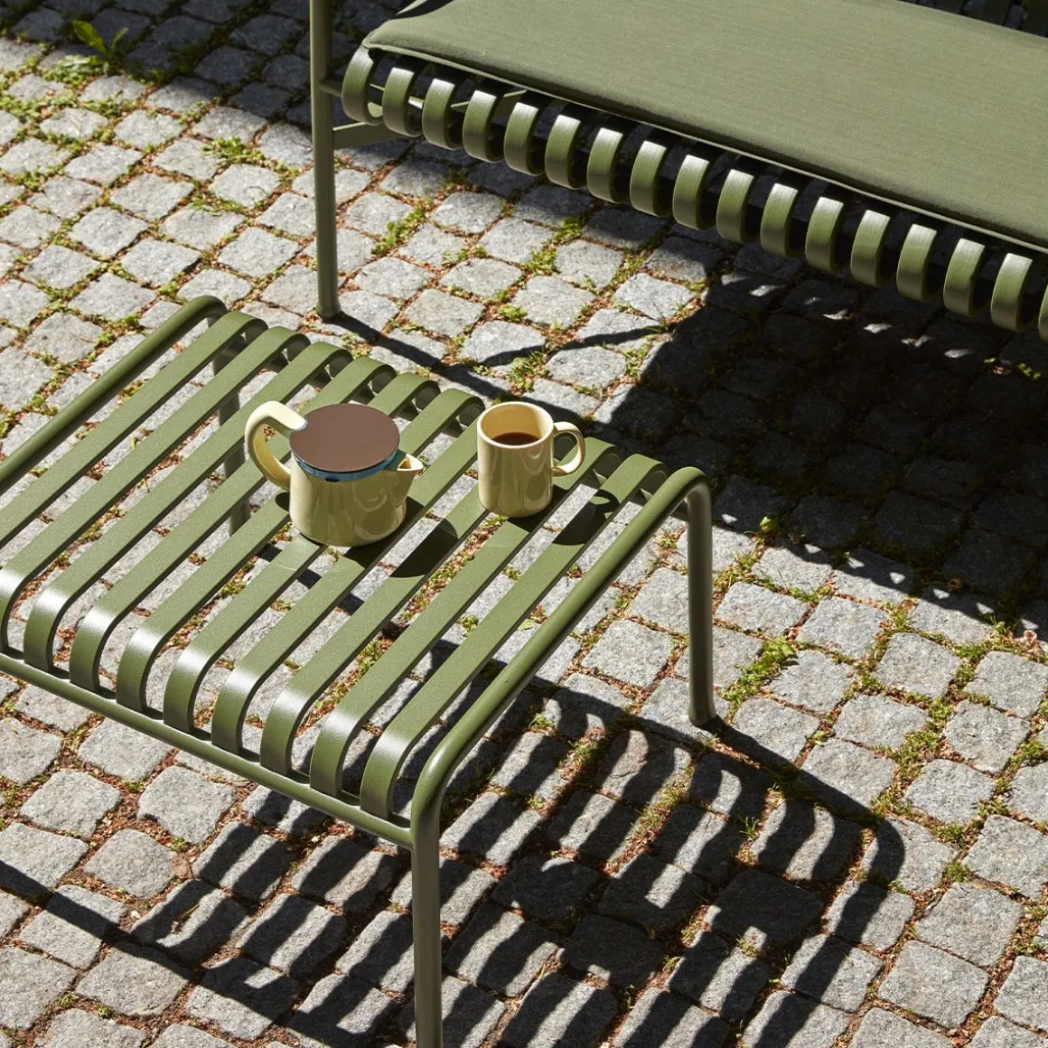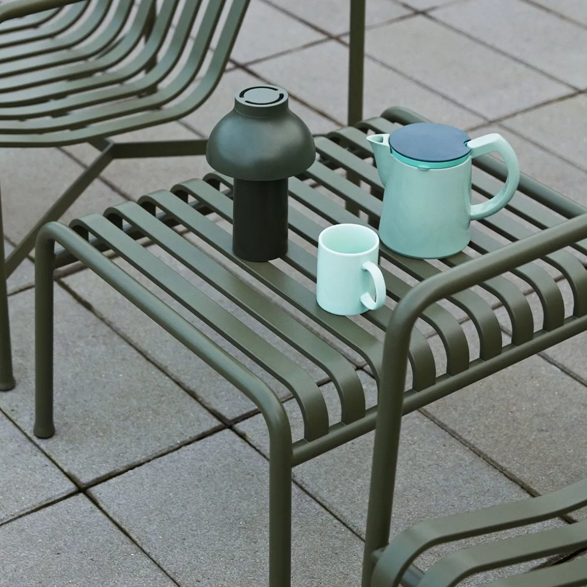 Palissade Table Basse de Hay. Conçu par les frères français Ronan et Erwan Bouroullec, Palissade est une collection de mobilier d’extérieur pour HAY en acier galvanisé à chaud. Unis par un principe commun de géométrie symétrique, la collection Palissade est conçue pour reproduire la même simplicité visuelle et la même force de base. Conçu en couleur et en forme pour s’intégrer sans effort dans un paysage naturel ou un cadre urbain, Palissade est destiné à être utilisé sur une plus longue période et à devenir plus beau au fil des ans. La collection est adaptée à une grande variété d’environnements, des cafés et des restaurants aux jardins, terrasses et balcons.