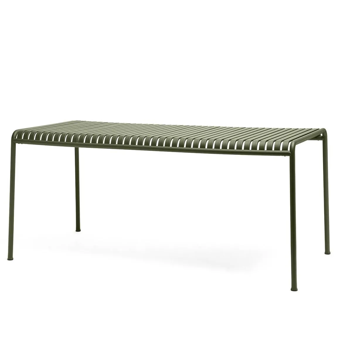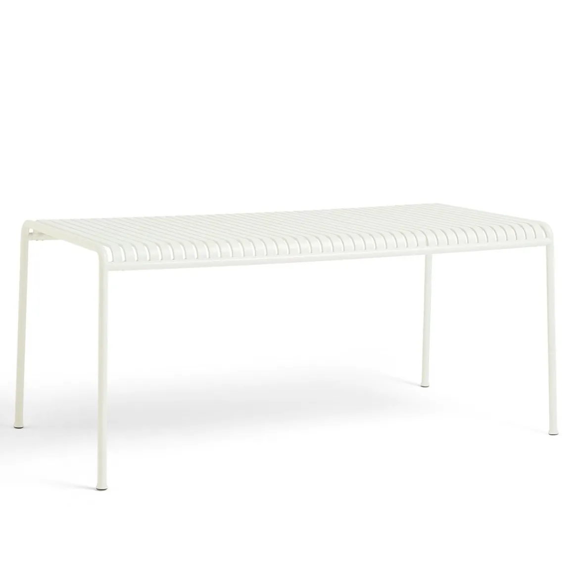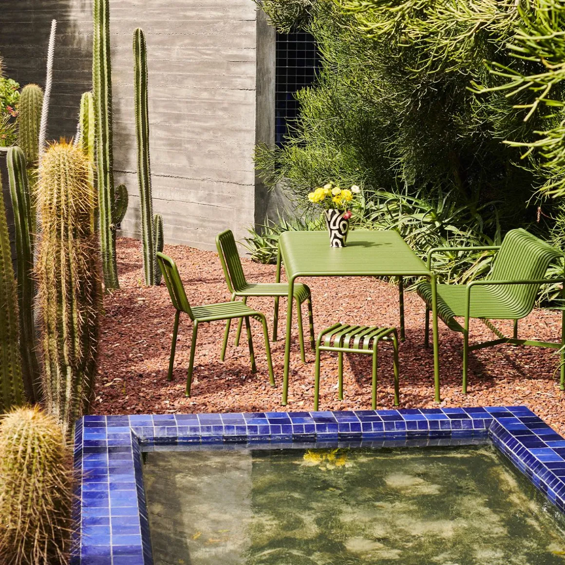 Palissade table de Hay. Palissade est une collection de mobilier d’extérieur conçue par Ronan et Erwan Bouroullec pour Hay. La collection a été conçue pour s’adapter à une grande variété d’environnements : cafés, restaurants, jardins, terrasses et balcons. La contractire permet un large éventail de typologie avec un langage formel commun. Des tabourets et des bancs aux chaises en passant par les tables, les chaises longues et les canapés, la collection comprends 13 éléments différents, unis non seulement par leur image graphique, mais également par leur caractéristiques communes : ils sont solides sans être volumineux, élégants sans être fragiles.