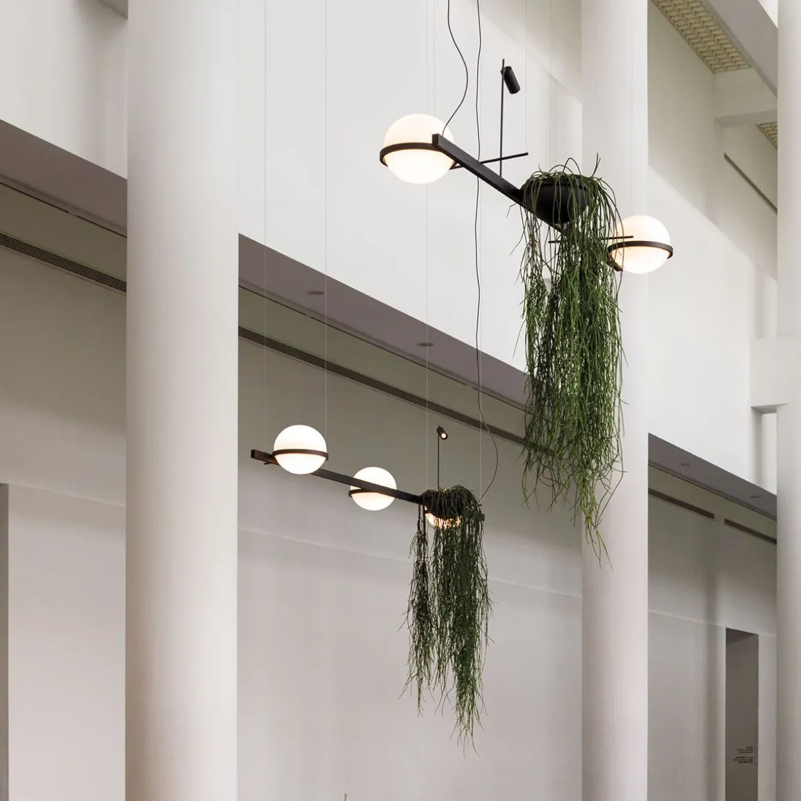 Antoni Arola considère Palma comme un projet d’aménagement paysager qui se transforme au fi l du temps une fois que le designer a terminé son travail. Le pouvoir qu’a Palma de créer une ambiance en intérieur se renforce à mesure qu’il s’étend comme un jardin suspendu lumineux. La boule en verre classique, légèrement écrasée, évolue vers l’organique et le système de câble invisible inédit de la version suspension accentue encore cette sensation de flottaison. La nature prend le contrôle de l’espace avec ces luminaires suspendus qui permettent d’intégrer des plantes dans les compositions d’éclairage pour que les intérieurs prennent vie.