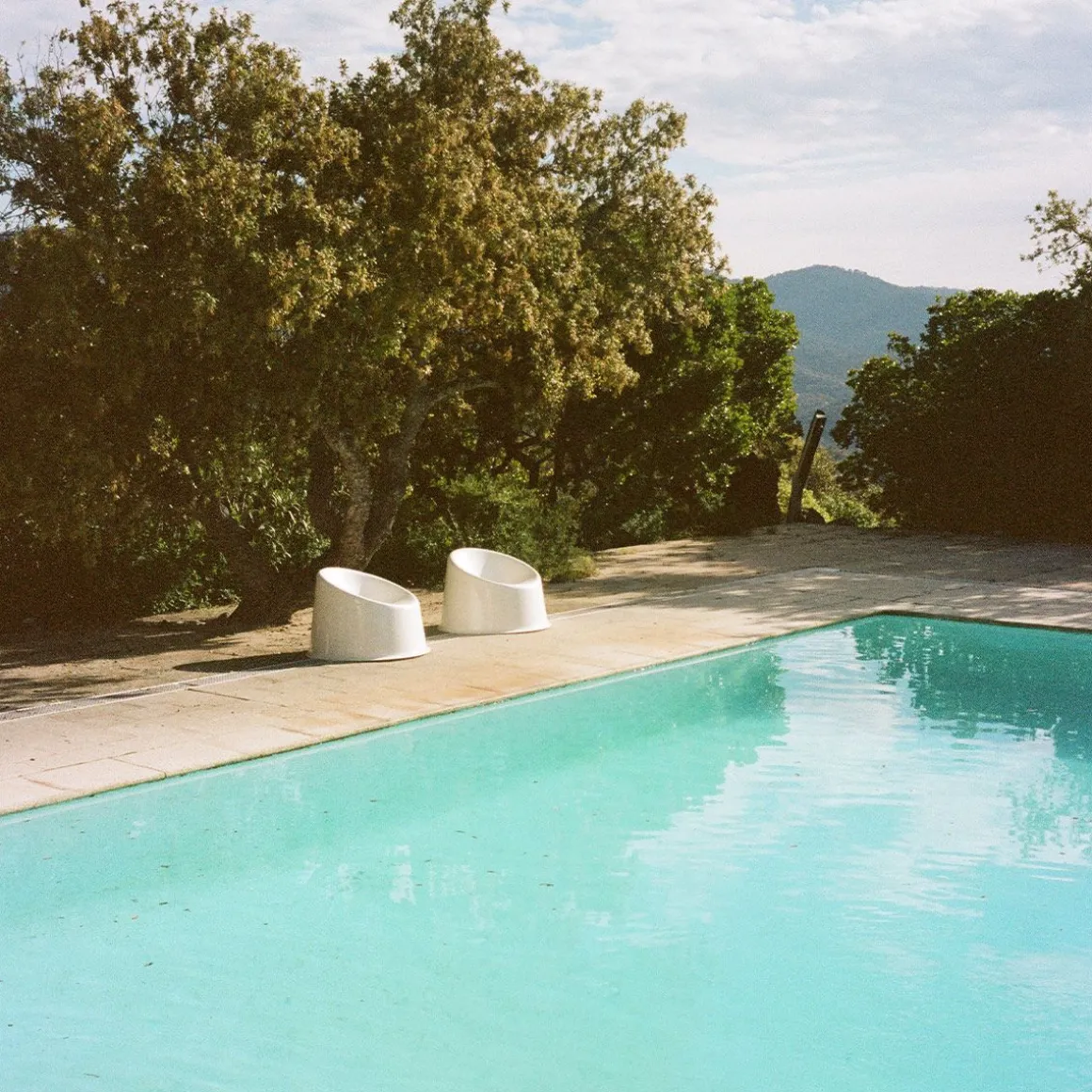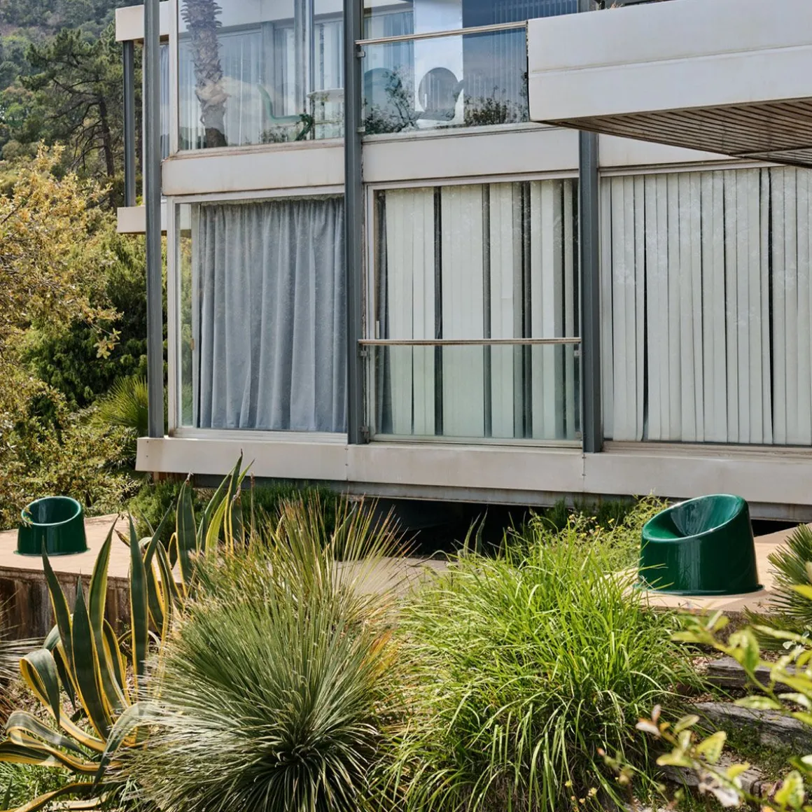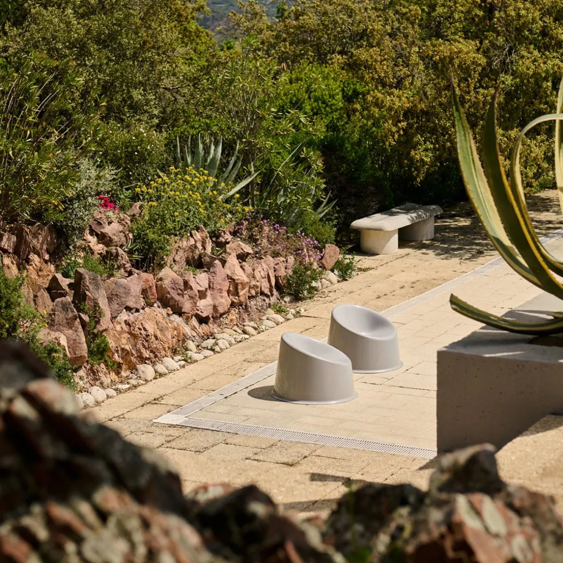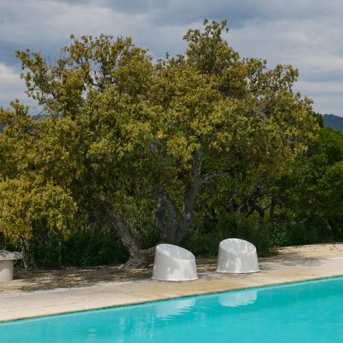 Fauteuil lounge empilable pour l’extérieur Panto Pop, créé par Verner Panton en 1969.