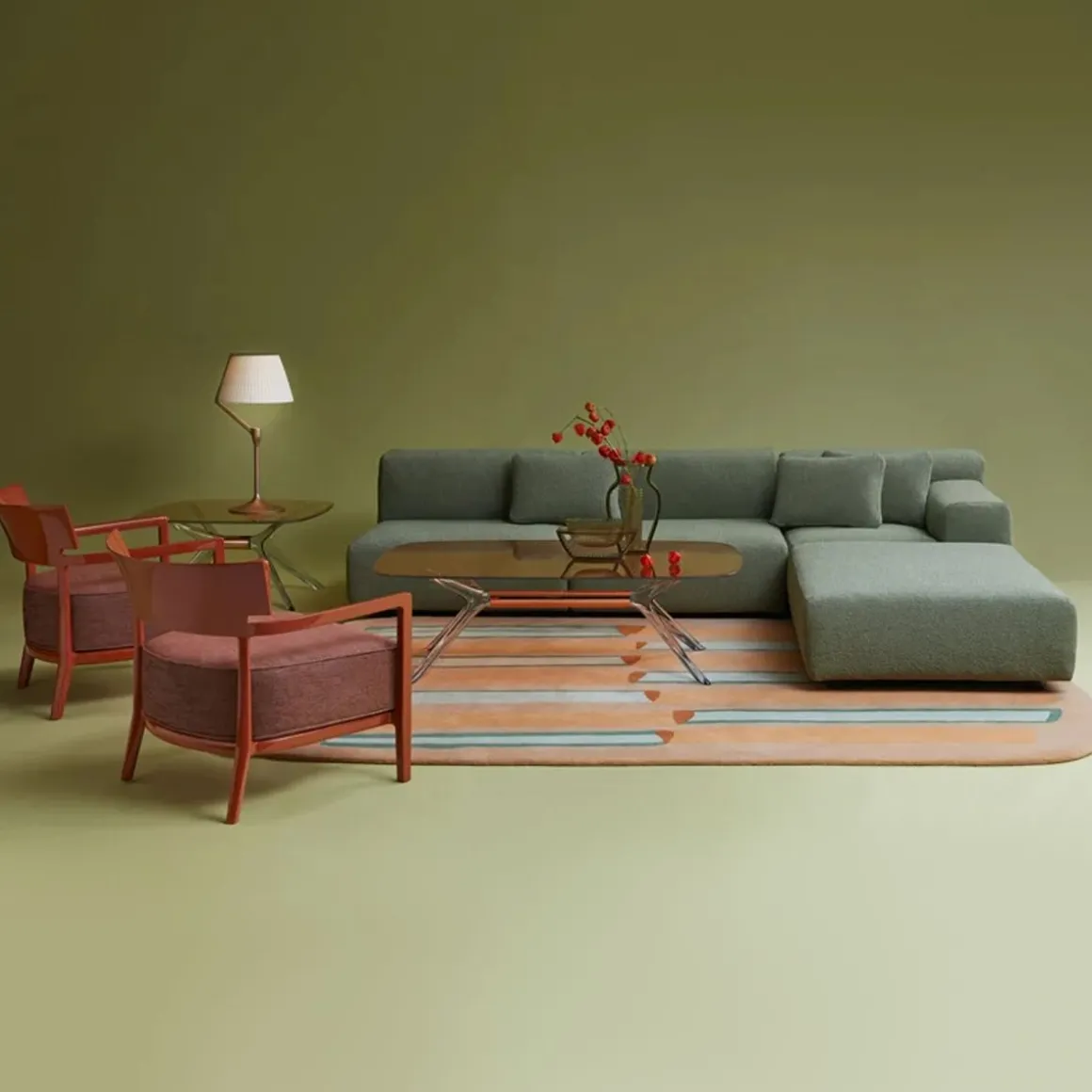 Également signés Urquiola, les nouveaux tapis PARAYS sont conçus pour un salon coloré et enveloppant, avec un tissu bouclé en parfaite harmonie avec les tissus bouclés ou mélangés de la tapisserie d’ameublement. Le motif joue sur les hachures dans les tons verts et bleus ou dans les tons plus chauds du rose, du violet et du jaune. Les formes sont plus allongées, coureuses ou carrées.