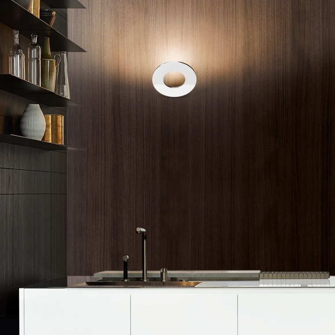 Applique au dessin linéaire et élégant en forme d’anneau. La structure mince en aluminium est accouplée à un disque réalisé en acier émaillé en plusieurs couleurs comme le rouge, le blanc et le noir et en finitions recherchés comme le cuivre, le laiton et l’acier chromé. Lampes LED dimmables à mur, d’intérieur, pour un éclairage indirect.