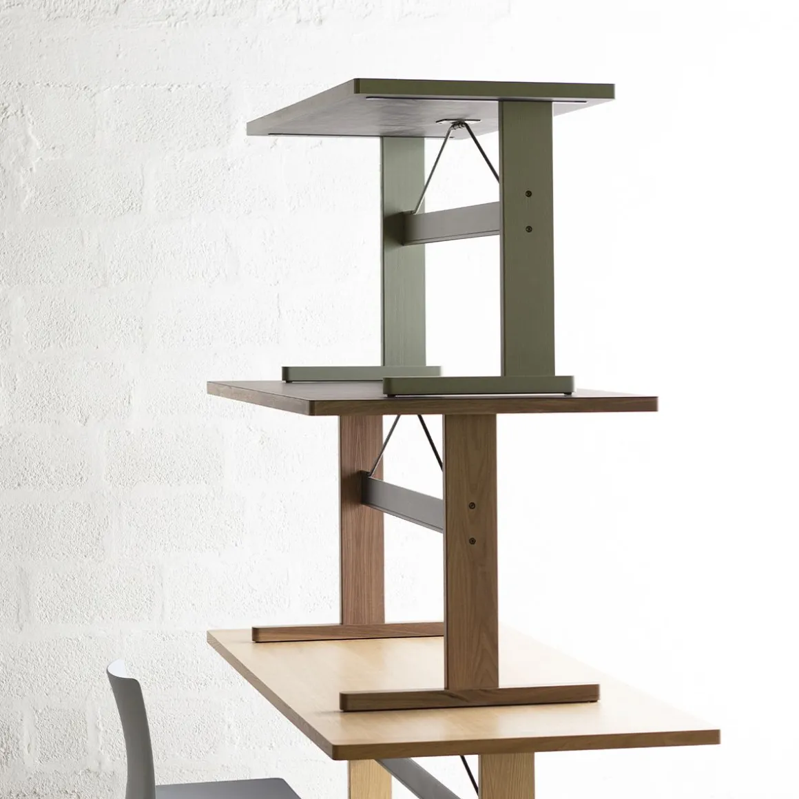 Inspirés par l’esthétique épurée des meubles Shaker classiques, les designers français Ronan et Erwan Bouroullec ont conçu la table Passerelle – une interprétation mise à jour partageant la même simplicité et la même qualité dans un contexte plus contemporain. Avec une construction bien équilibrée et emballée à plat, le plateau de table présente des bords en bois massif et une surface supérieure en placage, stratifié ou linoléum, avec le noyau en Lisocore® – un matériau avancé de haute qualité qui offre une grande résistance tout en étant extrêmement léger et facile à déplacer. La sous-construction est tout aussi robuste et fonctionnelle, avec un cadre en bois massif et une barre transversale en aluminium et en acier qui renforce et stabilise la table. La variété d’options de matériaux, de couleurs et de tailles de la table Passerelle amplifie sa qualité multifonctionnelle, la rendant également appropriée pour une utilisation comme cuisine, table à manger ou table de réunion dans les espaces privés et publics.