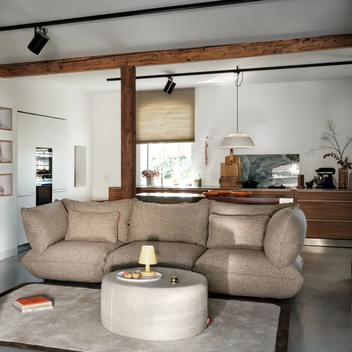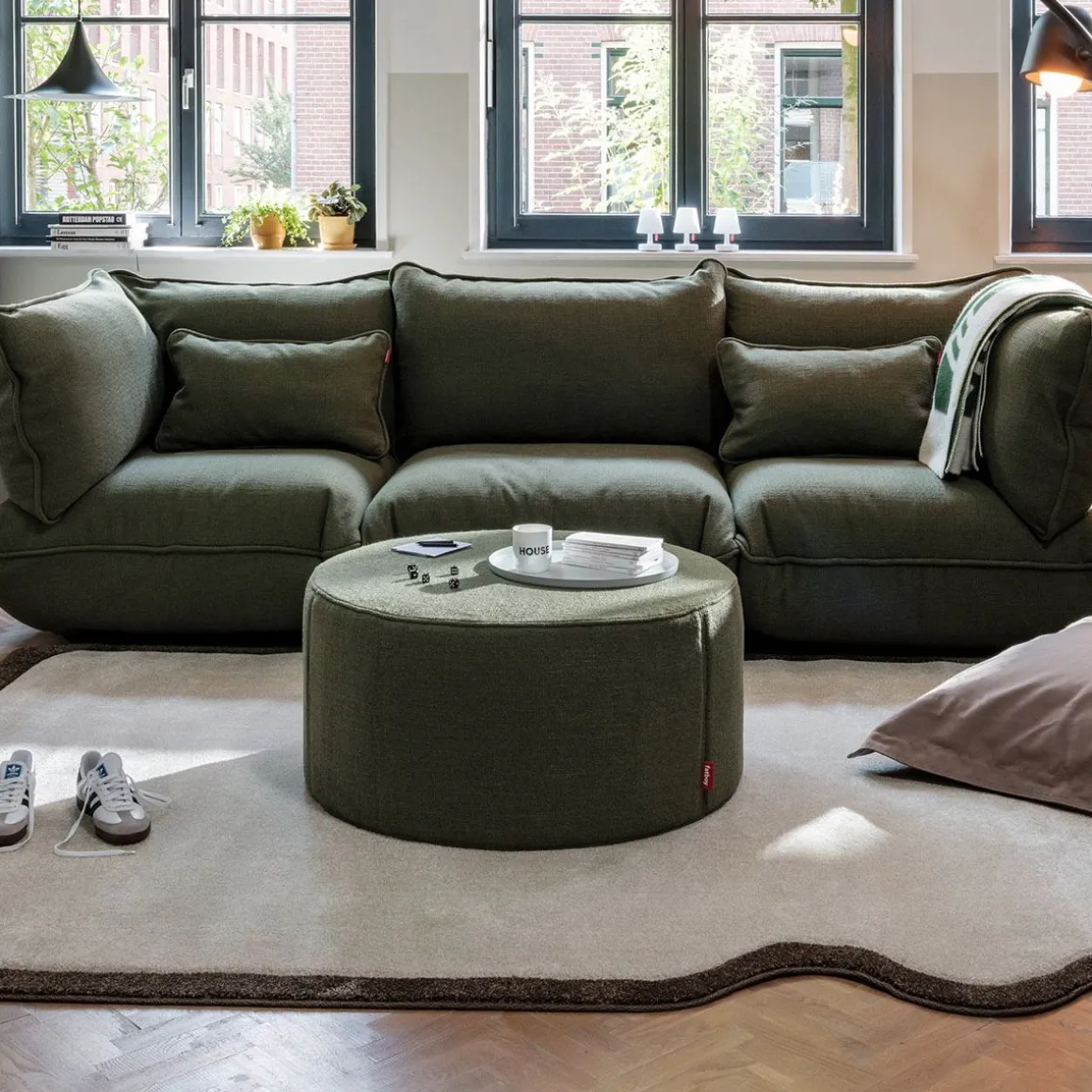 Le pouf Pfffh en tissu bouclé recyclé est un allié déco stylé avec un clin d’œil rétro. Son format généreux le rend parfait comme siège d’appoint, repose-pieds ou petite table. Le tissu bouclé recyclé apporte chaleur et texture à ton intérieur, tandis que le rembourrage ferme assure confort durable. Une véritable source d’ambiance avec du caractère, aussi à l’aise dans le salon que dans un coin lecture ou une chambre.