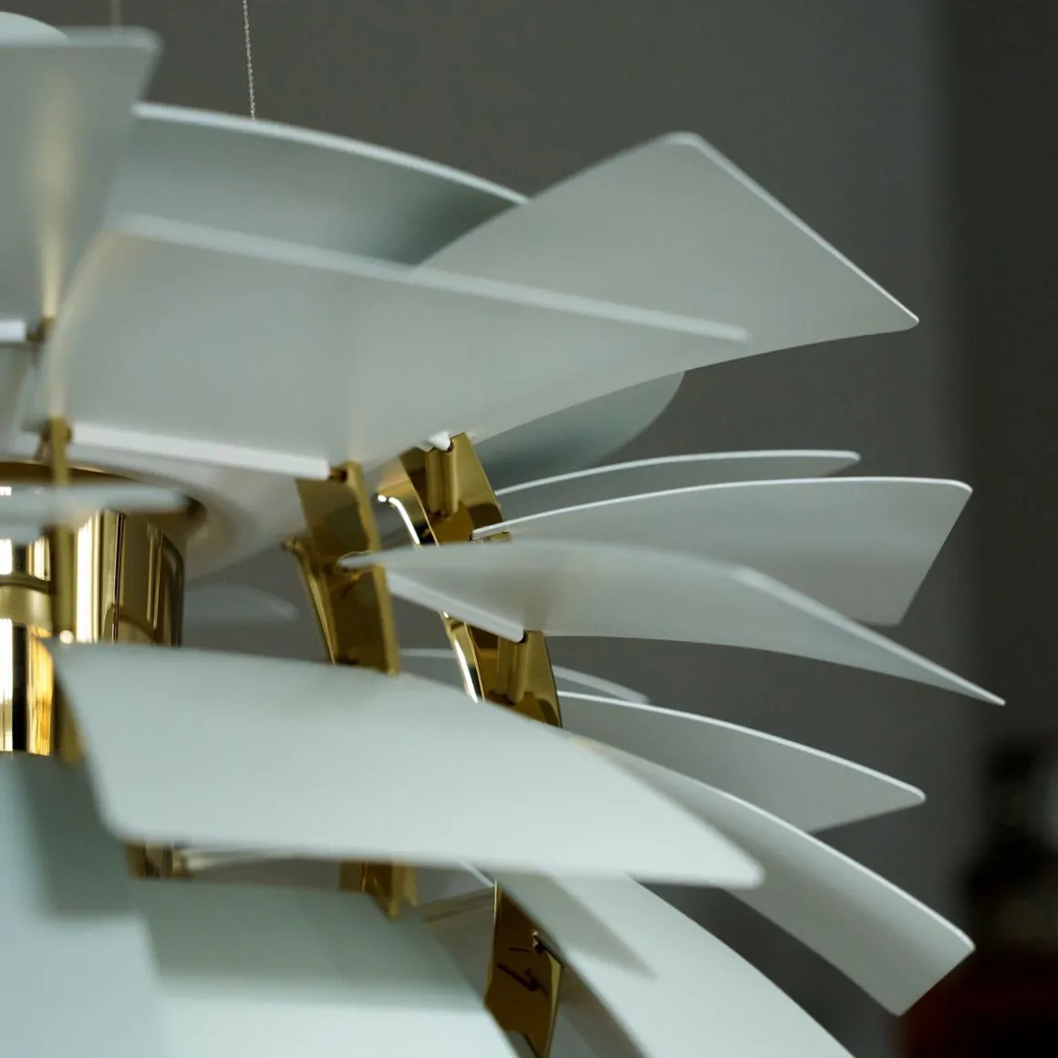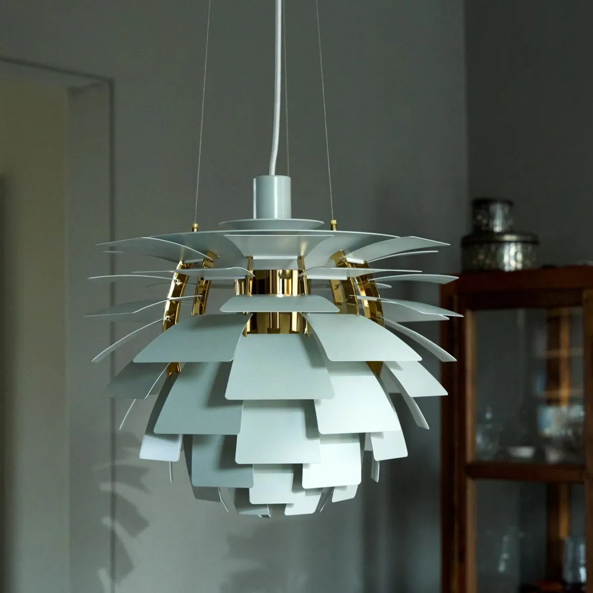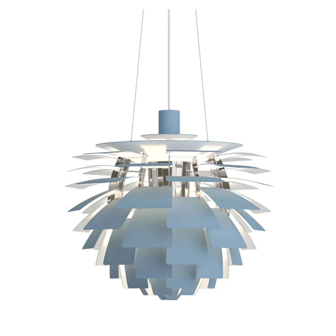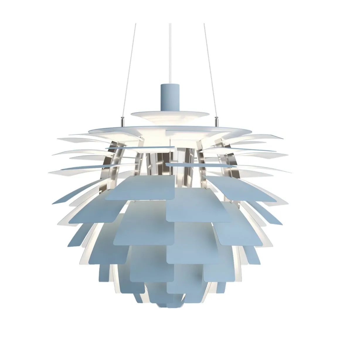 PH Artichoke de Louis Poulsen par Poul Henningsen. La suspension Artichoke, PH Pomme de Pin est connue dans le monde entier par son style sculptural unique. Réalisée par Poul Henningsen il y a plus de 40 ans elle a obtenu le statut d’icône en matière de design. Le luminaire se compose de 12 fois 6 lamelles qui dirigent la lumière de façon à la fois à éclairer le luminaire même et à émettre une lumière unique et 100 % anti-éblouissante. Le PH Pomme de Pin a été développé à l’origine pour un restaurant de Copenhague nommé le Pavillon Langelinie, où vous pouvez encore l’admirer aujourd’hui.