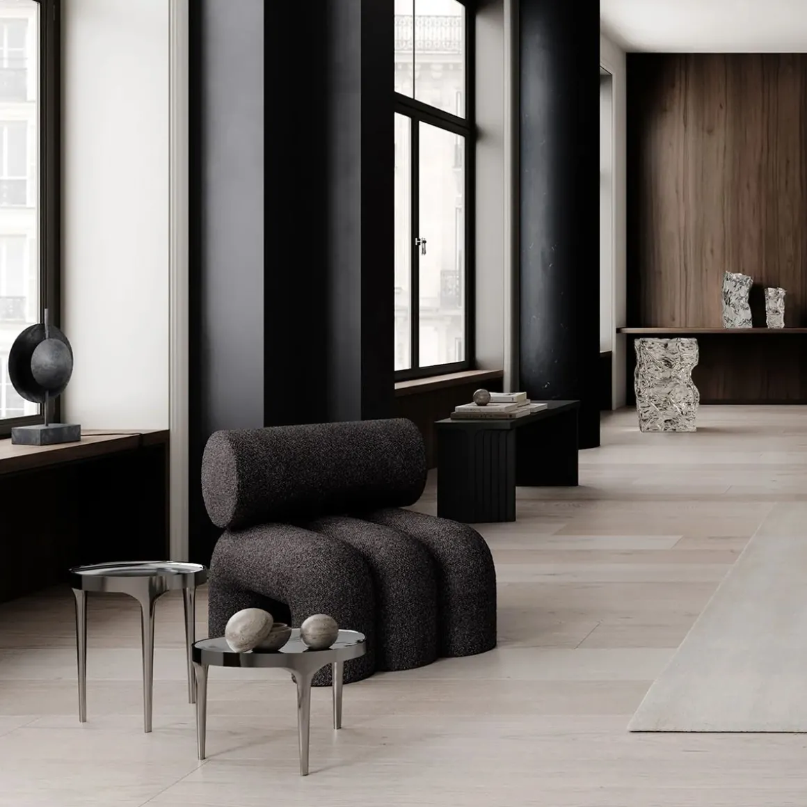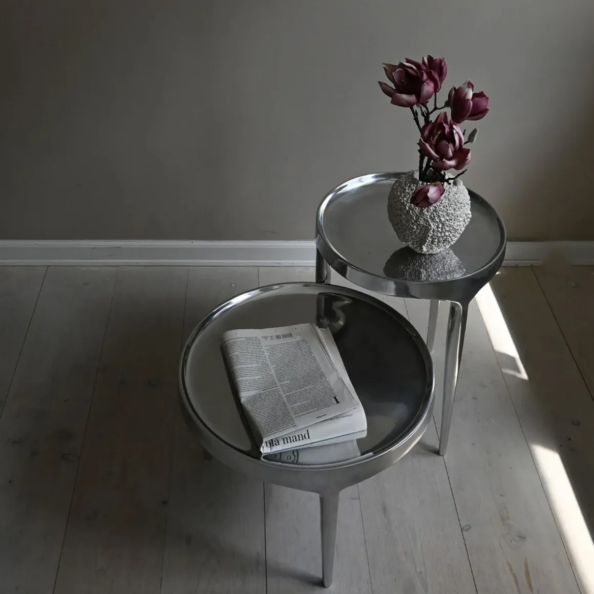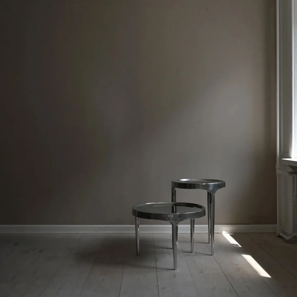 Caractérisée par son expression volontairement naïve et artisanale, la table Phantom révèle sa technique de moulage unique. La série est à la fois fragile, délicate et volumineuse dans son apparence. Les tables basses Phantom sont disponibles en deux tailles : une version haute et une version basse, toutes deux en fonte d’aluminium. Choisissez entre la couleur antique brûlée peinte à la main, avec une surface brute et non polie, mettant en valeur une lueur subtile et chaleureuse, ou la variante en aluminium poli avec une finition chromée avec une surface brillante semblable à un miroir, offrant une expression élégante et moderne. Chaque variante conserve l’expression sophistiquée et subtile qui définit la série Phantom, ce qui en fait un choix polyvalent pour tout intérieur.