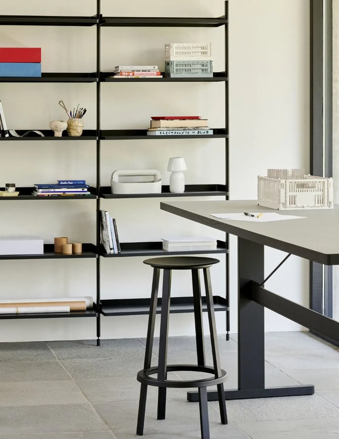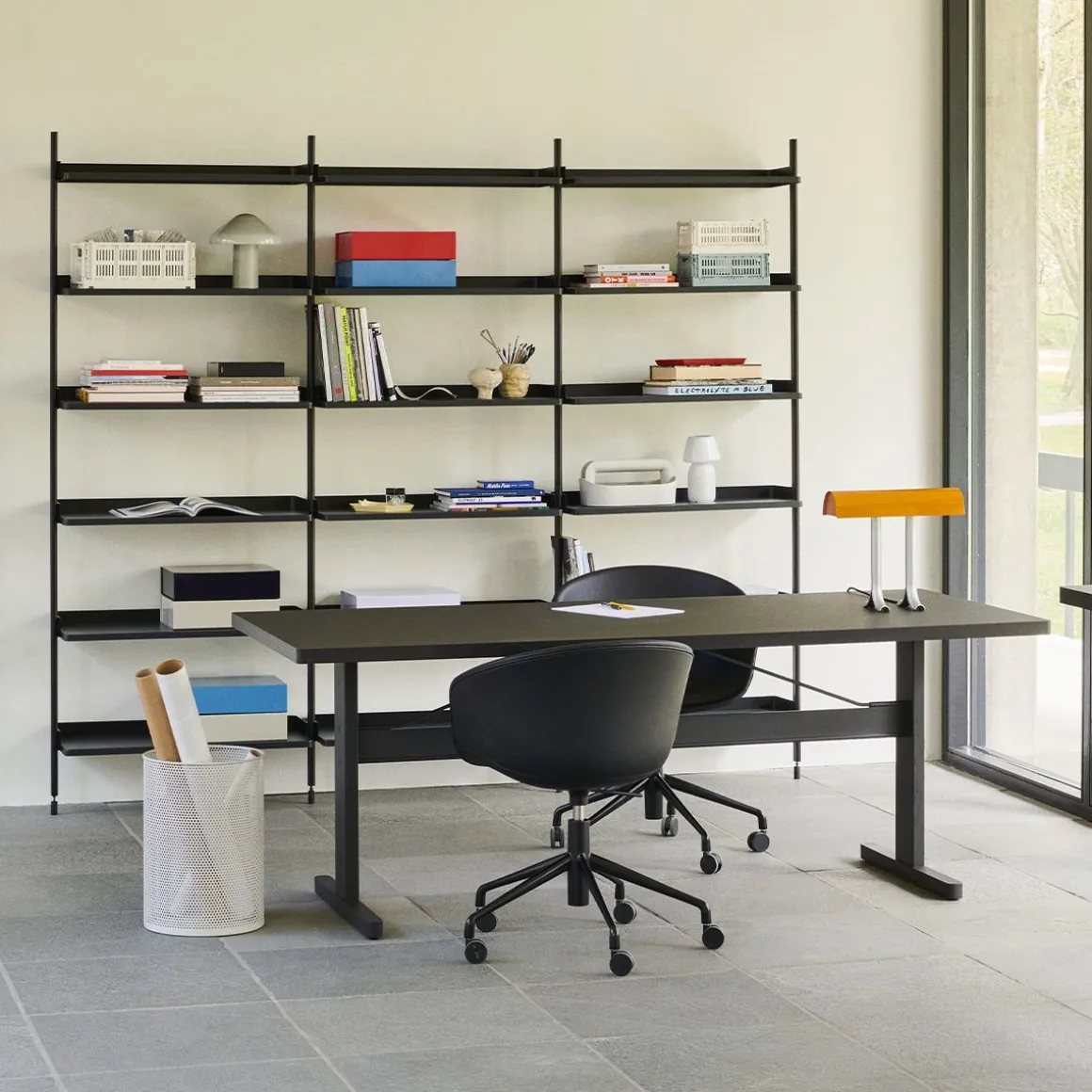 Pier System 103 3 Columns de Hay. Conçu par les designers français Ronan et Erwan Bouroullec, Pier System est un système de rangement multifonctionnel développé pour s’adapter aux exigences du style de vie moderne. Doté d’un design plat facile à assembler, à reconfigurer et à recycler, la construction simple offre une solution de rayonnage flexible pour organiser et stocker une multitude d’articles. Construit à partir d’aluminium léger et d’acier en utilisant le nombre minimum de composants requis pour créer un système de stockage complet, Pier System est disponible dans une variété de couleurs et de configurations d’ensemble qui peuvent être combinées les unes avec les autres. Les éléments qui font partie de ces configurations peuvent être déplacés selon les besoins et les envies, permettant à l’utilisateur d’intégrer des fonctions de travail, de garde-robe ou d’organisation dans la plupart des pièces et des environnements, des salons et chambres aux halls d’entrée et aux bureaux.
