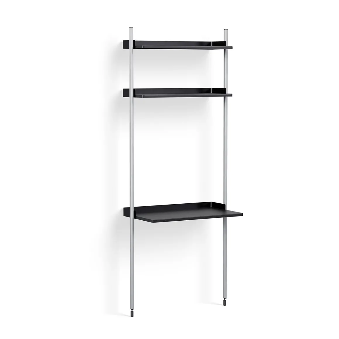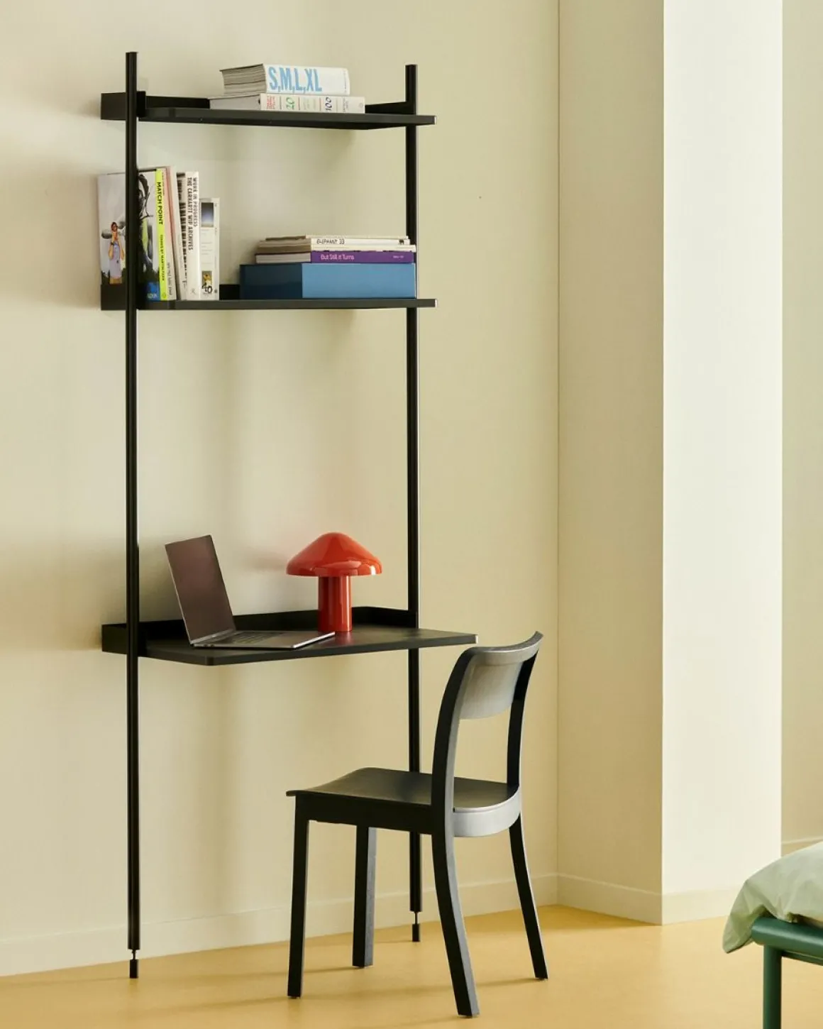 Pier System 11 1 Column de Hay. Conçu par les designers français Ronan et Erwan Bouroullec, Pier System est un système de rangement multifonctionnel développé pour s’adapter aux exigences du style de vie moderne. Doté d’un design plat facile à assembler, à reconfigurer et à recycler, la construction simple offre une solution de rayonnage flexible pour organiser et stocker une multitude d’articles. Construit à partir d’aluminium léger et d’acier en utilisant le nombre minimum de composants requis pour créer un système de stockage complet, Pier System est disponible dans une variété de couleurs et de configurations d’ensemble qui peuvent être combinées les unes avec les autres. Les éléments qui font partie de ces configurations peuvent être déplacés selon les besoins et les envies, permettant à l’utilisateur d’intégrer des fonctions de travail, de garde-robe ou d’organisation dans la plupart des pièces et des environnements, des salons et chambres aux halls d’entrée et aux bureaux.