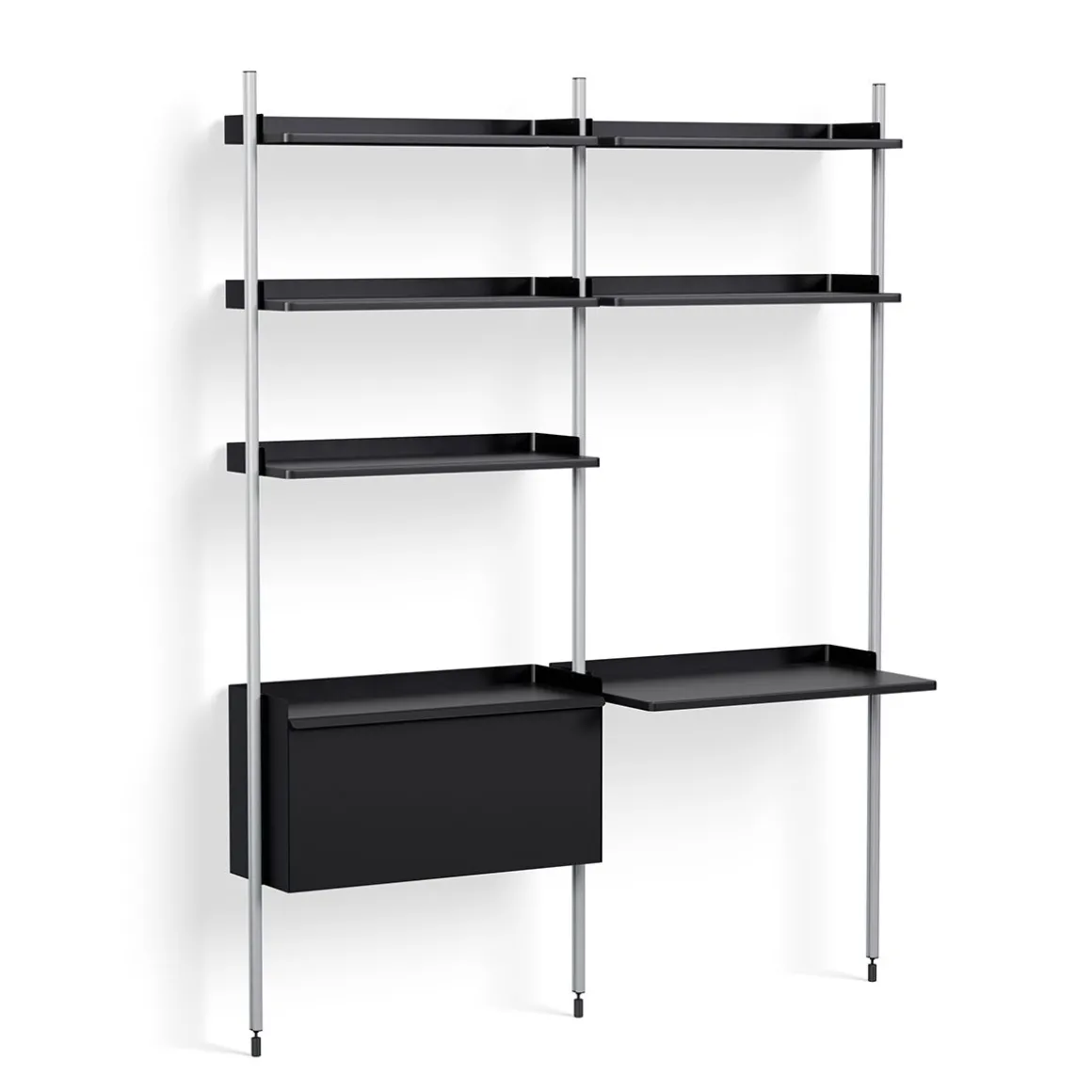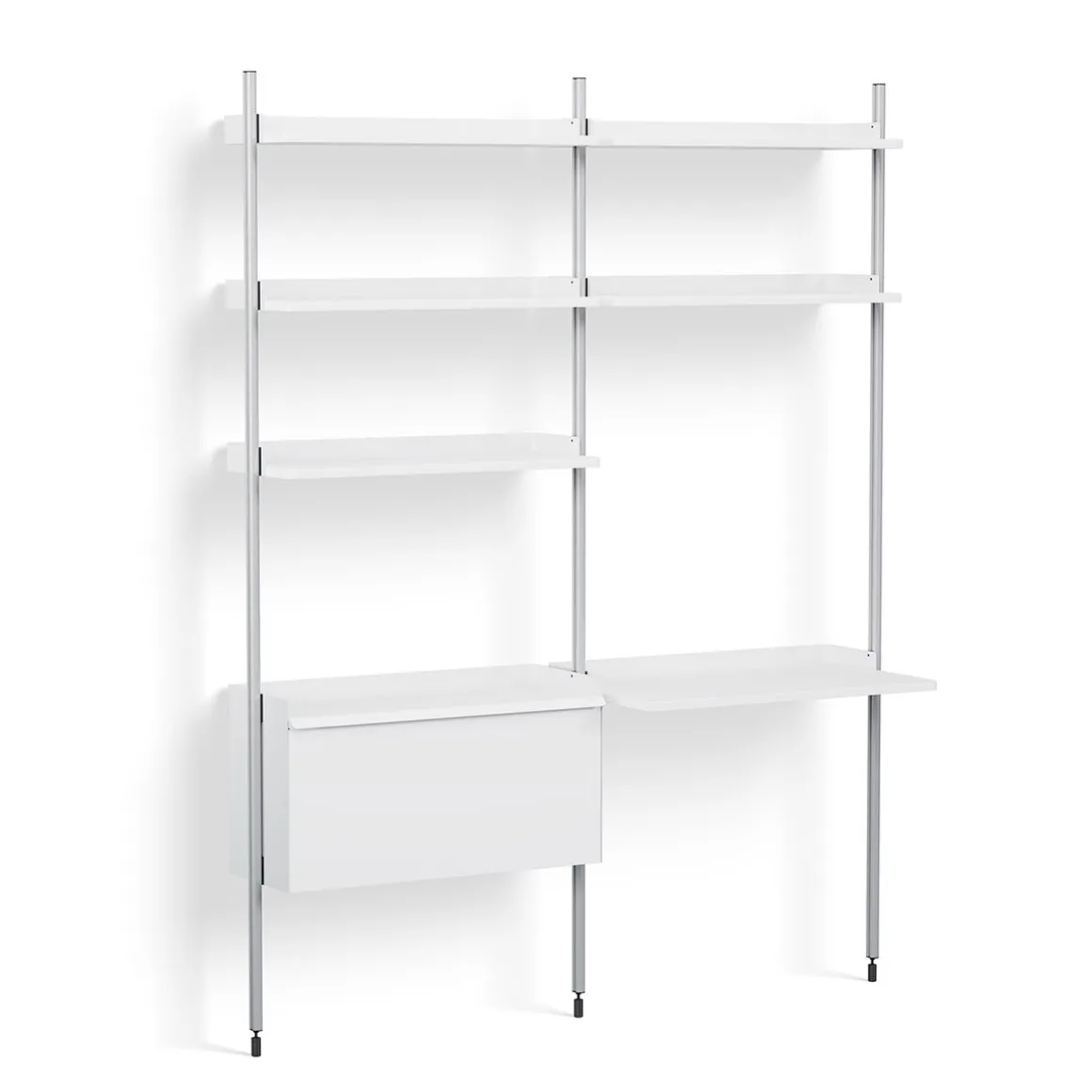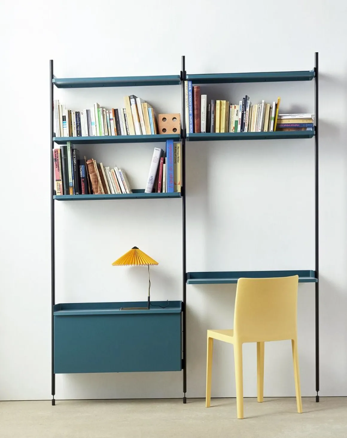 Pier System 12 2 Columns de Hay. Conçu par les designers français Ronan et Erwan Bouroullec, Pier System est un système de rangement multifonctionnel développé pour s’adapter aux exigences du style de vie moderne. Doté d’un design plat facile à assembler, à reconfigurer et à recycler, la construction simple offre une solution de rayonnage flexible pour organiser et stocker une multitude d’articles. Construit à partir d’aluminium léger et d’acier en utilisant le nombre minimum de composants requis pour créer un système de stockage complet, Pier System est disponible dans une variété de couleurs et de configurations d’ensemble qui peuvent être combinées les unes avec les autres. Les éléments qui font partie de ces configurations peuvent être déplacés selon les besoins et les envies, permettant à l’utilisateur d’intégrer des fonctions de travail, de garde-robe ou d’organisation dans la plupart des pièces et des environnements, des salons et chambres aux halls d’entrée et aux bureaux.