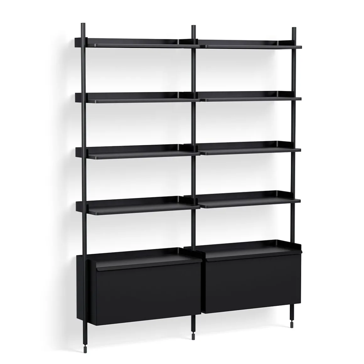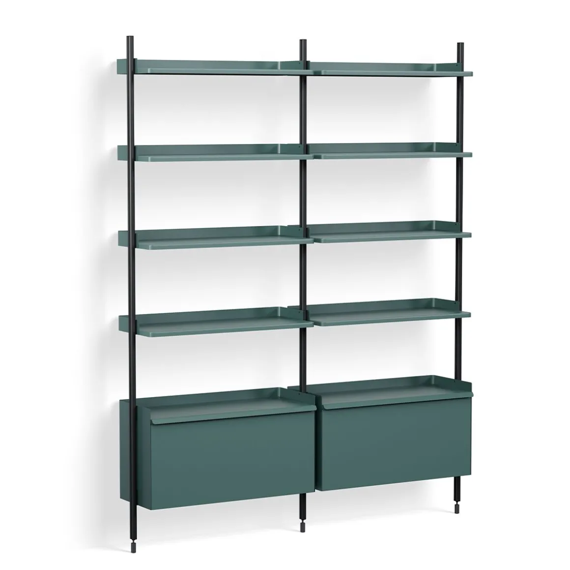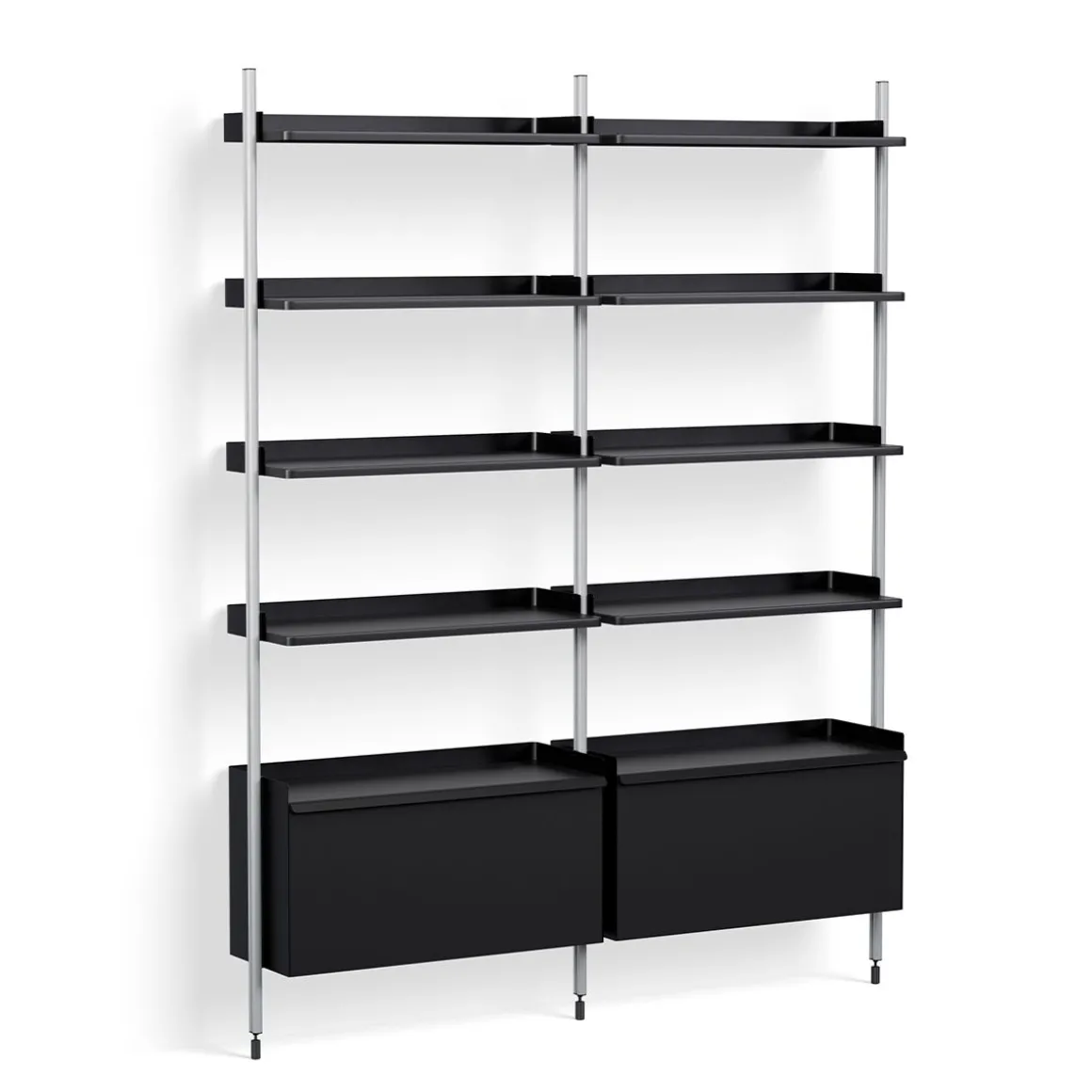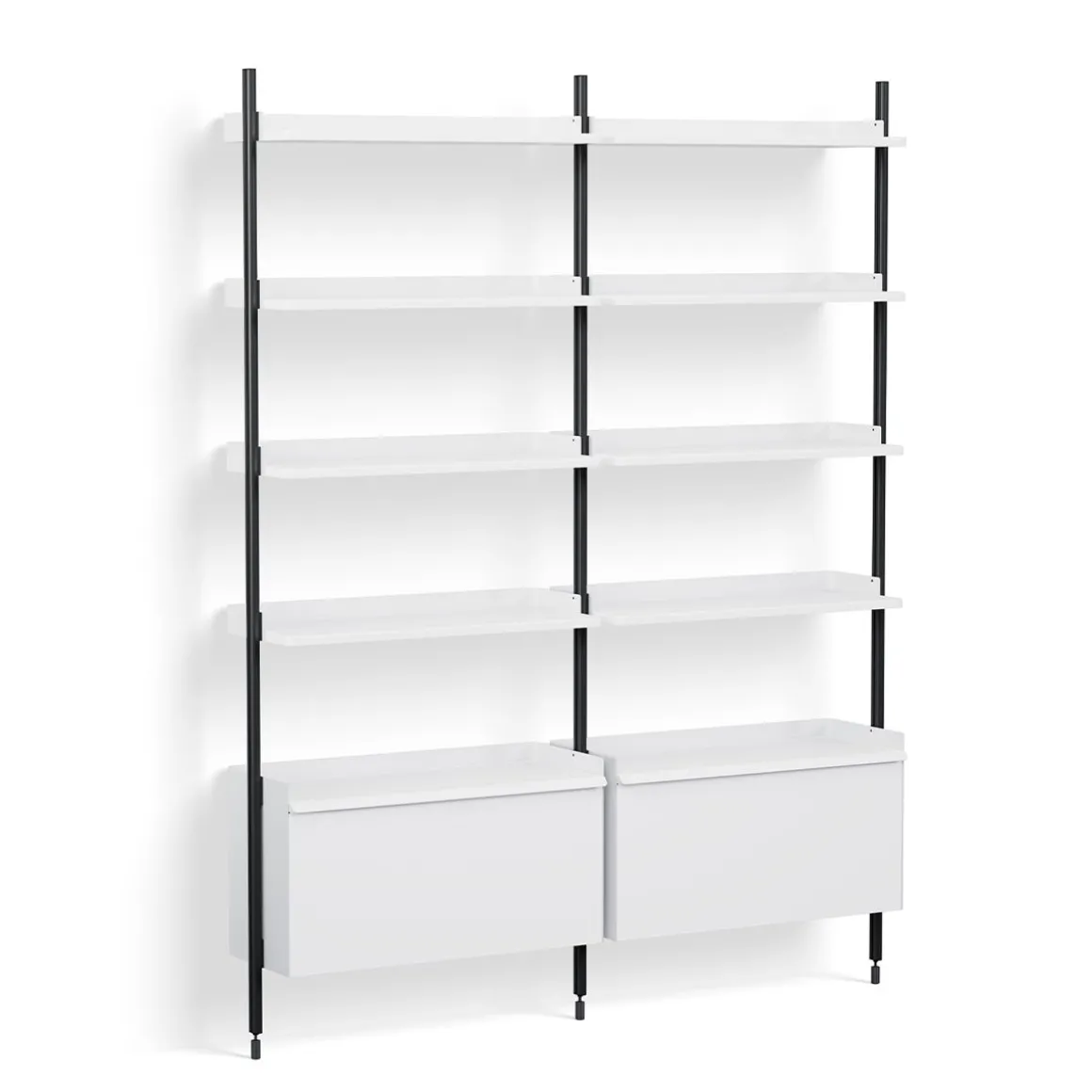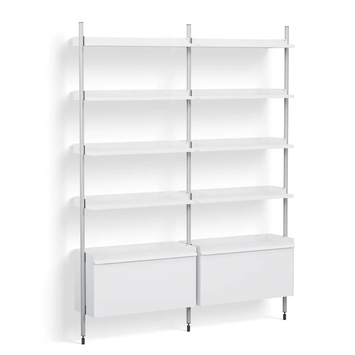 Pier System 122 2 Columns de Hay. Conçu par les designers français Ronan et Erwan Bouroullec, Pier System est un système de rangement multifonctionnel développé pour s’adapter aux exigences du style de vie moderne. Doté d’un design plat facile à assembler, à reconfigurer et à recycler, la construction simple offre une solution de rayonnage flexible pour organiser et stocker une multitude d’articles. Construit à partir d’aluminium léger et d’acier en utilisant le nombre minimum de composants requis pour créer un système de stockage complet, Pier System est disponible dans une variété de couleurs et de configurations d’ensemble qui peuvent être combinées les unes avec les autres. Les éléments qui font partie de ces configurations peuvent être déplacés selon les besoins et les envies, permettant à l’utilisateur d’intégrer des fonctions de travail, de garde-robe ou d’organisation dans la plupart des pièces et des environnements, des salons et chambres aux halls d’entrée et aux bureaux.
