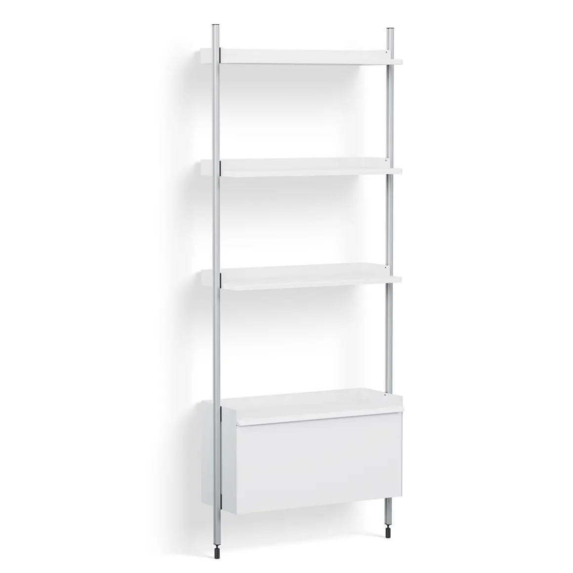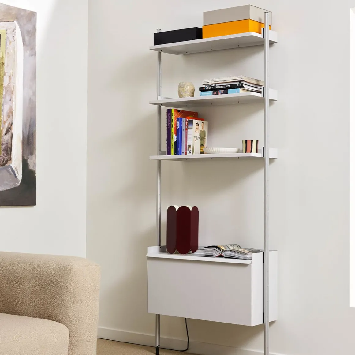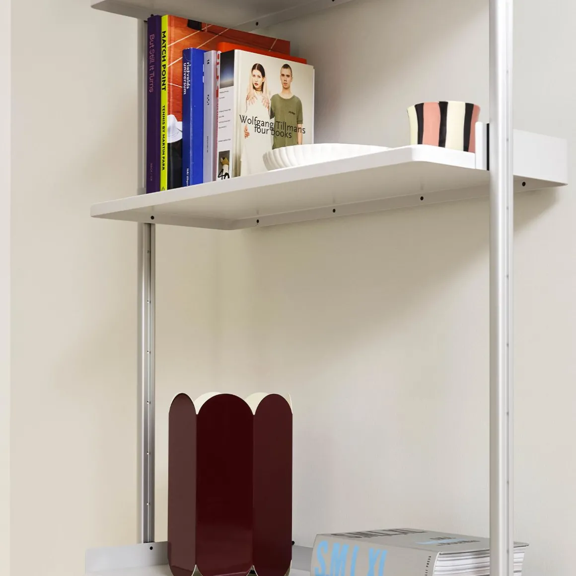 Pier System 131 1 Columns de Hay. Conçu par les designers français Ronan et Erwan Bouroullec, Pier System est un système de rangement multifonctionnel développé pour s’adapter aux exigences du style de vie moderne. Doté d’un design plat facile à assembler, à reconfigurer et à recycler, la construction simple offre une solution de rayonnage flexible pour organiser et stocker une multitude d’articles. Construit à partir d’aluminium léger et d’acier en utilisant le nombre minimum de composants requis pour créer un système de stockage complet, Pier System est disponible dans une variété de couleurs et de configurations d’ensemble qui peuvent être combinées les unes avec les autres. Les éléments qui font partie de ces configurations peuvent être déplacés selon les besoins et les envies, permettant à l’utilisateur d’intégrer des fonctions de travail, de garde-robe ou d’organisation dans la plupart des pièces et des environnements, des salons et chambres aux halls d’entrée et aux bureaux.