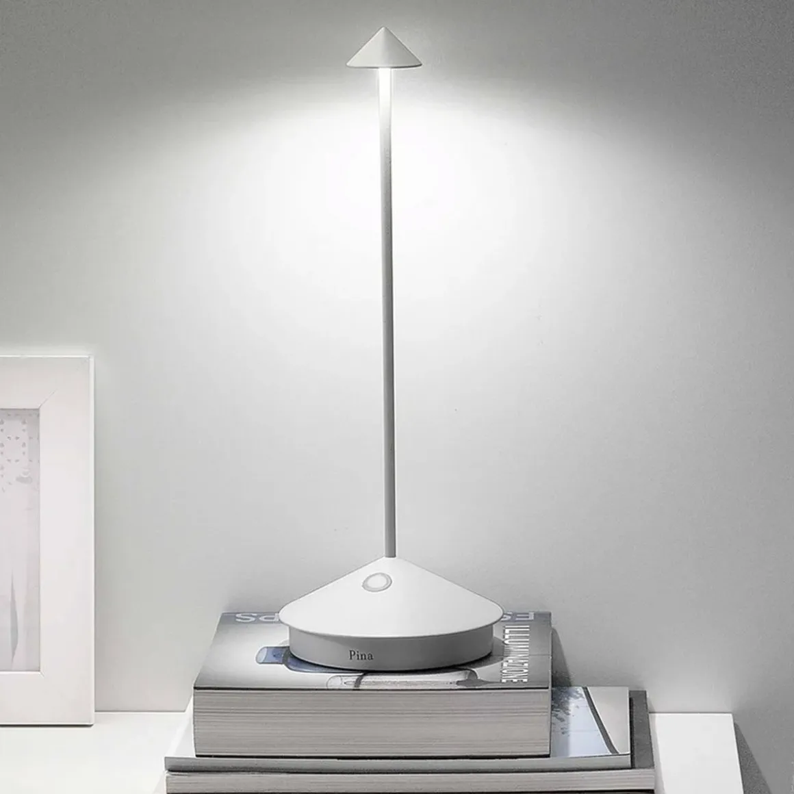 Pina est une lampe de table à piles, portable et rechargeable. Sur la base se trouve une commande « tactile », qui permet d’allumer, de régler l’intensité lumineuse et de sélectionner la température de couleur de la lumière entre 2200 K, 2700 K et 3000 K. Grâce à un indice de protection élevé, la lampe peut également être utilisé à l’extérieur (à l’exception des modèles avec une finition à feuilles métalliques, dont l’utilisation continue à l’extérieur n’est pas recommandée). Il dispose d’un système de contrôle électronique qui surveille et signale la durée de vie restante de la batterie, vous permettant d’optimiser les recharges et de toujours les effectuer correctement. Il est équipé d’une base de chargement par contact ; chargeur inclus. Pina peut être personnalisé avec le support au sol ou le plateau en céramique, qui peuvent être achetés séparément.