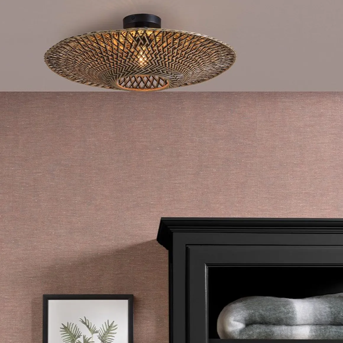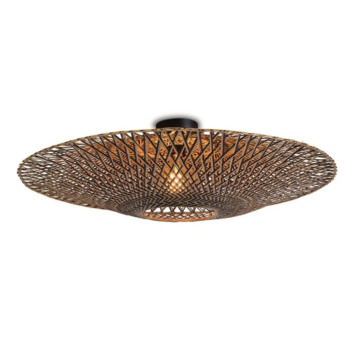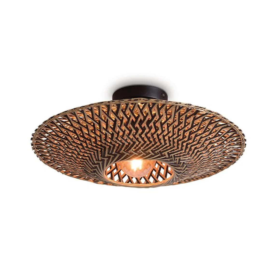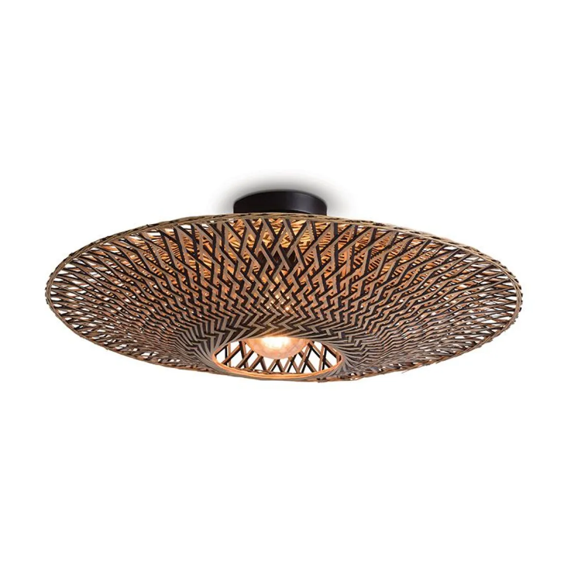 Plafonniers en bambou Bali tissés à la main en dises plats en trois tailles.