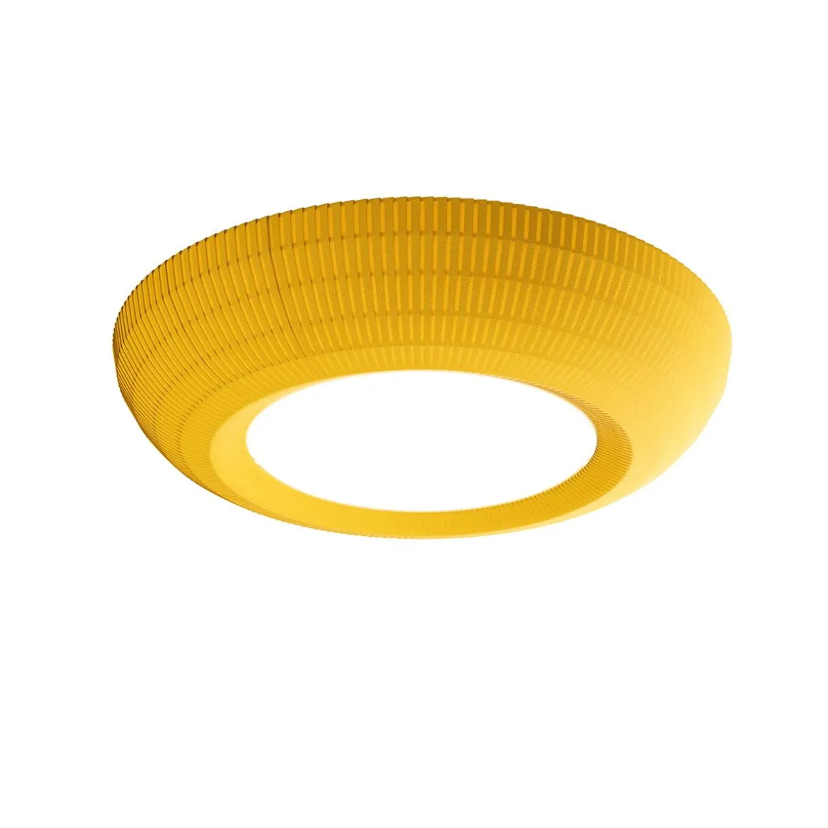 La version plafonnier de Bell est en continuité avec l’esthétique de la suspension. La légèreté donnée par le tissu, la multidimensionnalité et les variations chromatiques restent inchangées. L’adaptabilité à différents contextes de cette version est encore garantie par ses dimensions réduites et la simplicité de ses lignes. Son tissu pongé, en plus d’être ignifuge, grâce à sa texture, fait de Bell une lampe acoustique. Sa zone d’absorption acoustique équivalente jusqu’à 1,86 permet à Bell de réduire le bruit jusqu’à 37 %.