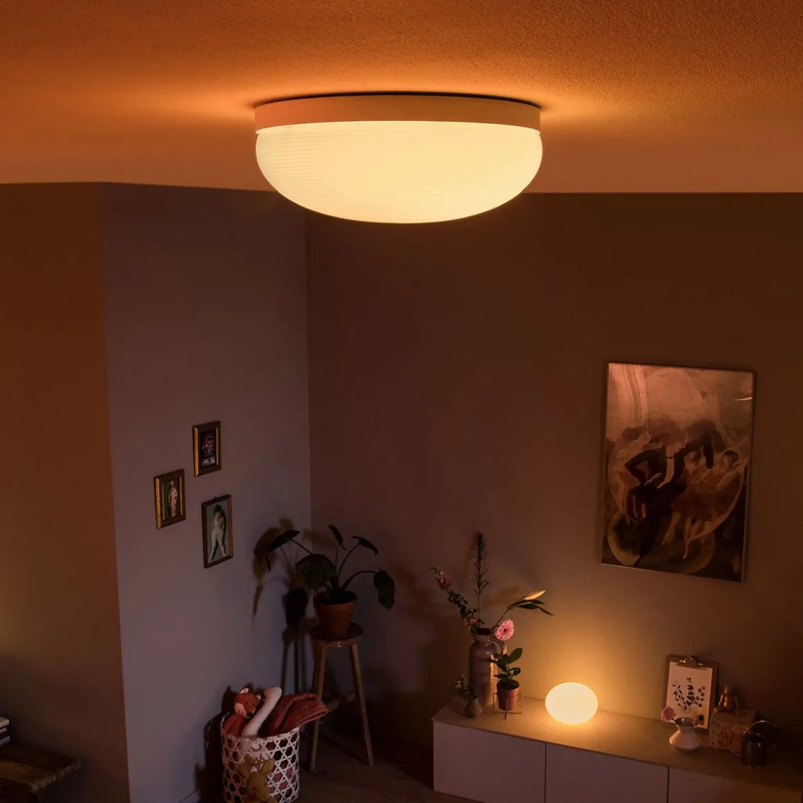 Obtenez une lumière puissante en toute occasion avec le plafonnier Flourish, qui vous permet de régler une lumière chaude, froid ou colorée. Fonctionne en tant que lampe autonome ou qu’élément de votre système d’éclairage intelligent avec le pont Hue.
