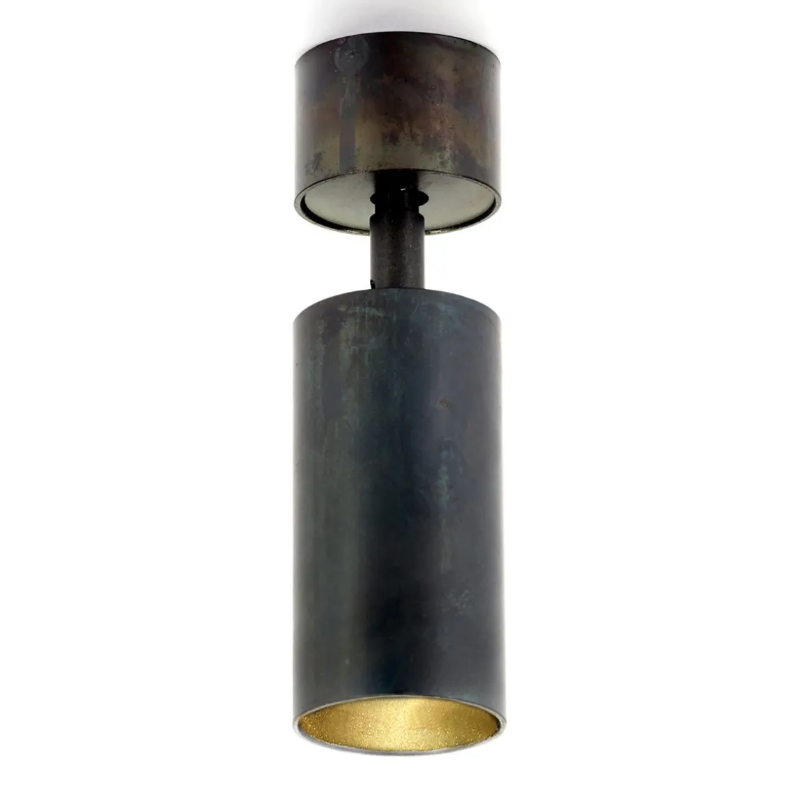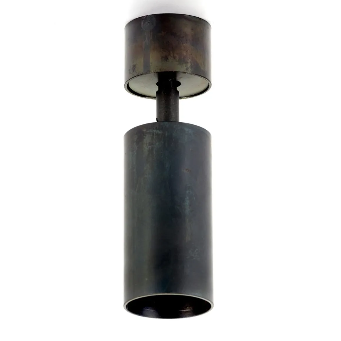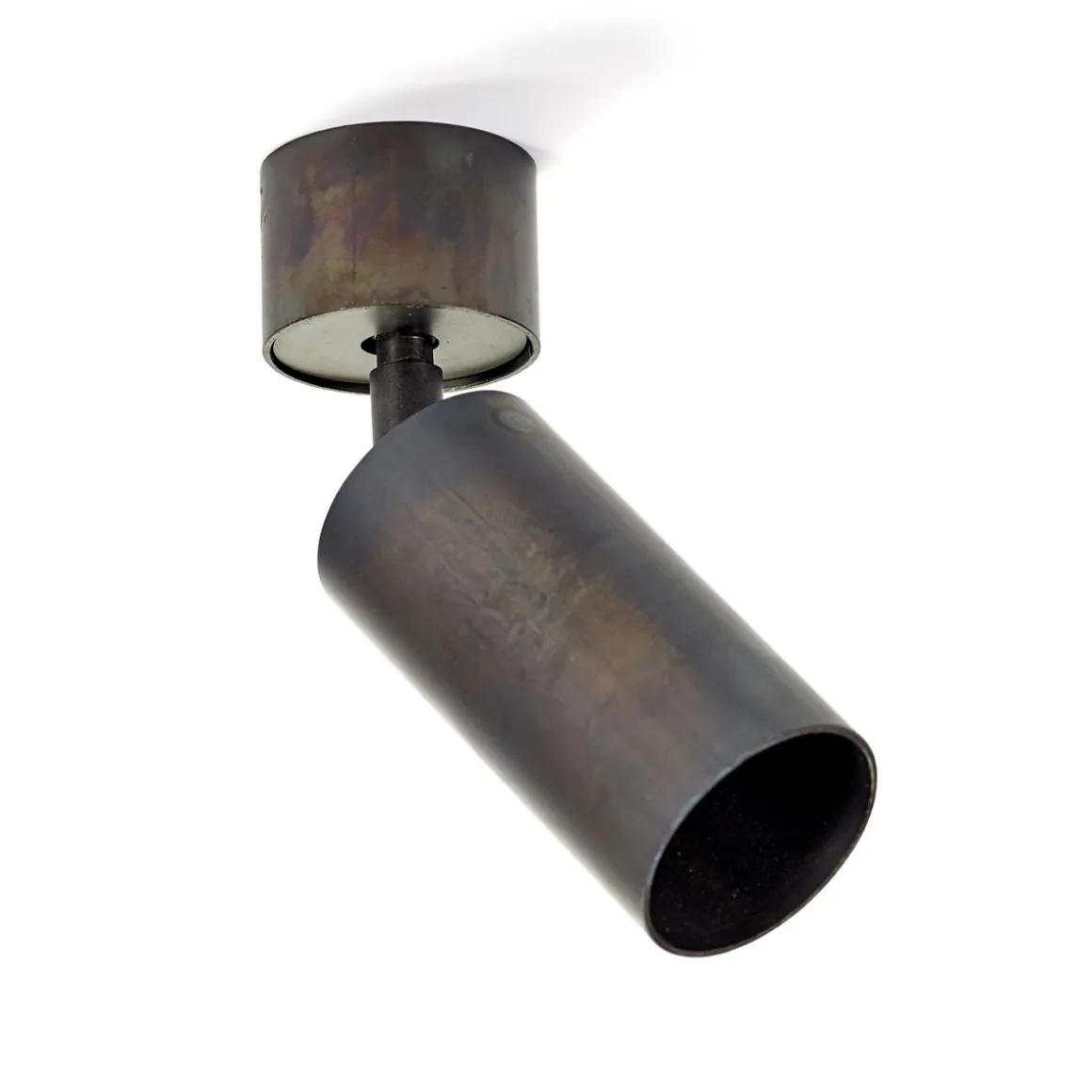 La forme suit la fonction. Ces lampes peuvent être montées au plafond ou au mur, où vous pouvez les faire pivoter à 360 degrés pour laisser leur lumière briller dans la direction souhaitée. La finition traditionnelle de l’acier bleu crée un aspect légèrement industriel et décalé.