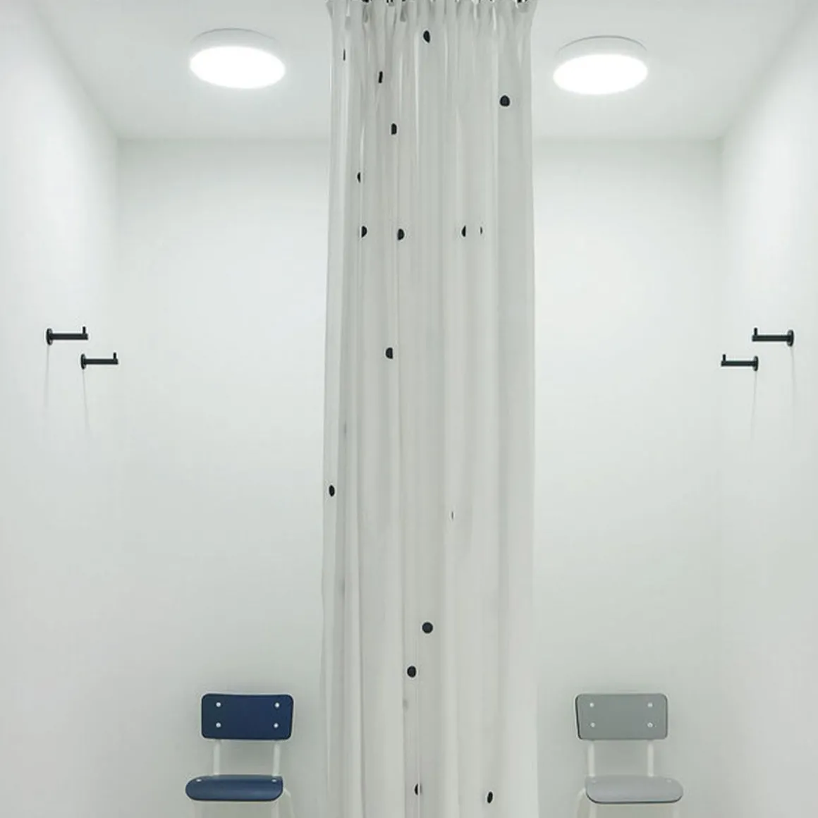 Roby est un plafonnier de forme arrondie. Disponible en deux coloris, blanc ou noir il sera mettre en valeur vos éléments.