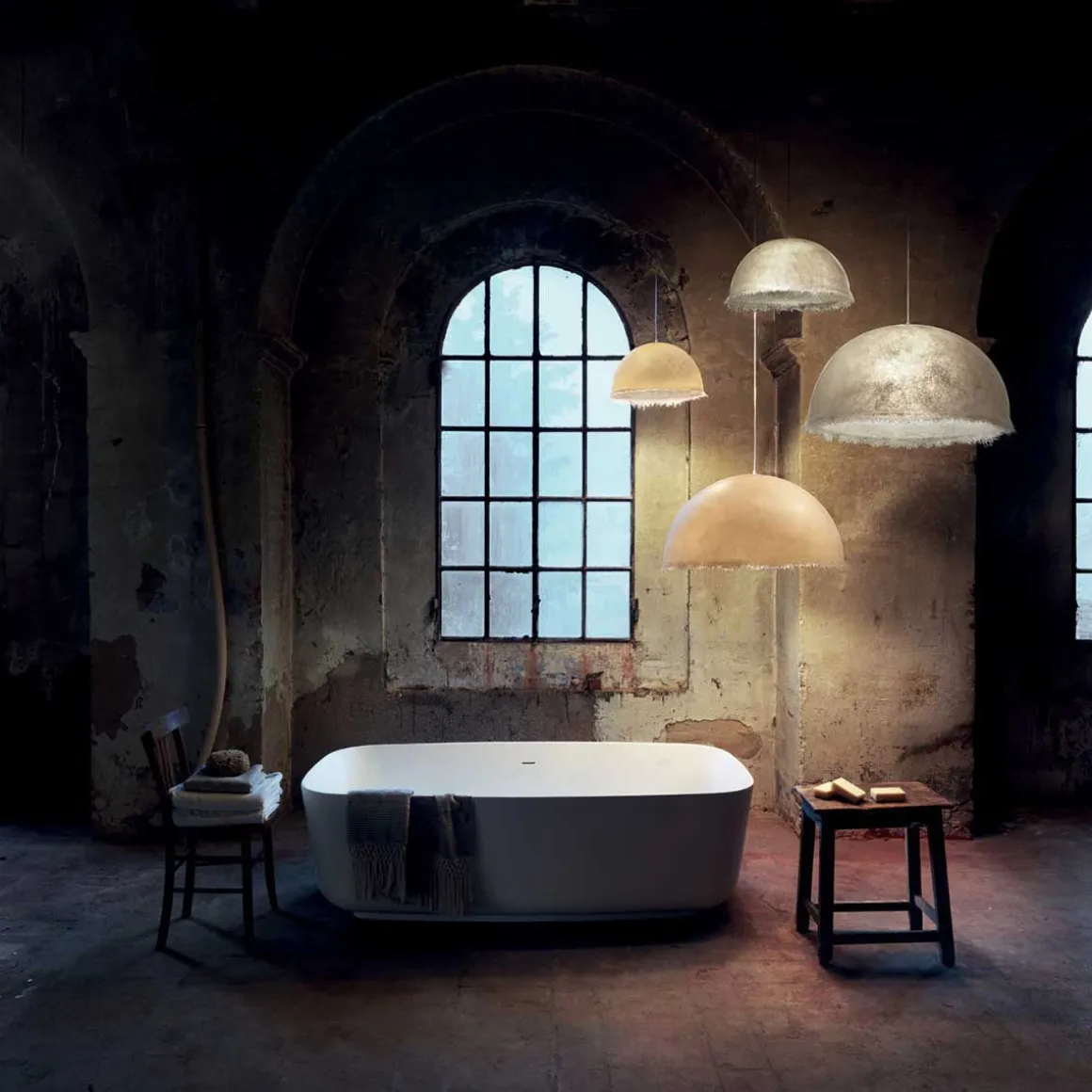Matériaux : fibre de verre (lisse à l’extérieur de la lampe, rugueux à l’intérieur)