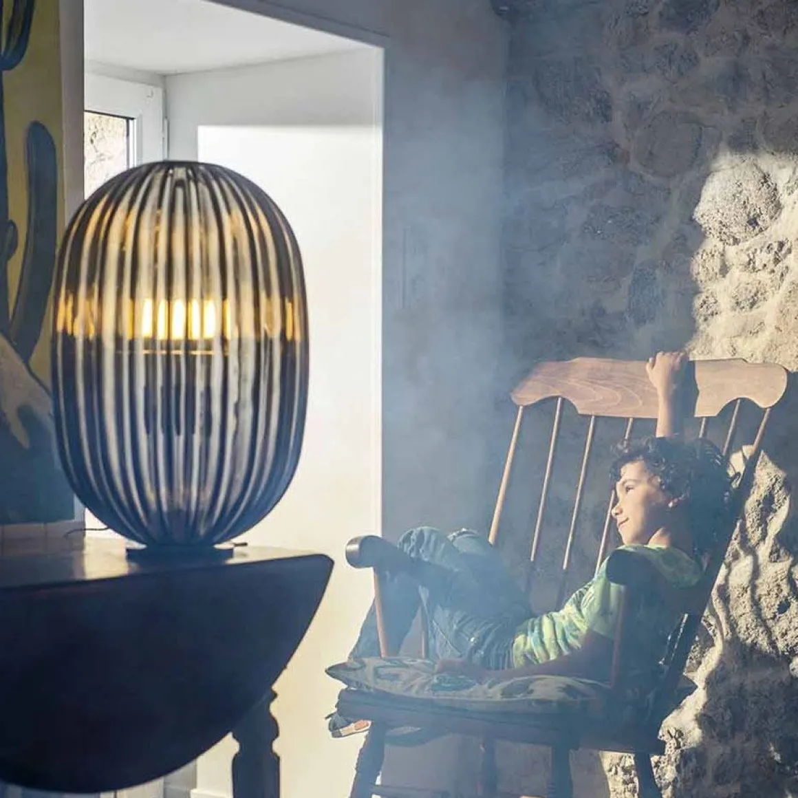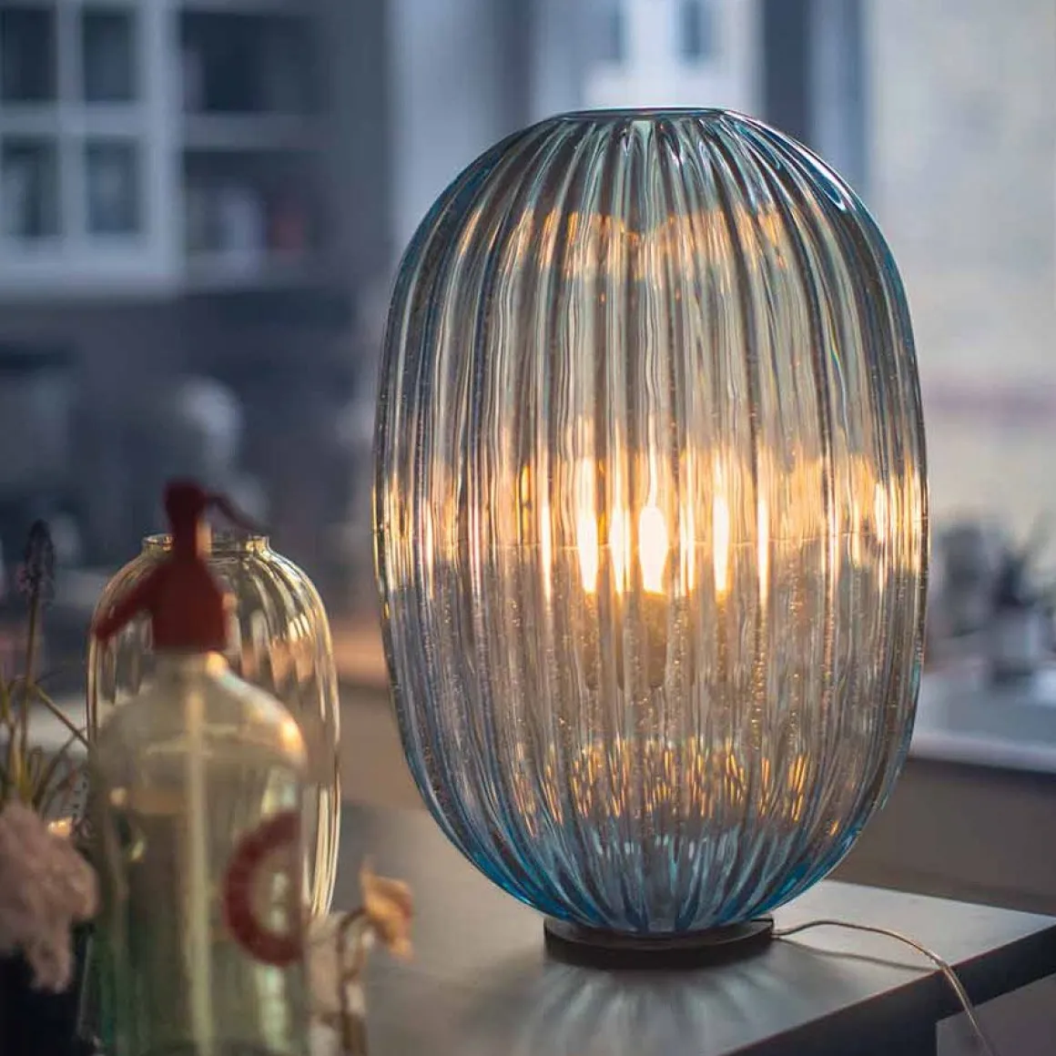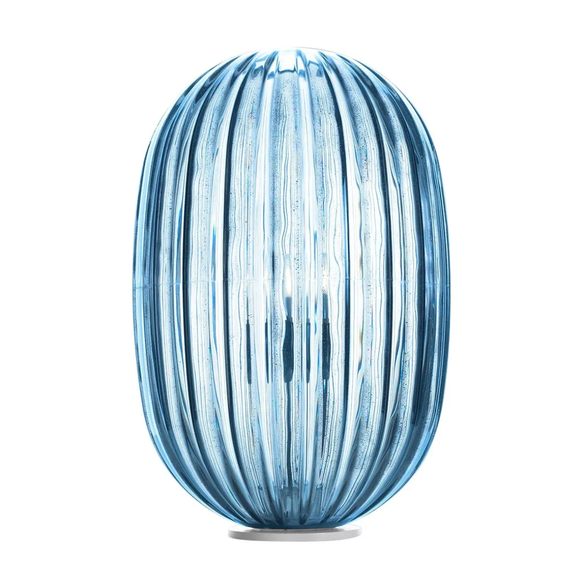 La lampe Plass tire son inspiration d’une perle de verre poli, transparente et rainurée. Simple mais séduisante, la voici maintenant présentée dans sa nouvelle version Media, l’émouvante présence et la luminosité magique de Plass Grande se trouvant ainsi transportées dans une dimension plus modeste. Le projet doit son nom à l’union des mots « plastic » et « glass », et la lampe est effectivement réalisée à l’aide d’un matériau et d’un processus du XXIème siècle, à savoir le polycarbonate transparent moulé par rotation. Grâce à son usinage particulier, les finitions de la lampe, qui évoquent les imperfections du verre et les légères incisions qui sillonnent la surface comme sur une grosse perle, produisent un effet unique encore plus évident et immédiat dans la nouvelle Plass Media. Comme dans la version plus grande, qui a remporté un grand succès dans les espaces contract aux volumes importants, Plass Media est dotée de deux sources lumineuses, avec un double système d’allumage : éclairage diffus et ponctuel dirigé vers le bas. Les couleurs aussi demeurent et s’inspirent aux tonalités typiques des perles de verre.