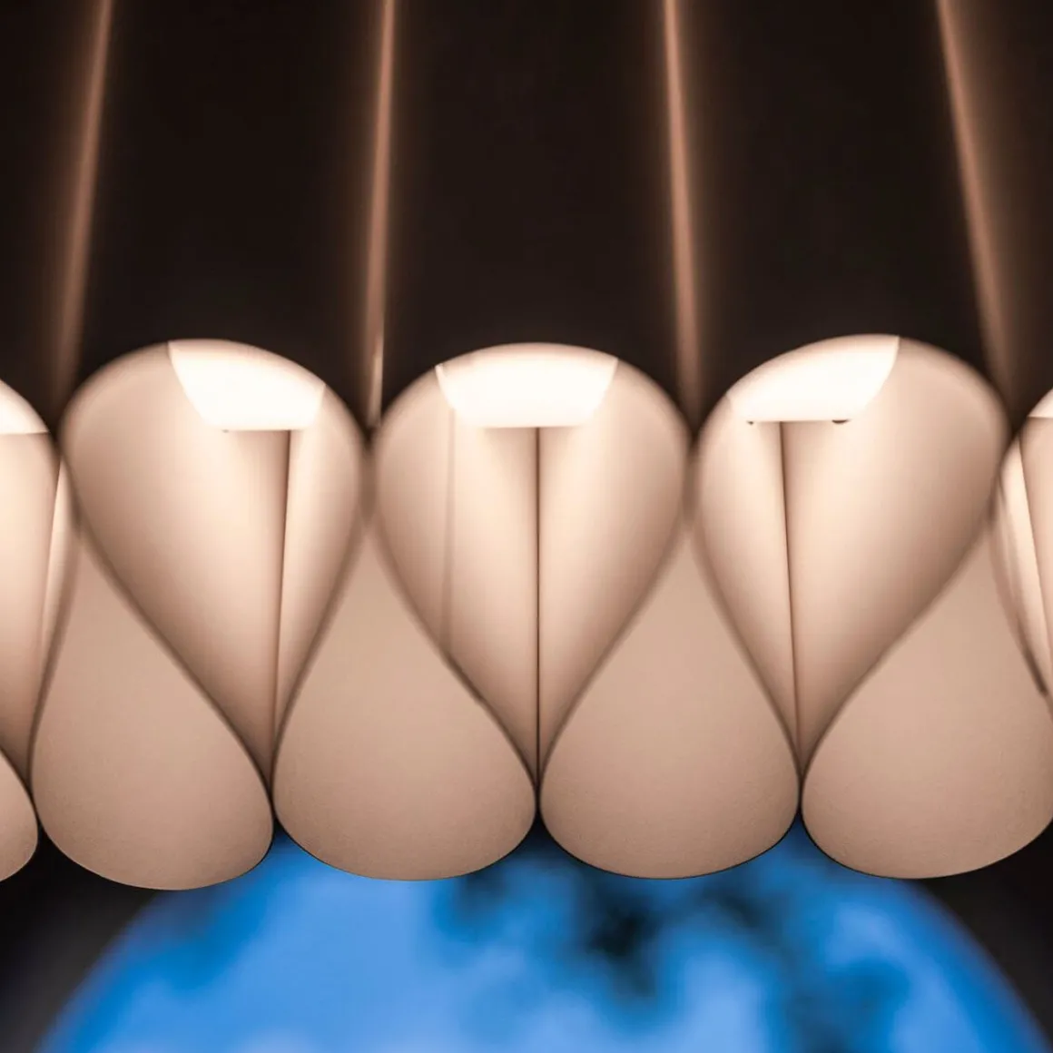 Une lampe suspendue qui unit forme, matière et structure en in seul geste. Les plis doux et les drapés de Pli évoquent la légèreté d’un vêtement, tandis que sa lumière diffuse une ambiance chaleureuse et enveloppante dans les intérieurs.