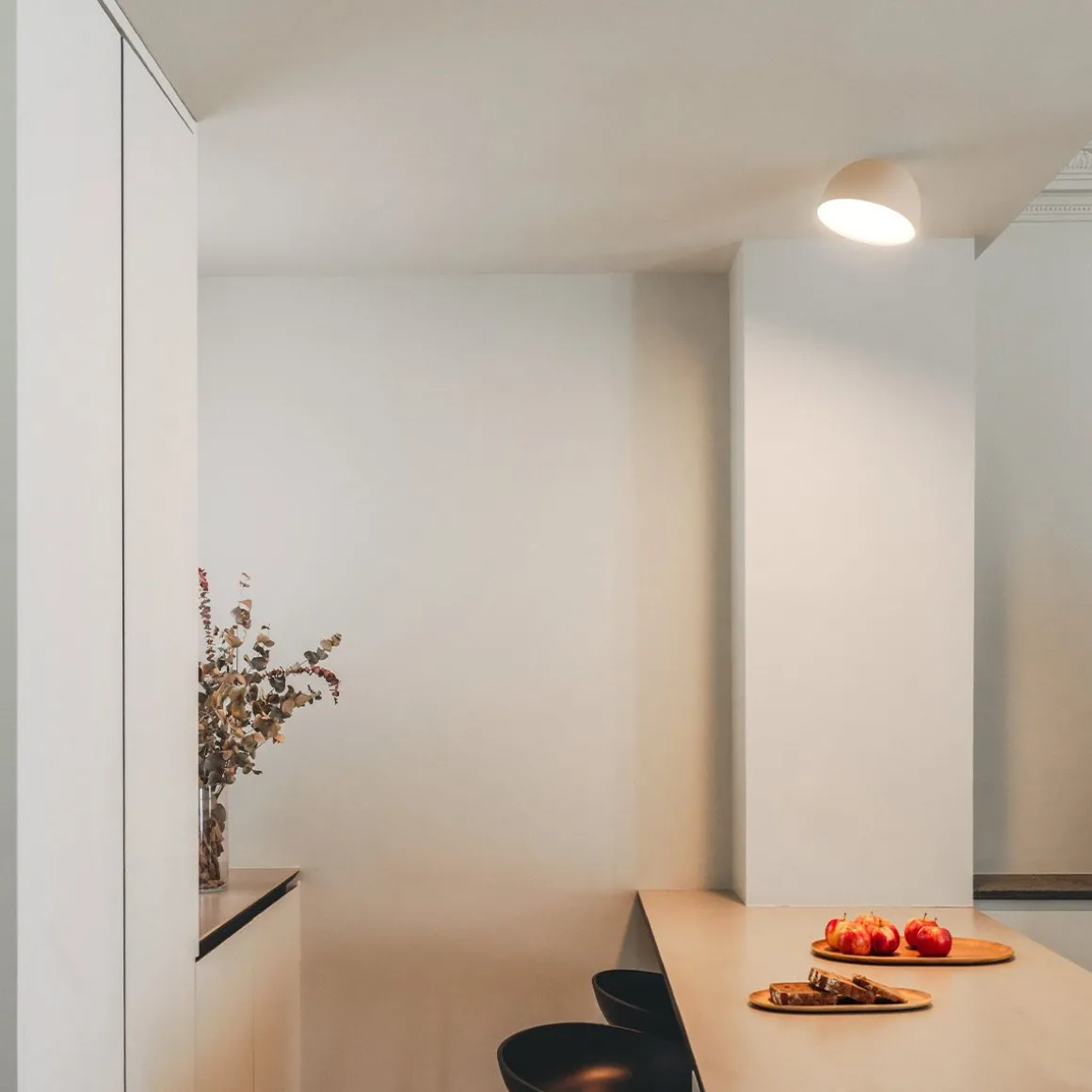 Plusminus Solo propose une gamme de plafonniers semi-circulaires. Combinant spots d’accentuation et diffuseurs plats orientables, la collection offre un éclairage général confortable ainsi qu’un éclairage plus concentré.