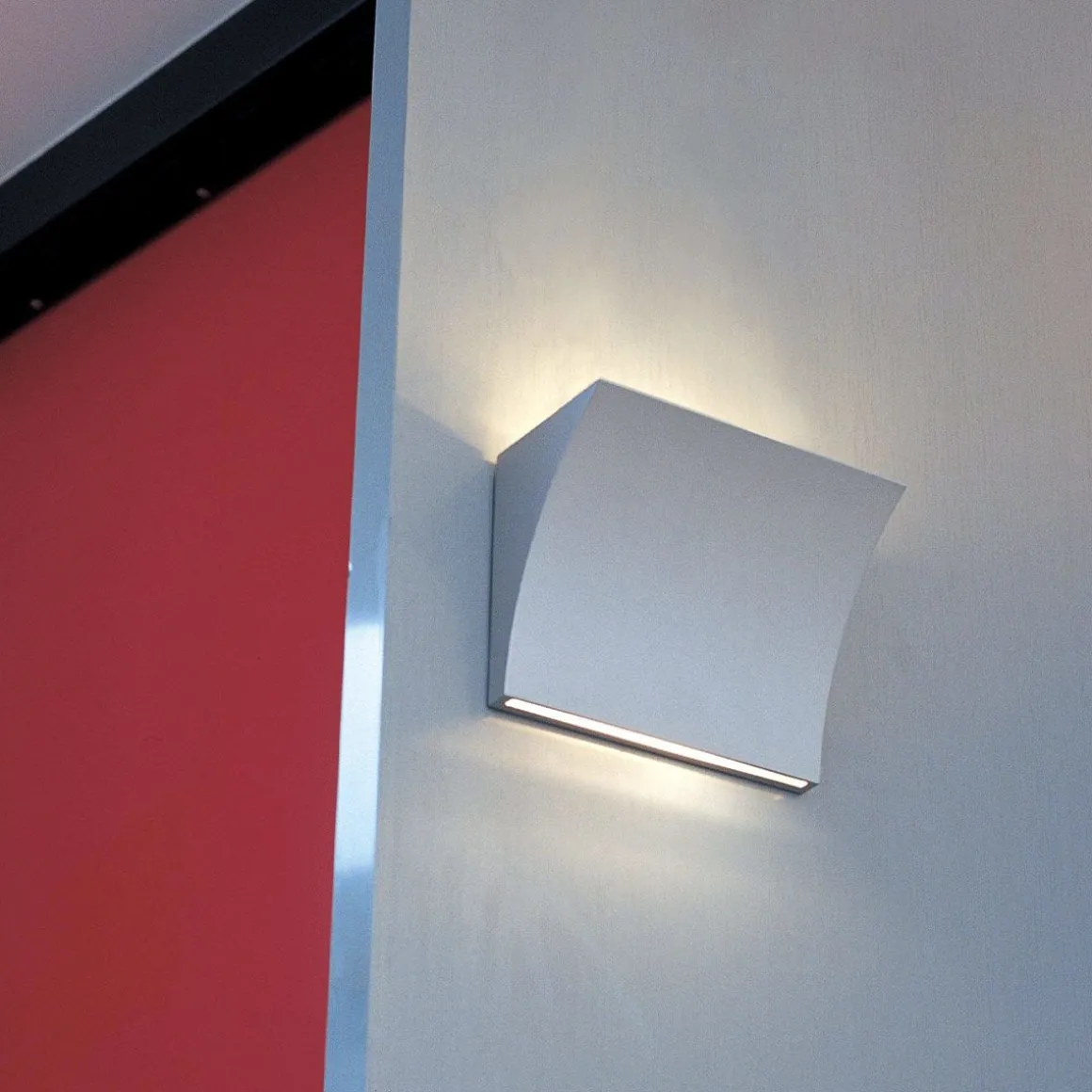 Applique Pochette Up/Down LED de Flos par Rodolpho Dordoni. Corps en alliage de zamac moulé sous pression, recouvert d’une peinture liquide dans les couleurs gris mat, bronze ou avec finitions chromées et galvanisées. Attache murale en acier moulé et zinguée en blanc, comprenant le système de fixationmurale et les dispositifs électriques. Deux sources lumineuses sont prévues, dont une émet une éclaire la partie inférieure de l’appareil. Peut être muni d’un variateur encastrable traditionnel.
