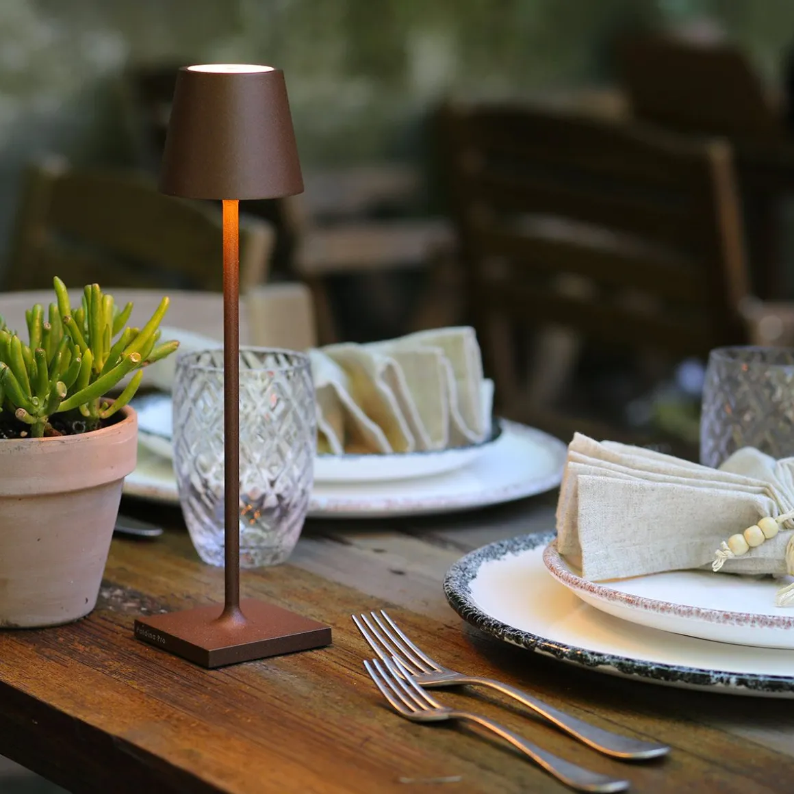 Poldina est une lampe de table portable et rechargeable avec batterie. Elle est équipée d’une base de charge par contact, d’un variateur tactile. La lampe est également équipée de la fonction de sélection de la température de couleur de la lumière entre 2700K et 3000K (blanc dynamique) et un haut degré de protection la rend adaptée à une utilisation intérieure et extérieure.