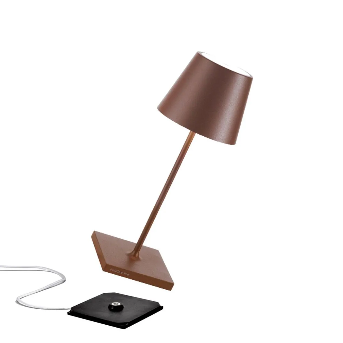 Poldina est une lampe de table portable et rechargeable avec batterie. Elle est équipée d’une base de charge par contact, d’un variateur tactile. La lampe est également équipée de la fonction de sélection de la température de couleur de la lumière entre 2700K et 3000K (blanc dynamique) et un haut degré de protection la rend adaptée à une utilisation intérieure et extérieure.