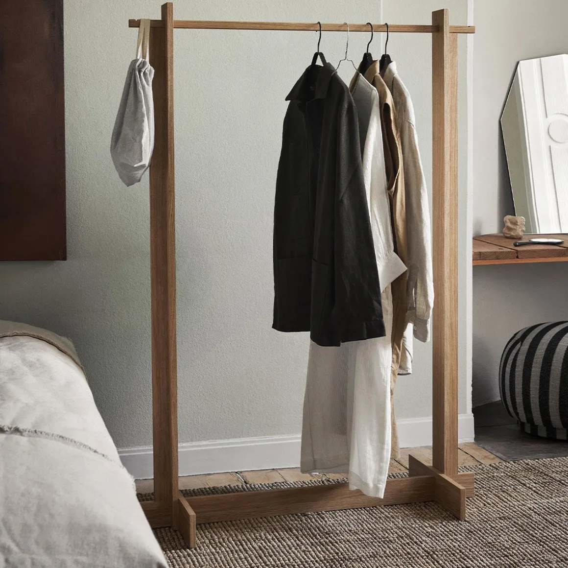 Le portant Bridge redéfinit le rangement des vêtements grâce à son design surélevé. Inspiré des constructions architecturales en bois, ce portant présente une silhouette simple aux lignes épurées, tandis que des détails complexes et une menuiserie experte en font une pièce d’exception qui allie harmonieusement fonctionnalité et élégance. Réalisé en placage de chêne certifié FSC™ avec âme en MDF.