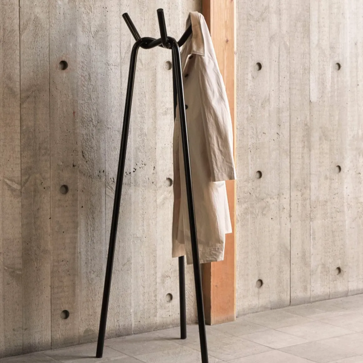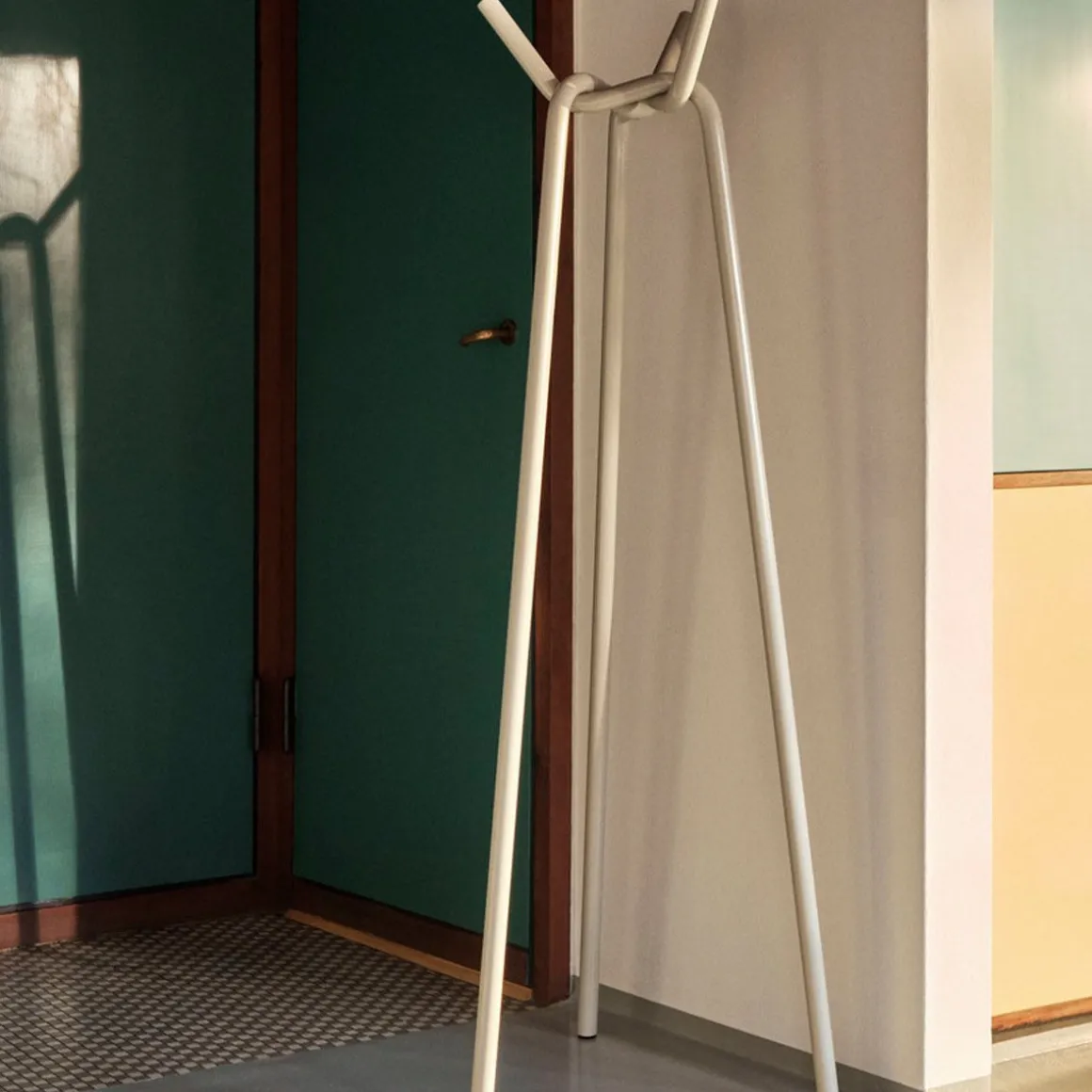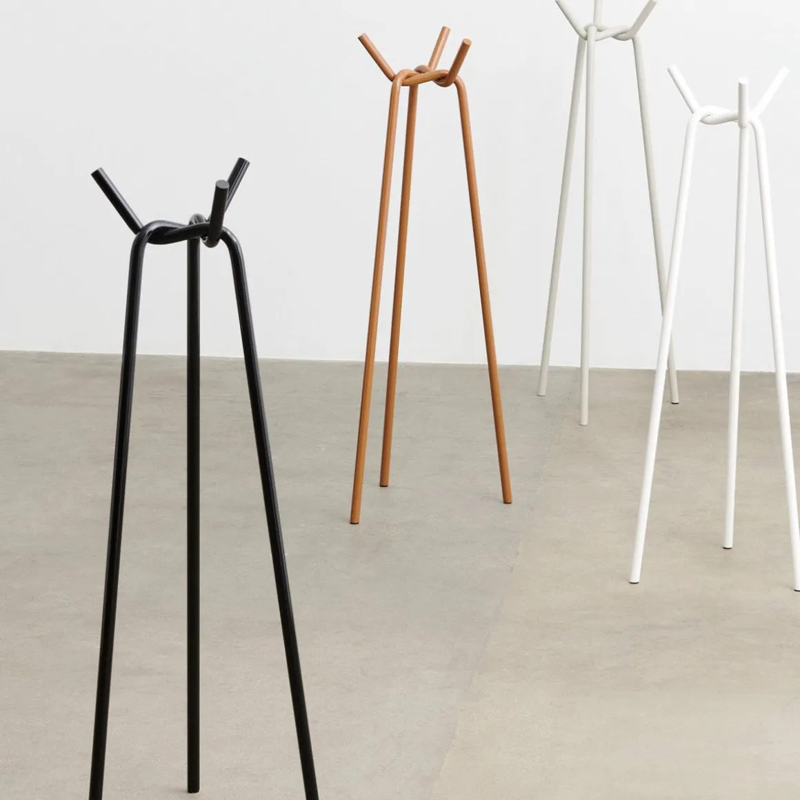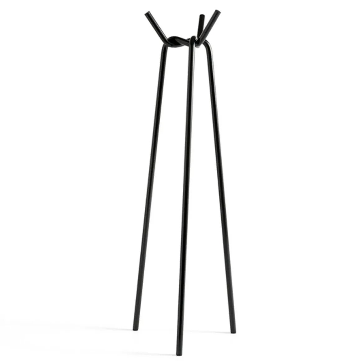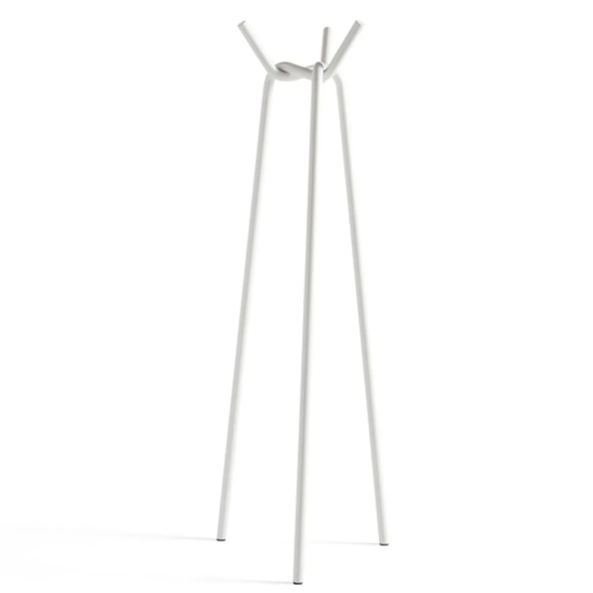 Porte manteau Knit de Hay. Conçu par le japonais Jin Kuramoto, Knit est un porte-manteau simple et emblématique avec un design sculptural distinctif. Composés de trois tuyaux en acier laqué en poudre qui sont interconnectés de manière tridimensionnelle, les tuyaux sont solidement «tricotés» ensemble pour se soutenir et créer la force du corps. Inspiré par l’expérience tactile du toucher des matériaux et les processus expérimentaux de pliage et de tricotage de cordes et de tiges métalliques, Knit a été développé comme une extension des options de garde-robe et de suspension de vêtements de HAY dans un design plat et facile à assembler. Doté d’une finition très brillante qui crée un effet lustré, Knit peut être utilisé pour ajouter des fonctionnalités et un intérêt visuel aux couloirs, chambres et autres espaces privés ou publics.