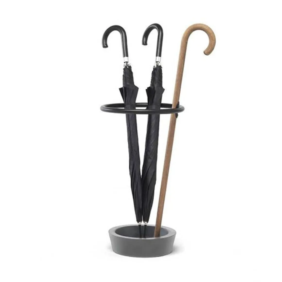 Renè est un porte-parapluies en bois de hêtre courbé, disponible avec base en marbre noir Marquina ou en résine grise. Le bâton est disponible en bois teinté boue ou noir. Renè est un porte-parapluies avec une pincée de magie: un bâton central inspiré de Magritte, le cercle qui rappelle ceux utilisés dans le monde du cirque ou par les danseurs comme cerceaux, des éléments qui renvoient à un monde connu et des images rassurantes. Renè a une identité forte: un objet qui raconte une histoire, et le fait avec ironie.
