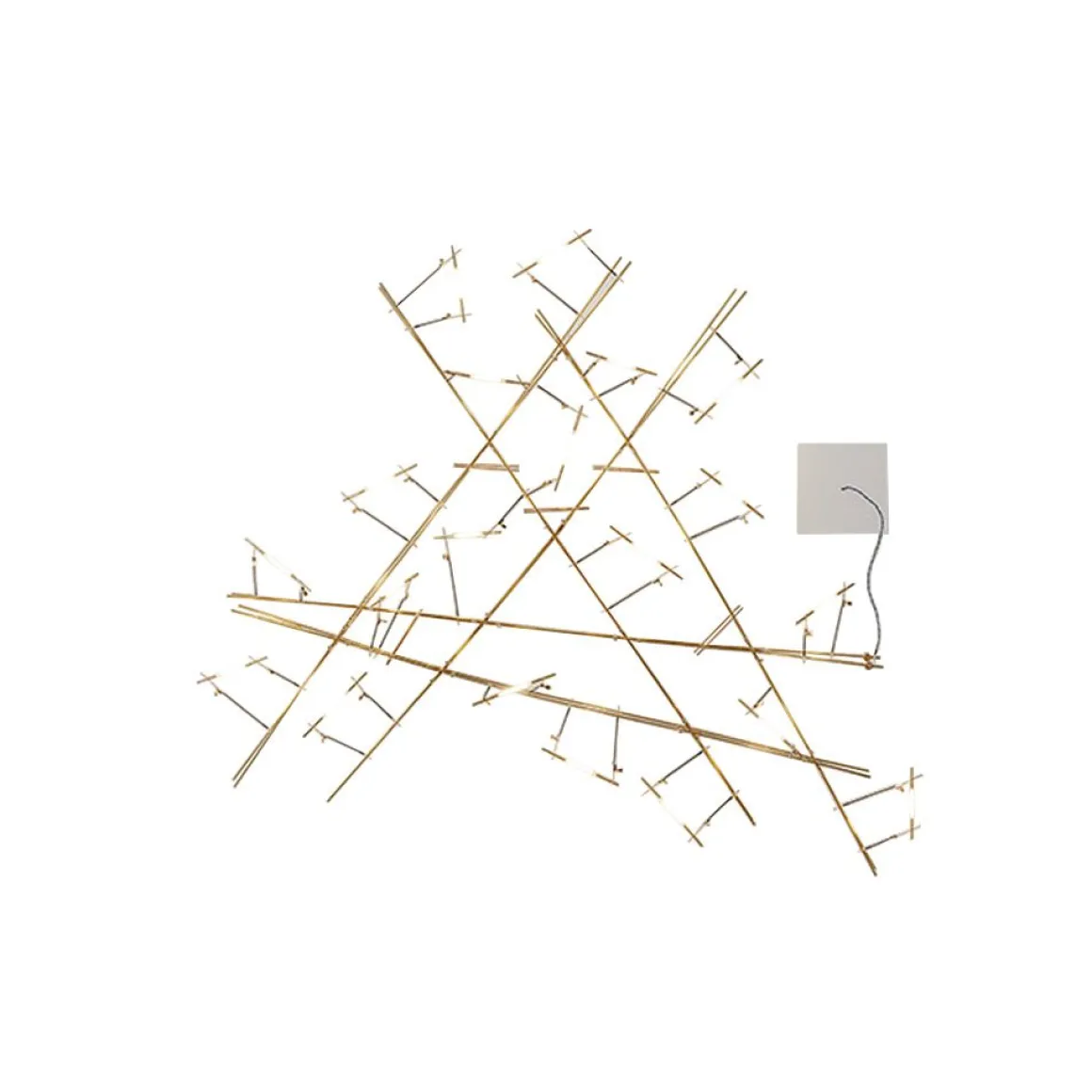 Dans la série Pòta! la lumière devient le point central autour duquel prennent forme de fines structures en laiton, à la fois volumineuses et légères, et où les éléments d’éclairage se répartissent dans un jeu dichotomique entre ordre et irrégularité.