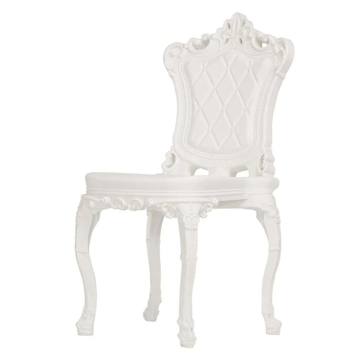 La chaise Princess of Love revisite le style baroque, idéal pour décorer des espaces modernes, tout en offrant un look classique et élégant. La structure de la Princess of Love est caractérisée par des détails et des finitions de style baroque, qui s’adapte à tous les types d’agencements, aussi bien extérieur qu’intérieur comme des salons, des boutiques, des restaurants et des bureaux.