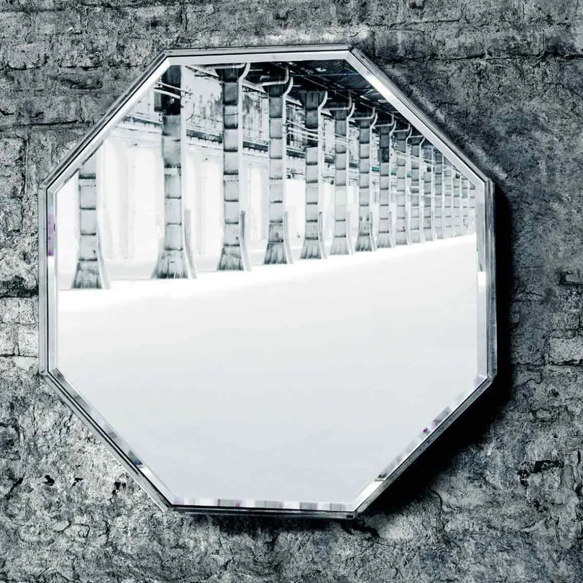 Miroirs précieux créé par Tokujin Yoshioka, pour Glas Italia, spécialiste du matériau pur, noble et raffiné qu’est le verre. de forme octagonale, ornés de cadres en cristal extralight 12 mm argentés, travaillés avec des biseaux brillants et facettes.
