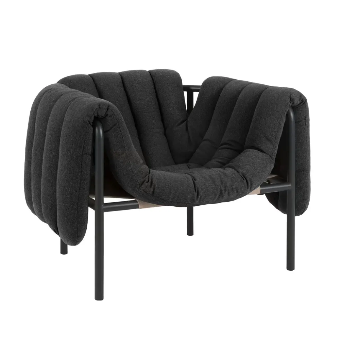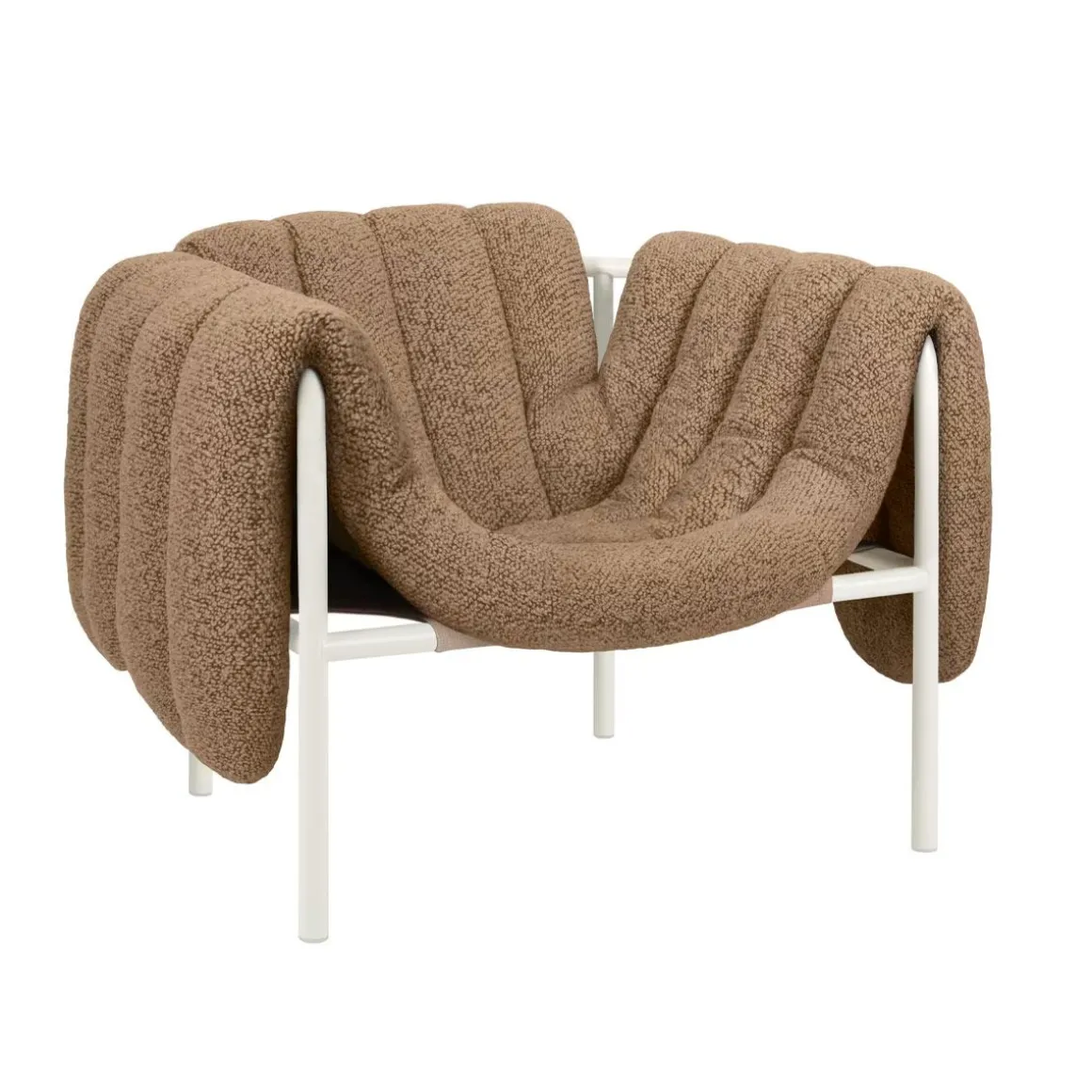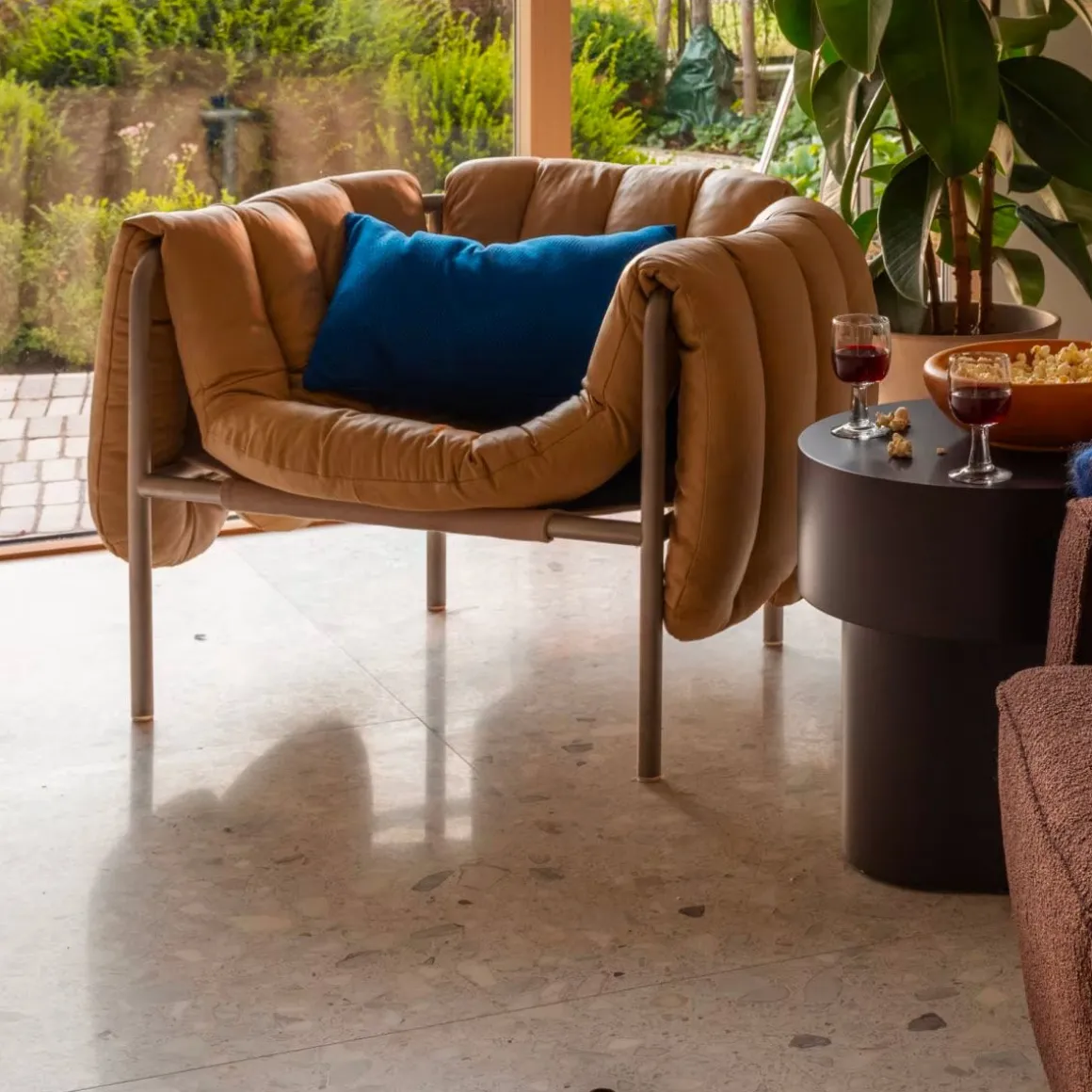 Puffy de Hem par Faye Toogood. Le revêtement amovible de la chaise longue Puffy est gras et dodu, sa forme généreuse se répand librement sur les côtés d’un cadre en acier tubulaire qui, en contraste frappant, est aux lignes dures et solides. Les deux éléments clés de ce design de siège de Faye Toogood se juxtaposent de manière ciblée et ludique. Le cadre élémentaire s’inspire de la structure rationnelle du design moderniste classique, tandis que le revêtement extravagant semblable à une courtepointe enveloppe et enveloppe chaleureusement, est réconfortant et rassurant.