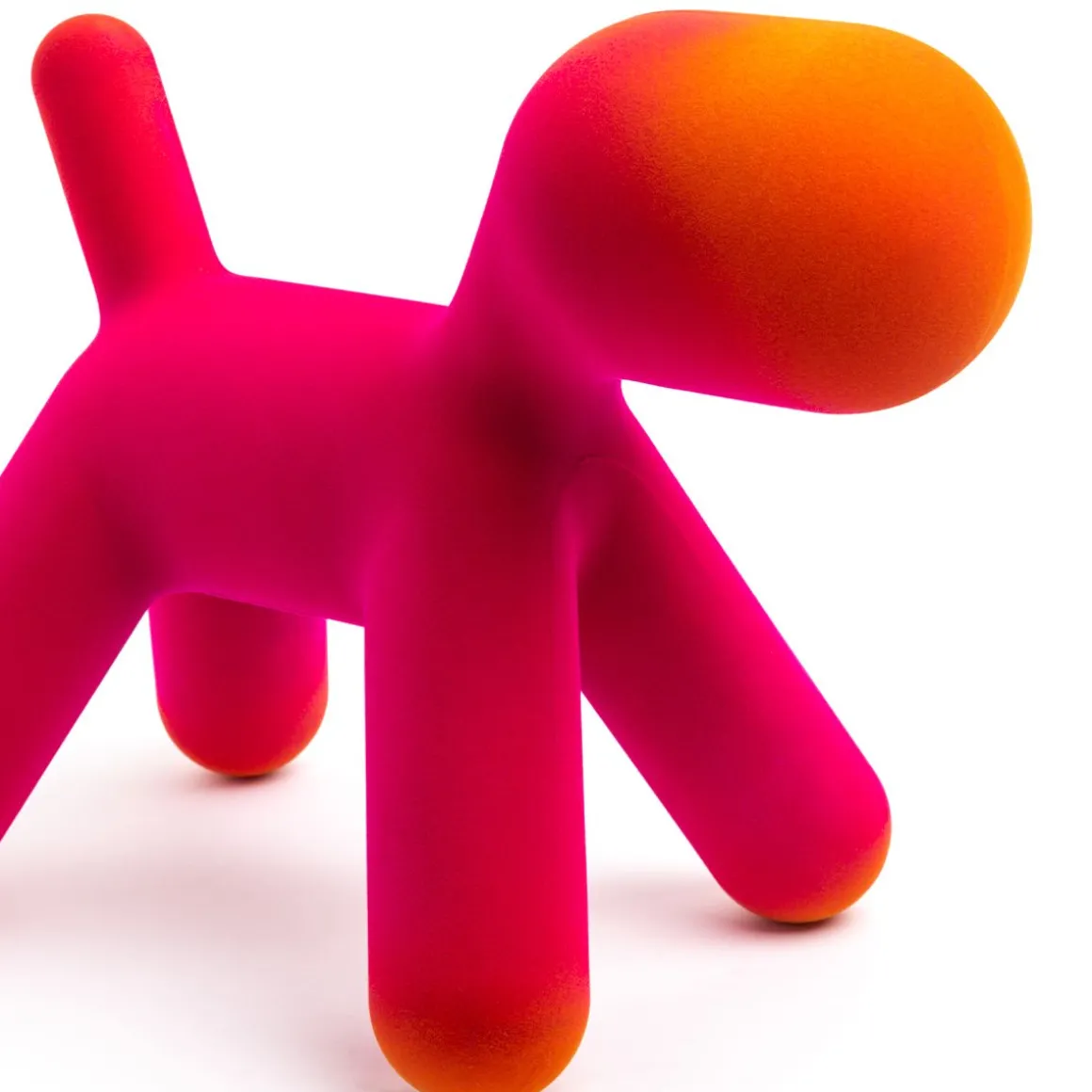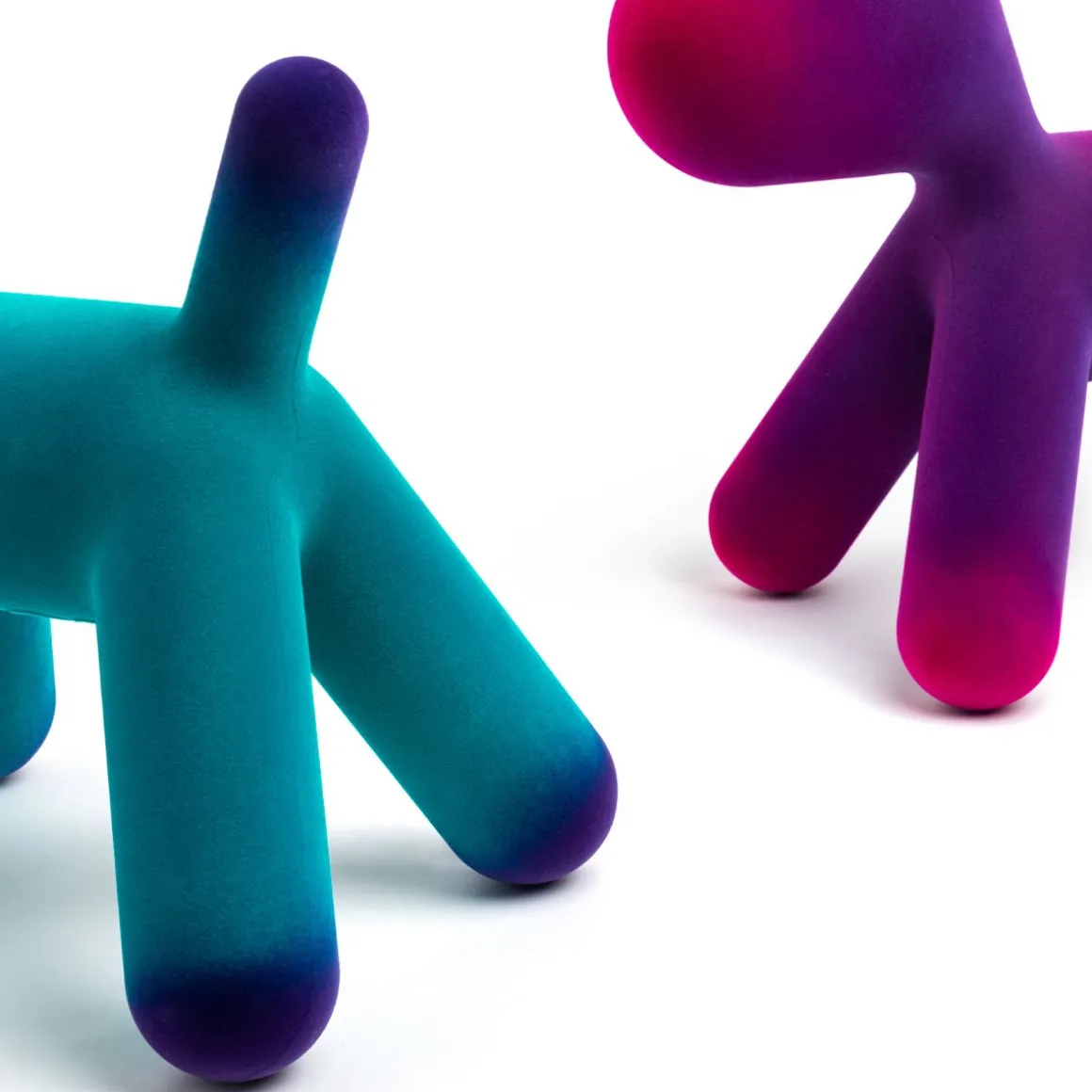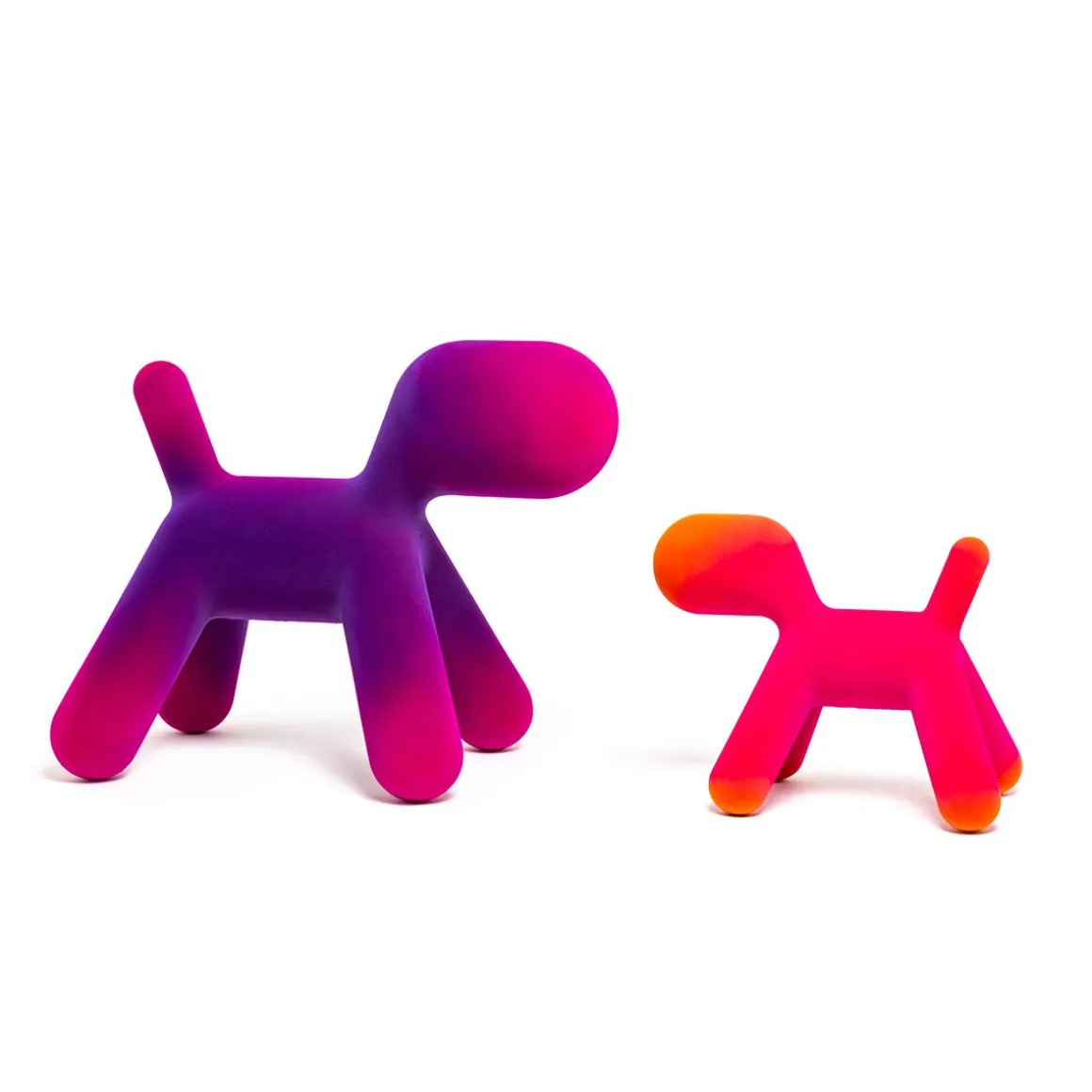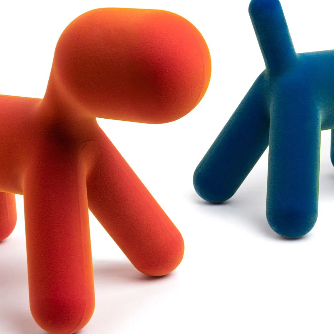 Puppy, la pièce a plus emblématique de la collection Magis Me Too, s’enrichit cette année de deux nouvelle finitions effet velours : l’une irisée et l’autre nuancée. Aux couleurs existantes de l’orange, du blanc, du vert et de la tâche dalmatienne s’ajoutent maintenant une version en velours avec des pointes savamment ombrées développées grâce à l’expérimentation de Magis, et une version en velours irisé : cet effet est obtenu en utilisant des fibres de deux couleurs différentes. En quatre tailles différentes (du S au XL), Puppy est un ami inséparable prêt à être pris dans les bras et à être câliné.