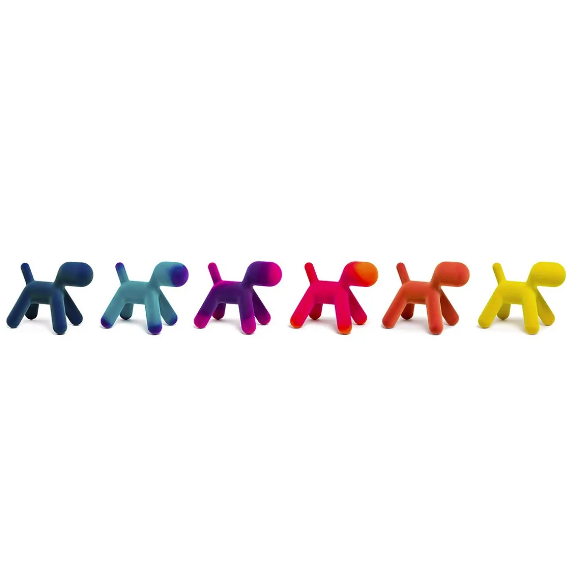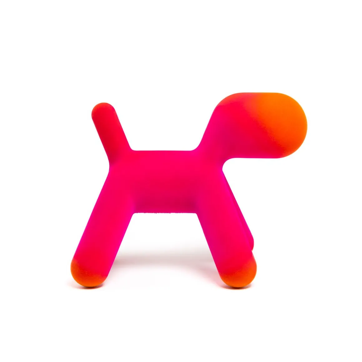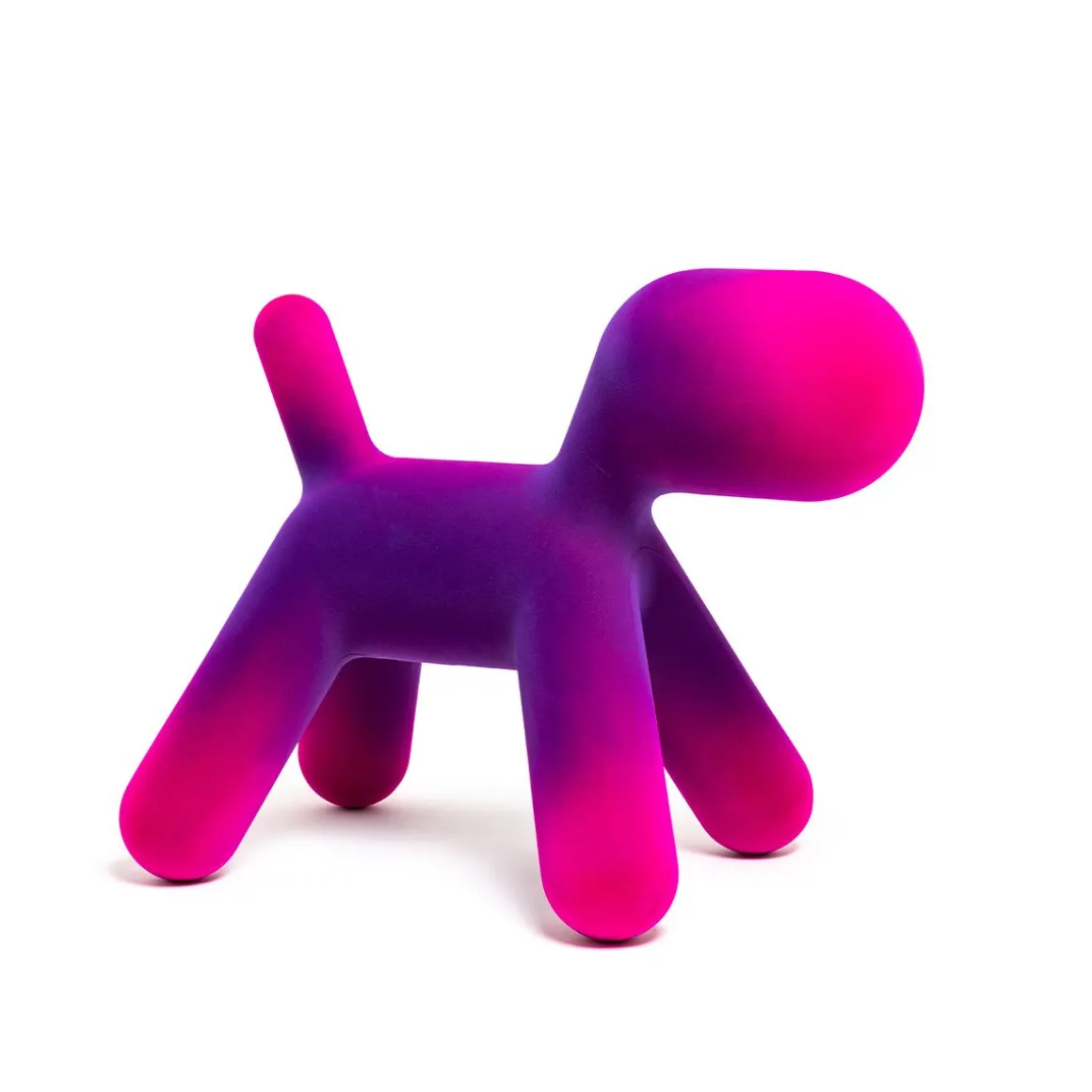 Puppy, la pièce a plus emblématique de la collection Magis Me Too, s’enrichit cette année de deux nouvelle finitions effet velours : l’une irisée et l’autre nuancée. Aux couleurs existantes de l’orange, du blanc, du vert et de la tâche dalmatienne s’ajoutent maintenant une version en velours avec des pointes savamment ombrées développées grâce à l’expérimentation de Magis, et une version en velours irisé : cet effet est obtenu en utilisant des fibres de deux couleurs différentes. En quatre tailles différentes (du S au XL), Puppy est un ami inséparable prêt à être pris dans les bras et à être câliné.