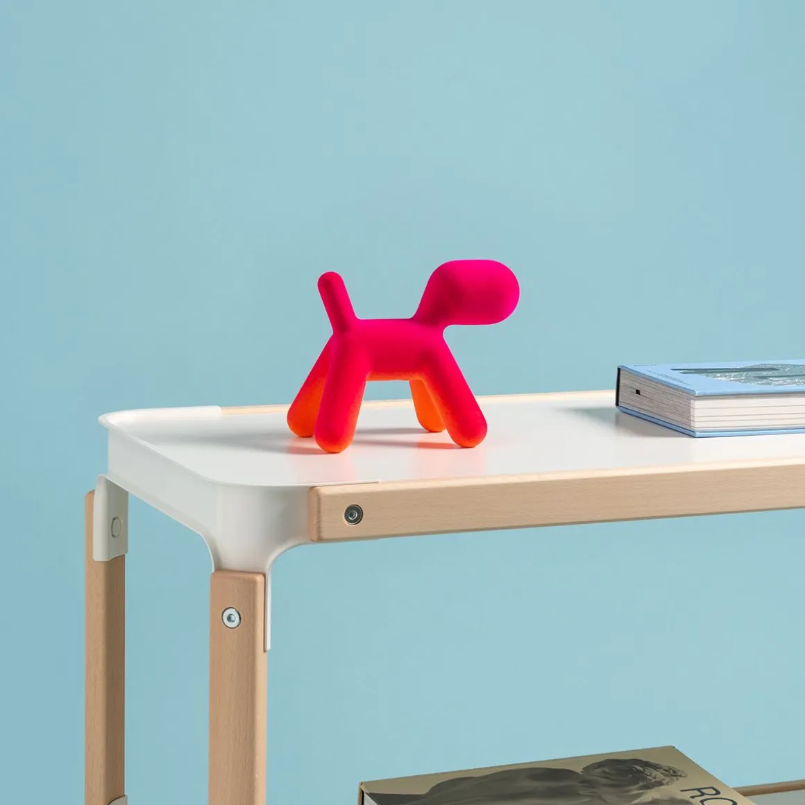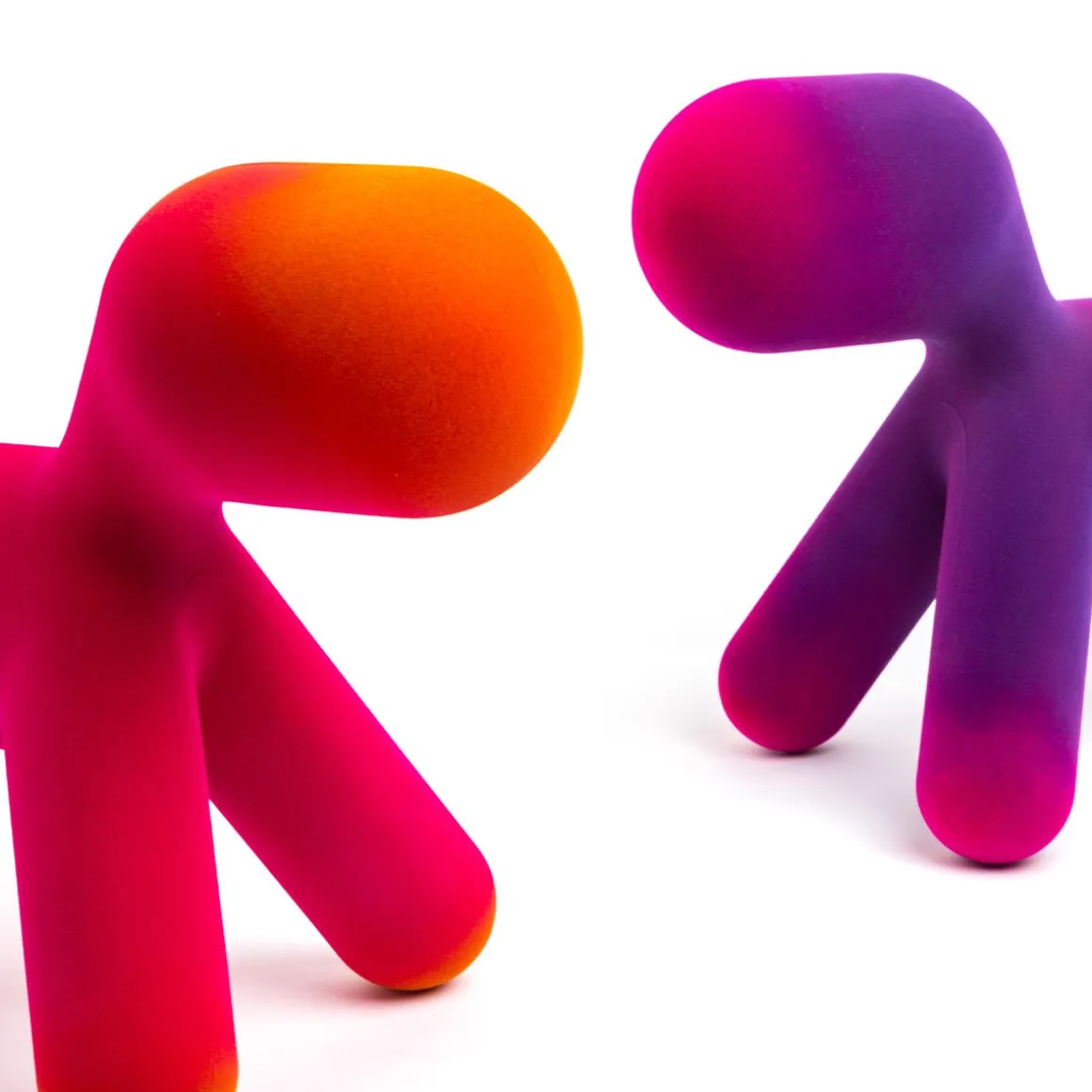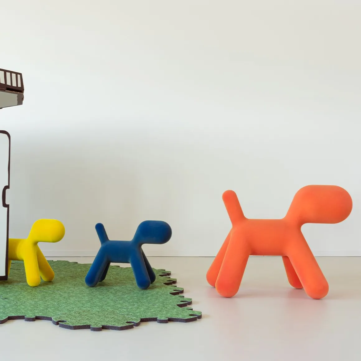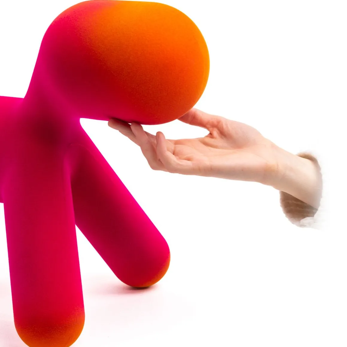 Puppy, la pièce a plus emblématique de la collection Magis Me Too, s’enrichit cette année de deux nouvelle finitions effet velours : l’une irisée et l’autre nuancée. Aux couleurs existantes de l’orange, du blanc, du vert et de la tâche dalmatienne s’ajoutent maintenant une version en velours avec des pointes savamment ombrées développées grâce à l’expérimentation de Magis, et une version en velours irisé : cet effet est obtenu en utilisant des fibres de deux couleurs différentes. En quatre tailles différentes (du S au XL), Puppy est un ami inséparable prêt à être pris dans les bras et à être câliné.